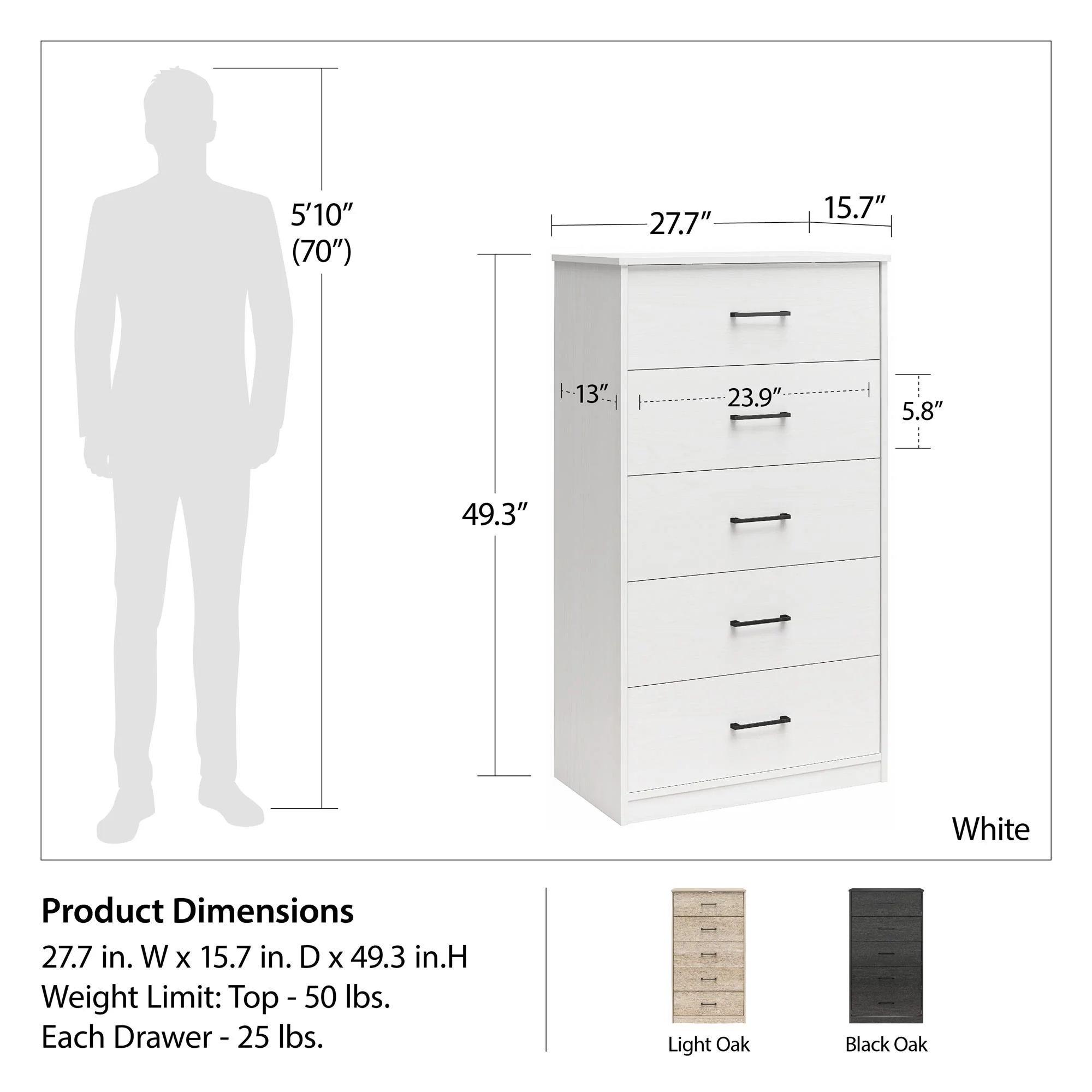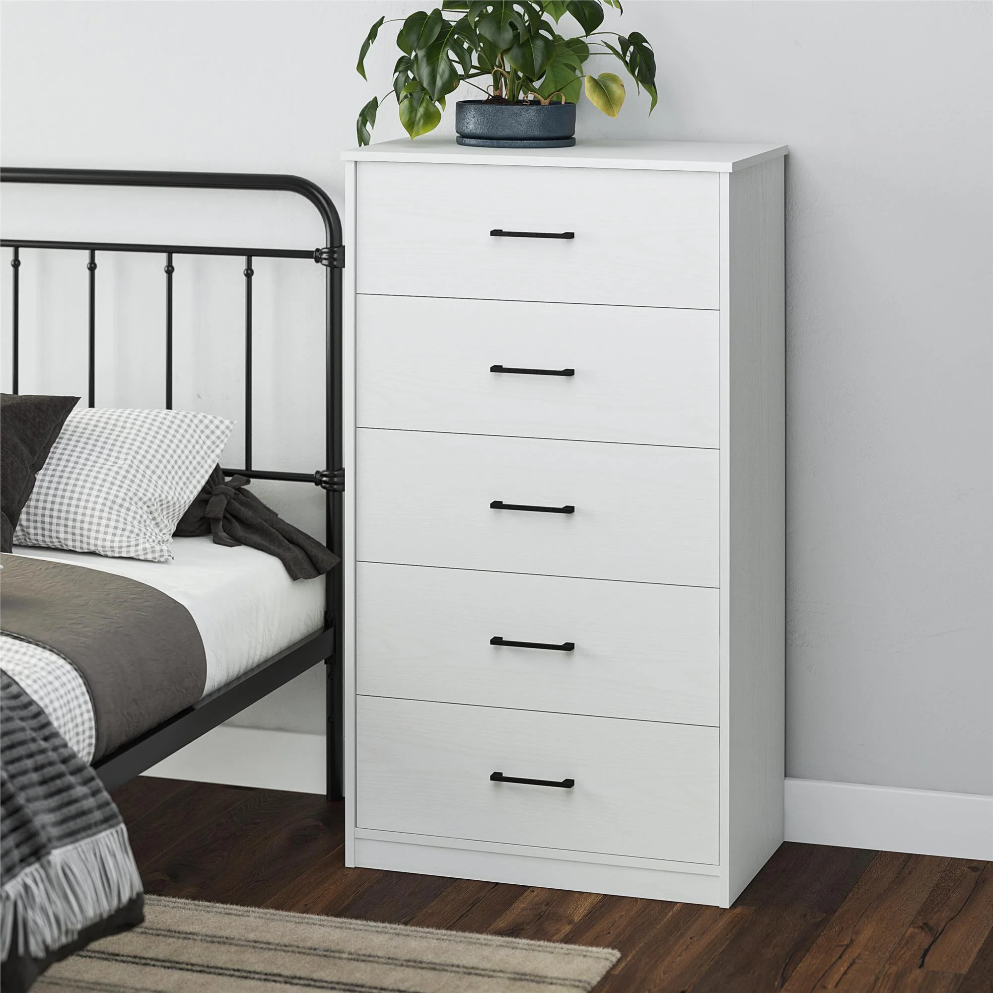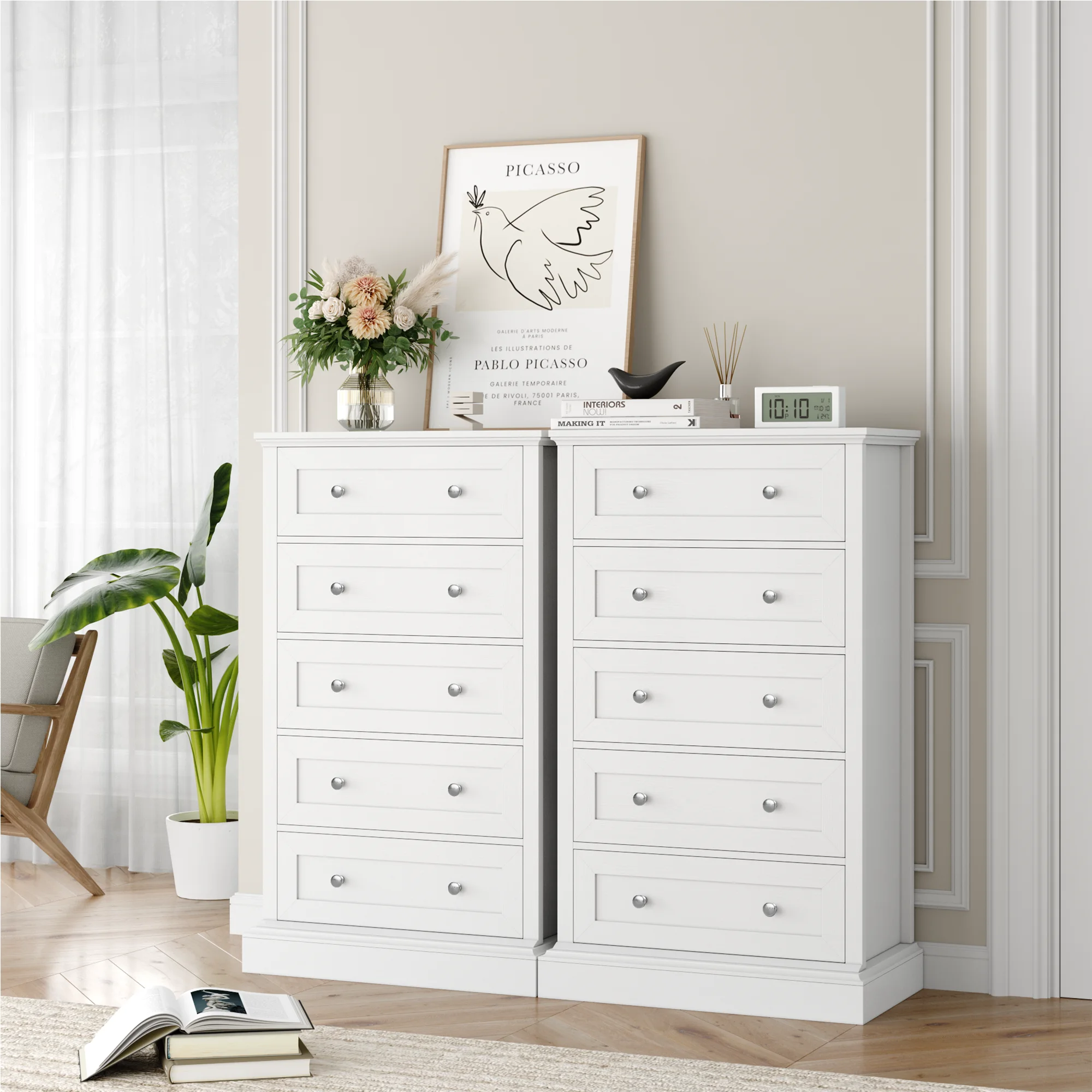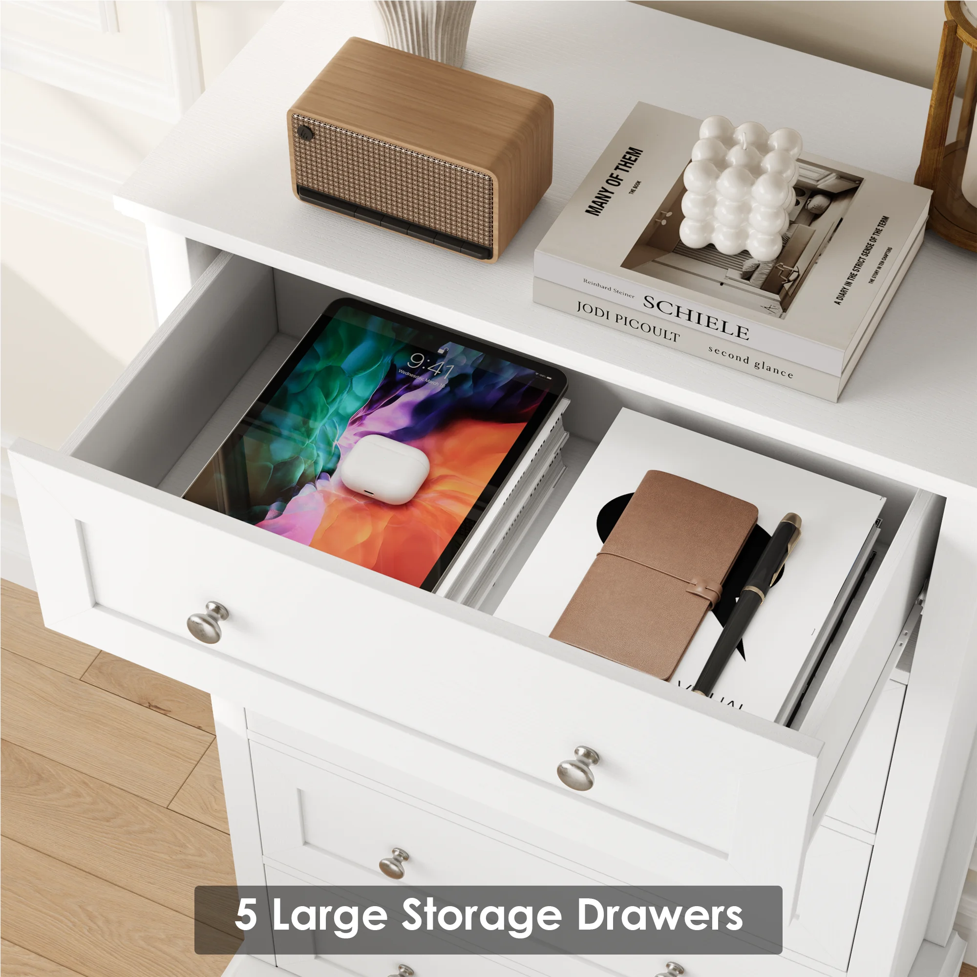 Homfa White Dresser with 5 Drawers, Vertical Storage Cabinet Chest of Drawers for Bedroom Living Room