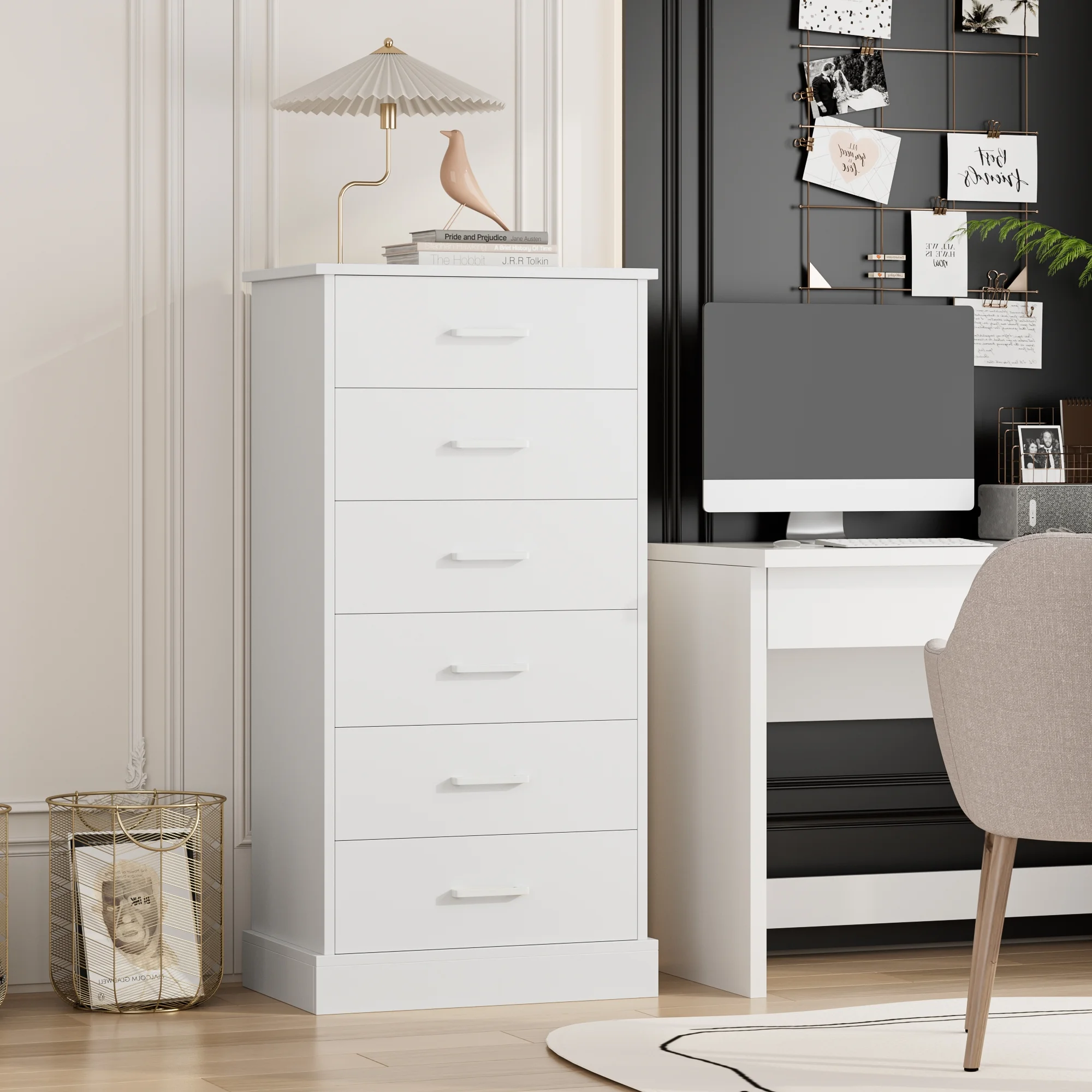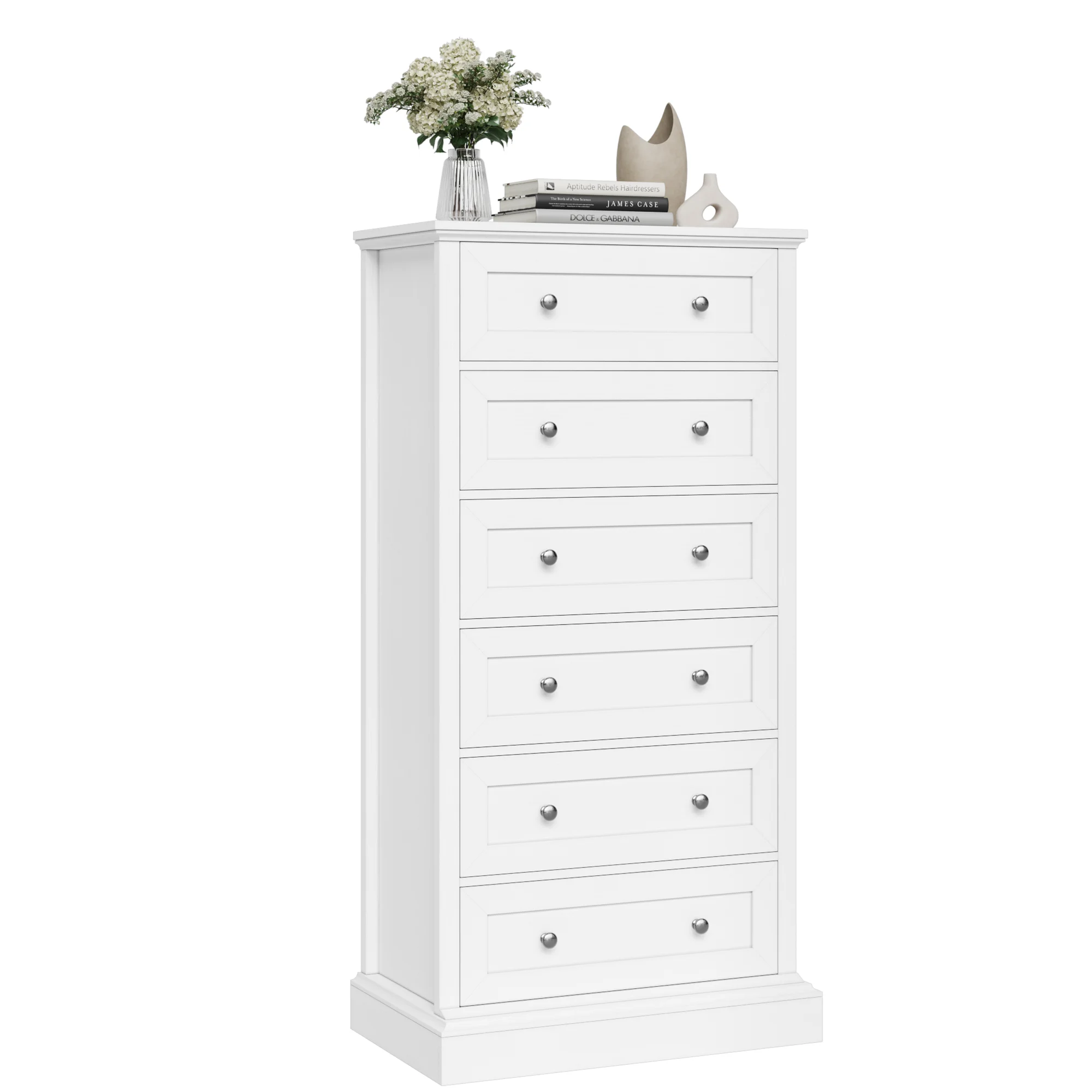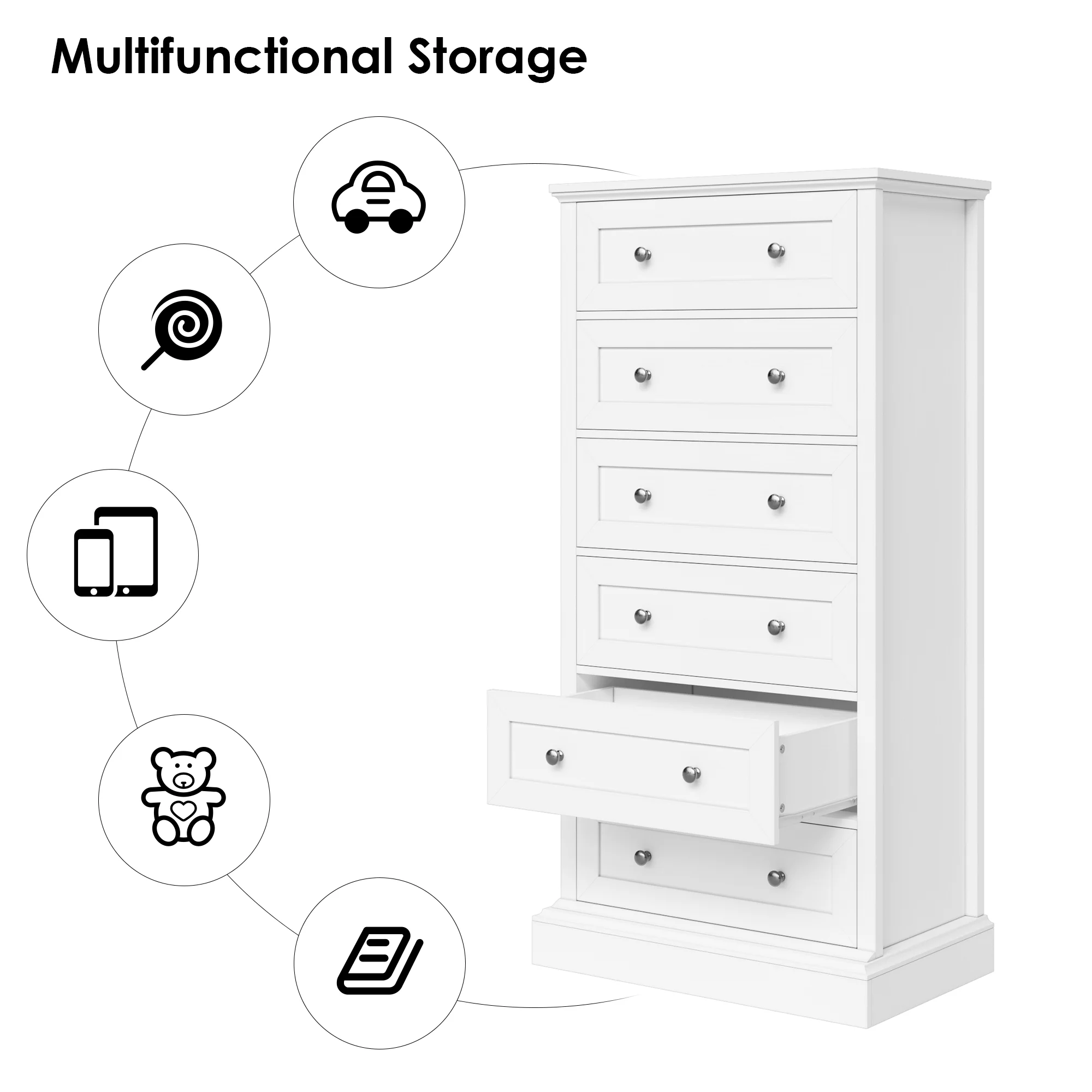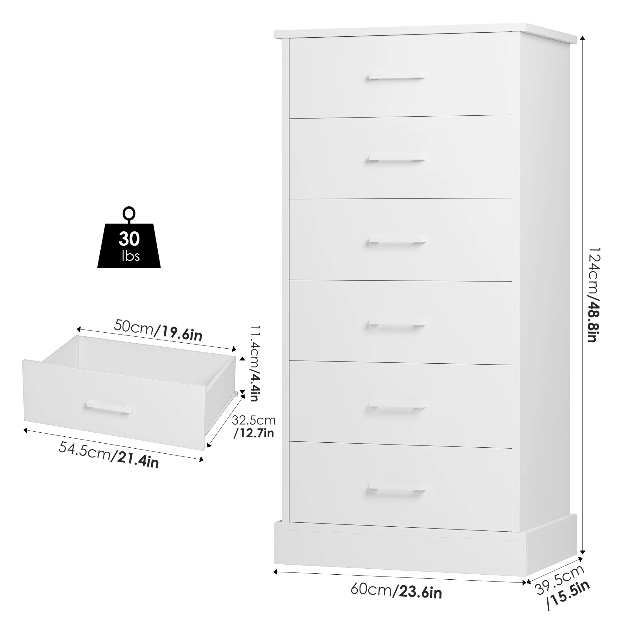Homfa White Dresser with 6 Drawers, Vertical Storage Cabinet Chest of Drawers for Bedroom Living Room