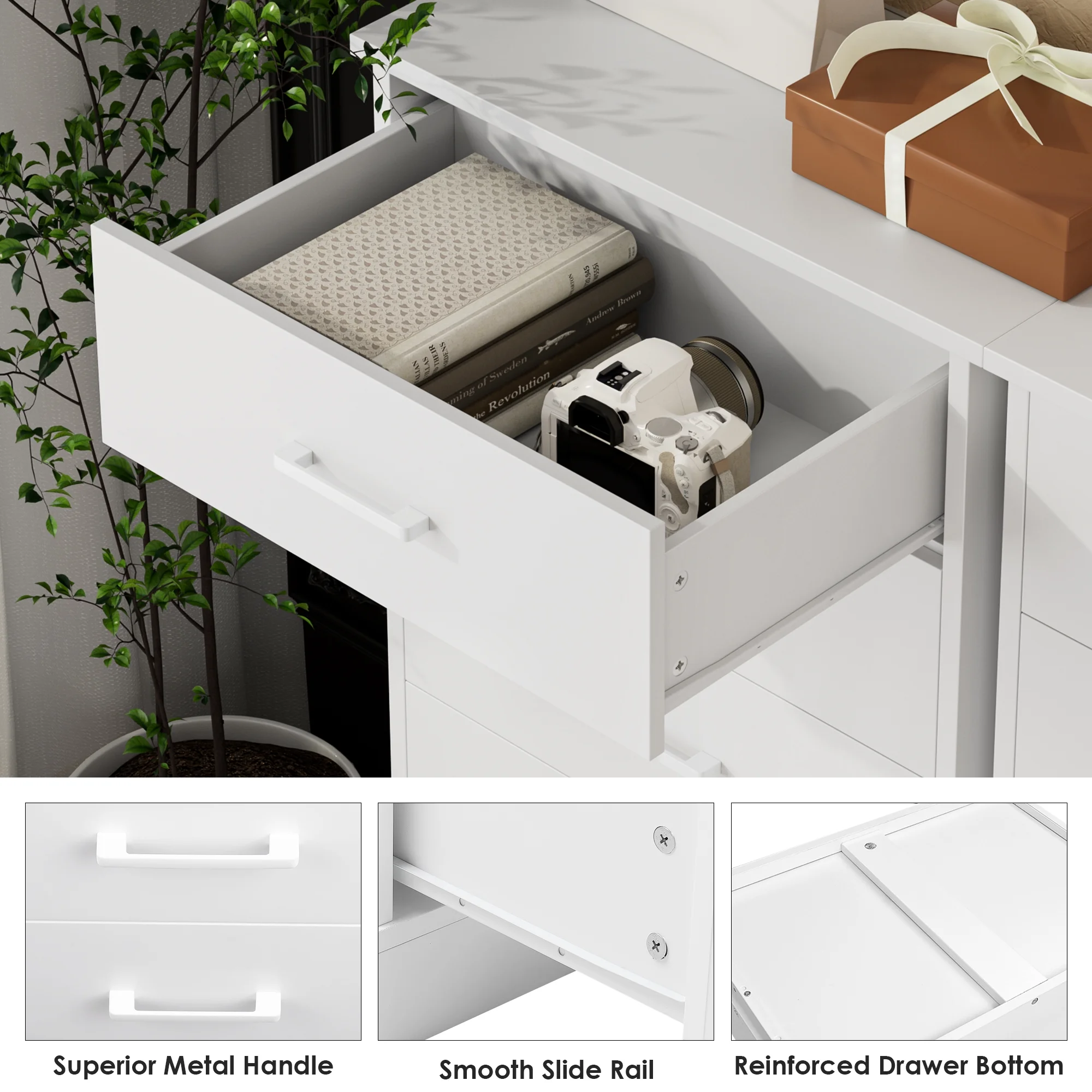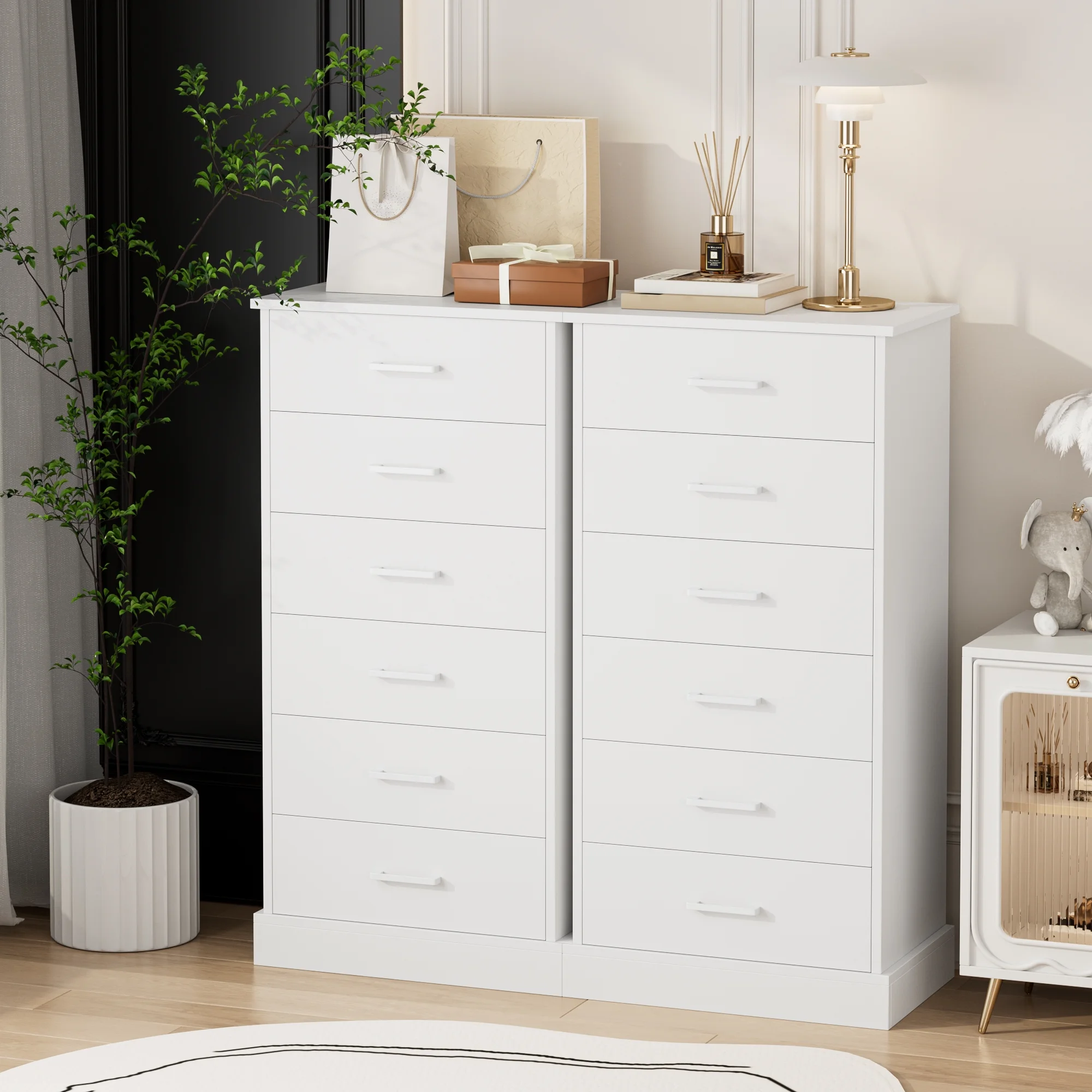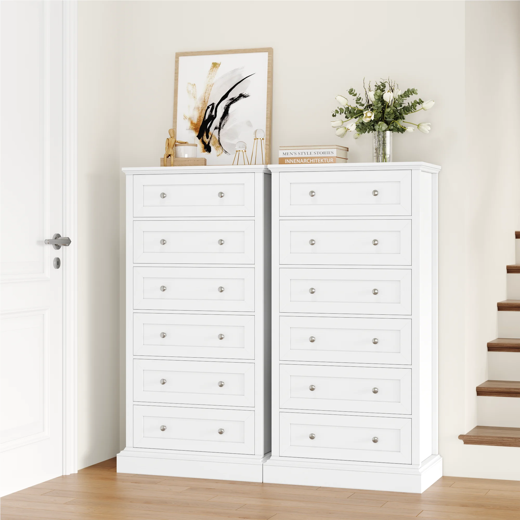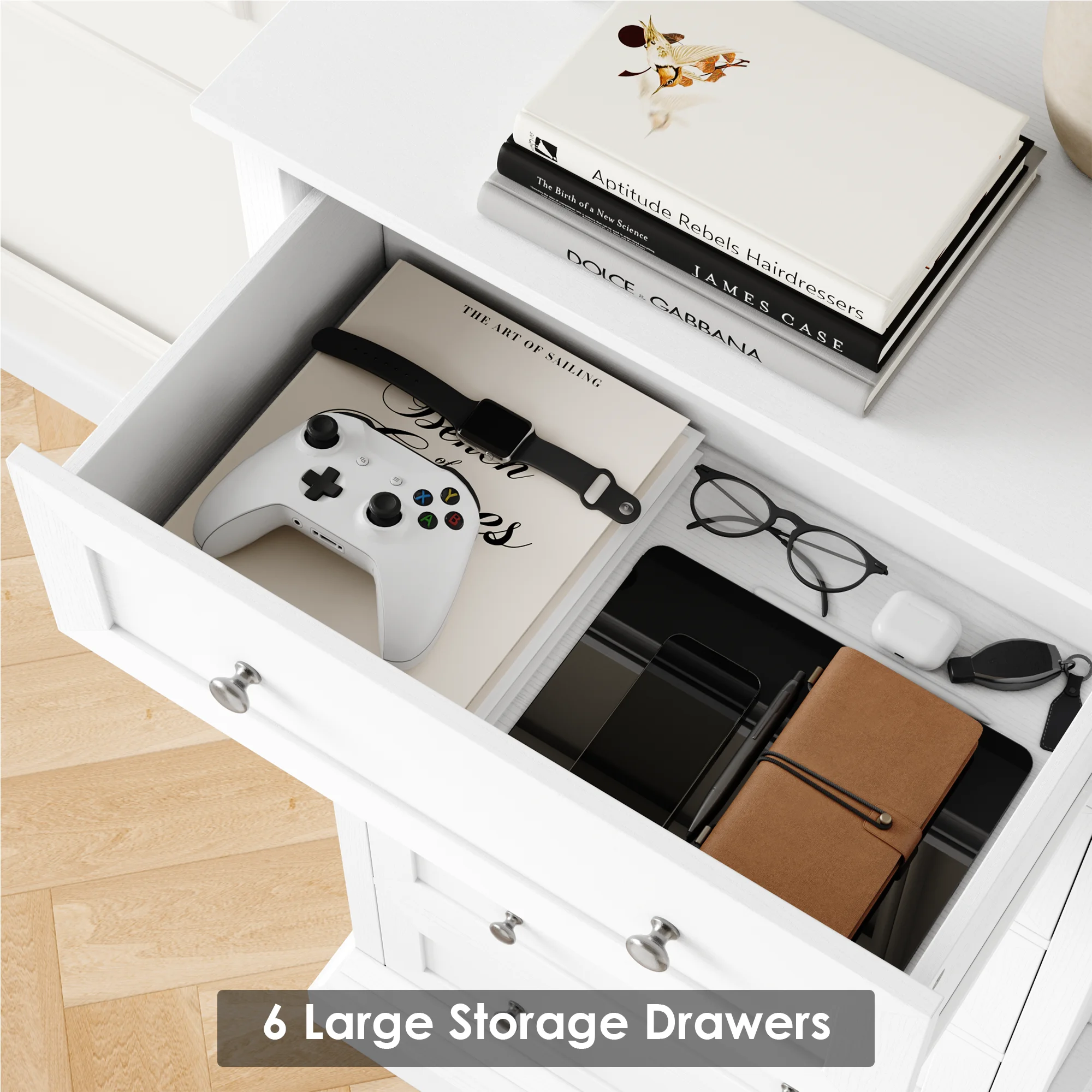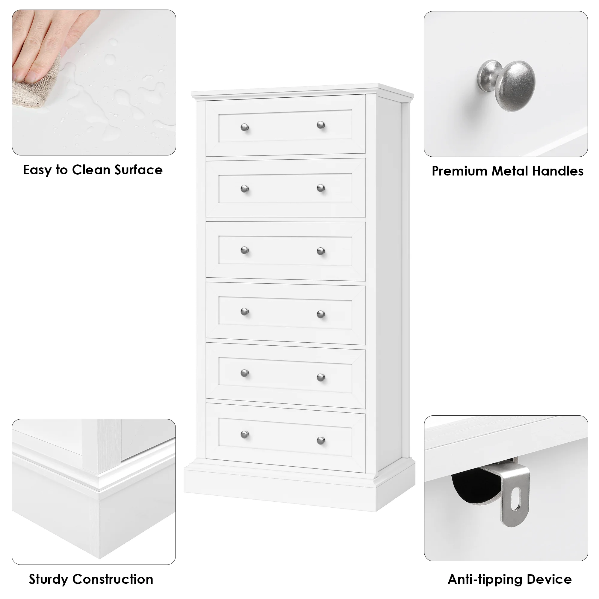 Homfa White Dresser with 6 Drawers, Vertical Storage Cabinet Chest of Drawers for Bedroom Living Room