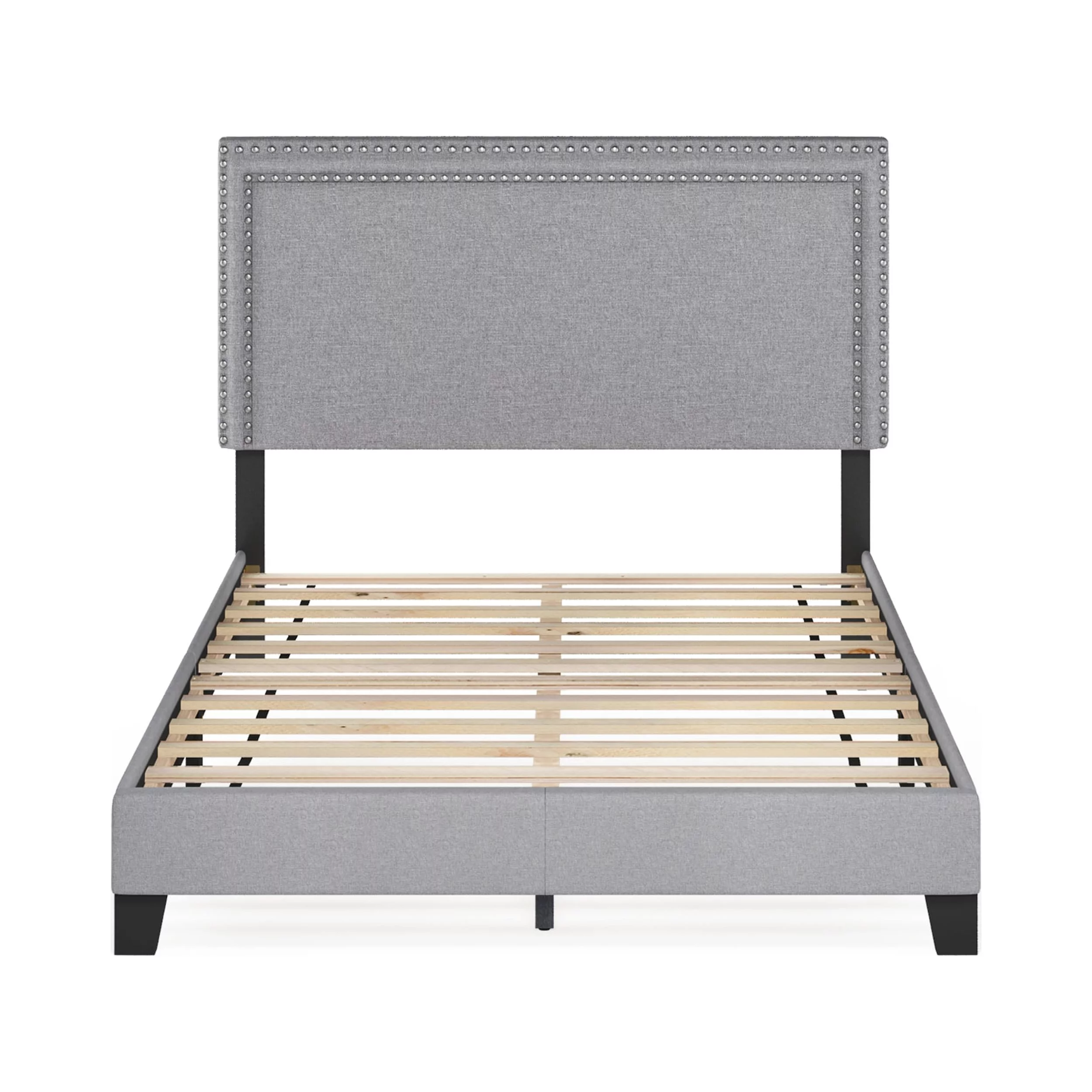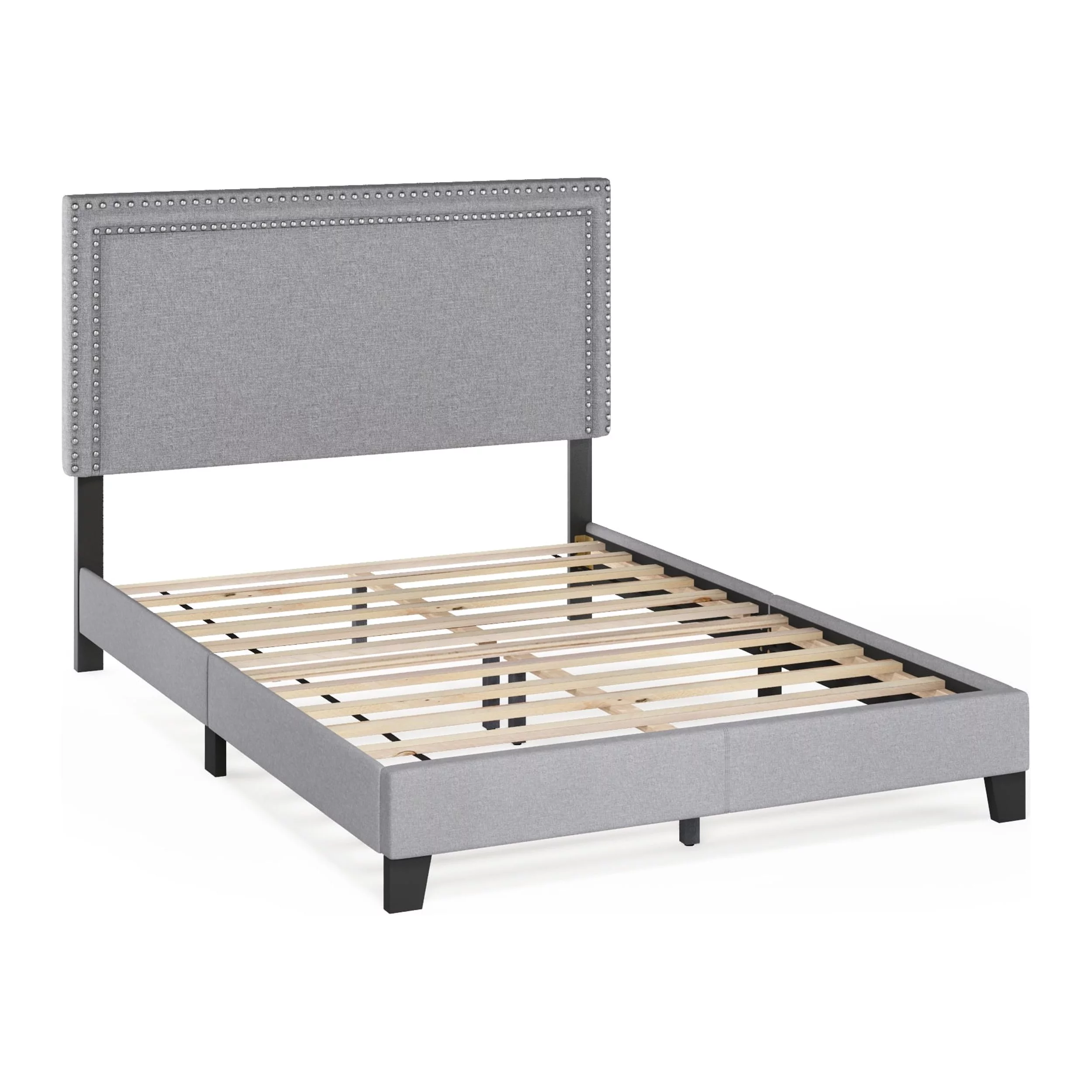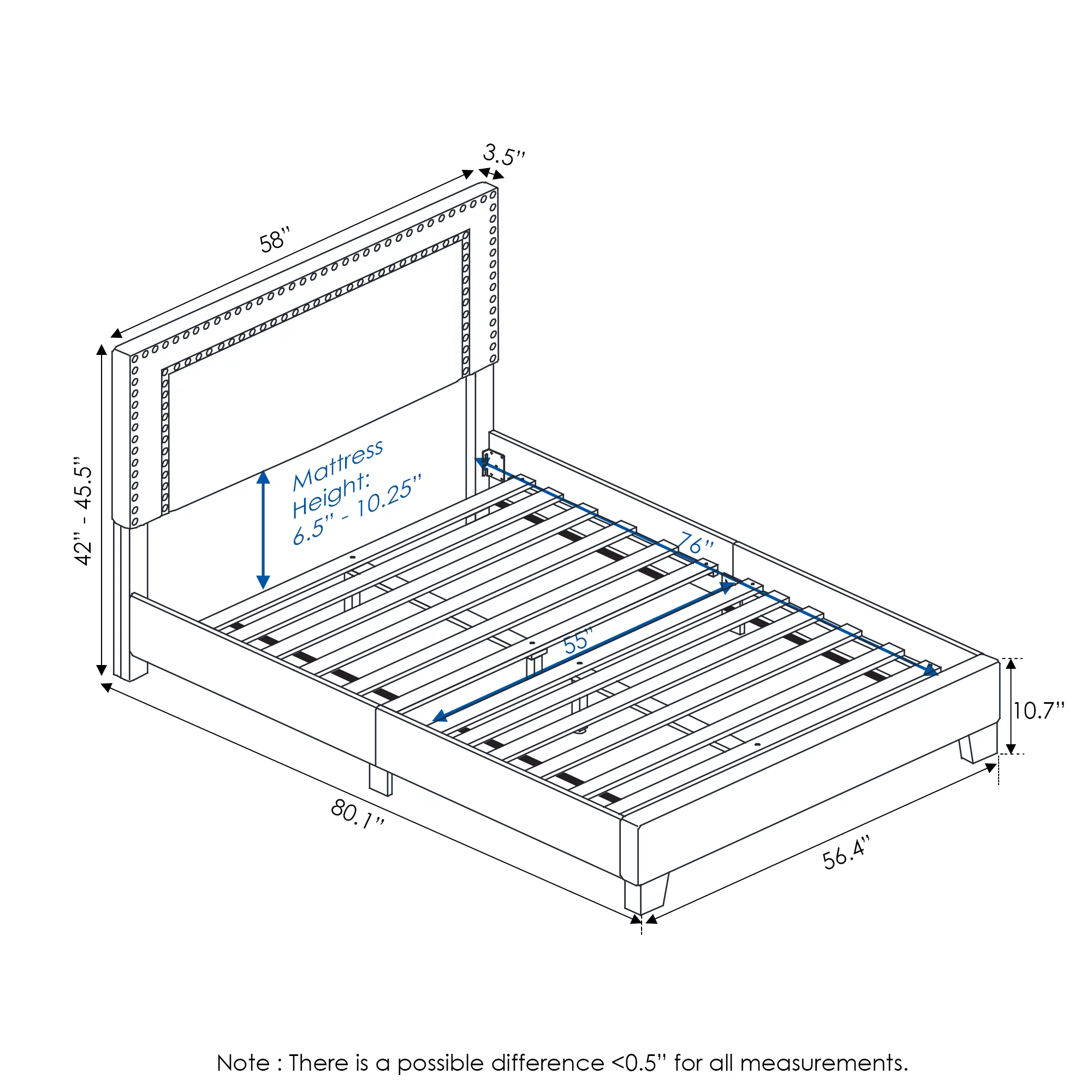 Furinno Laval Double Row Nail Head Bed Frame, 12PC Slat Style, Glacier, Full