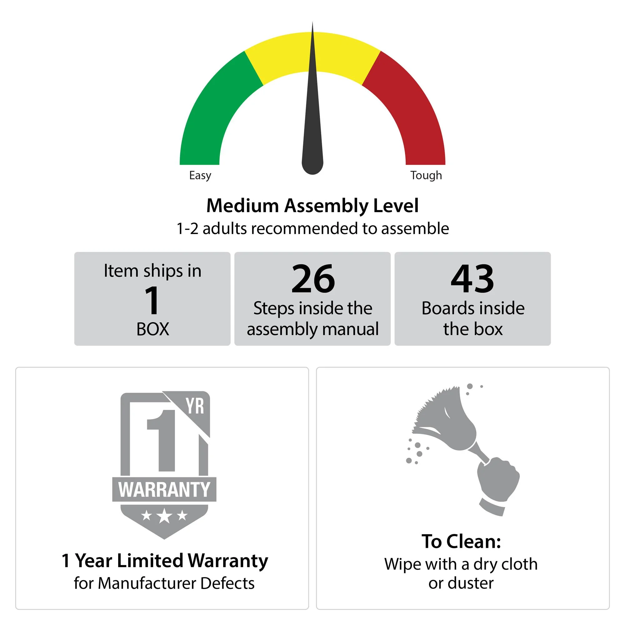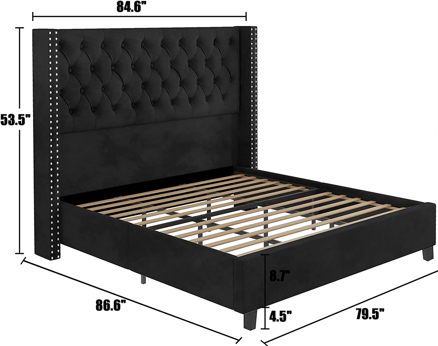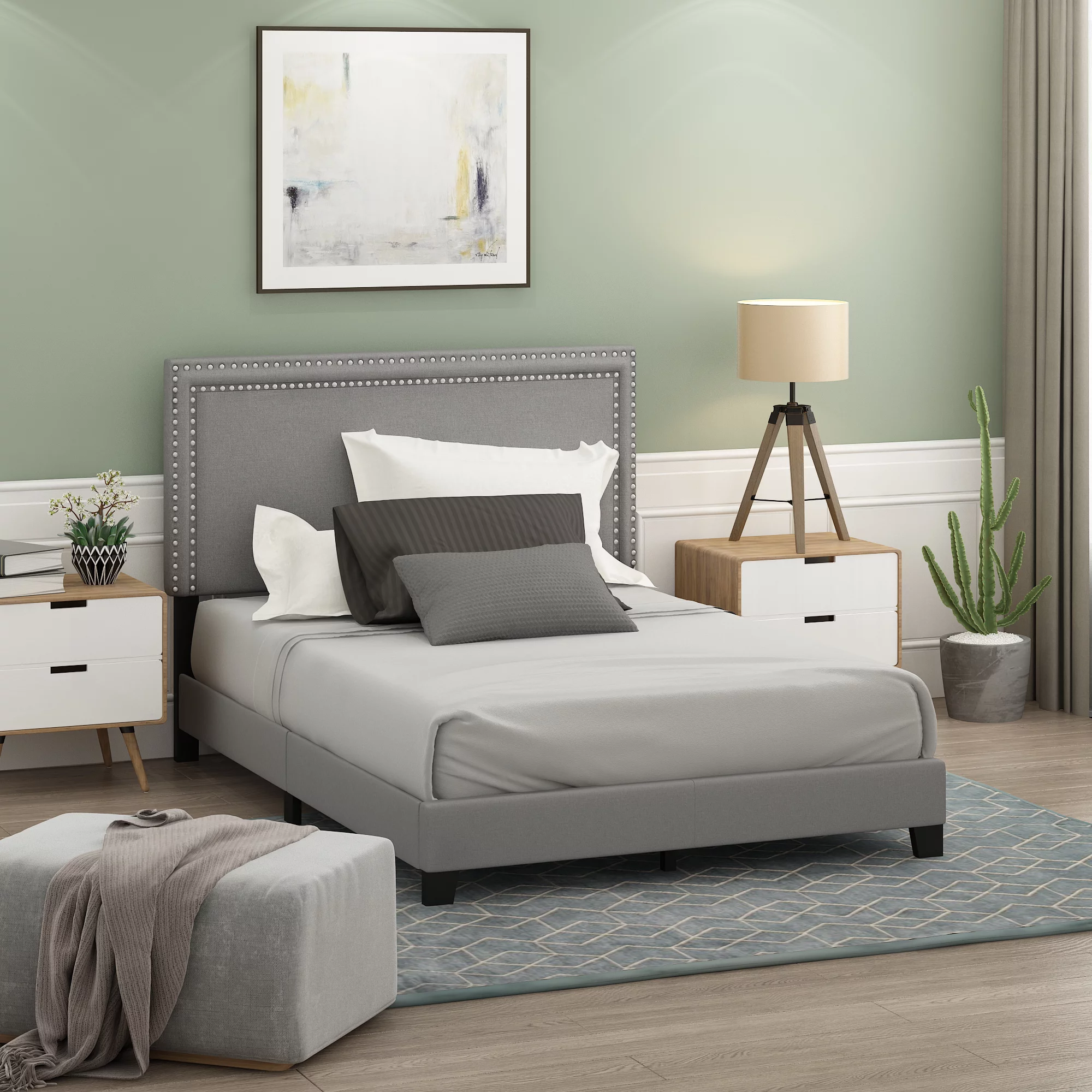 Furinno Laval Double Row Nail Head Bed Frame, 12PC Slat Style, Glacier, Full