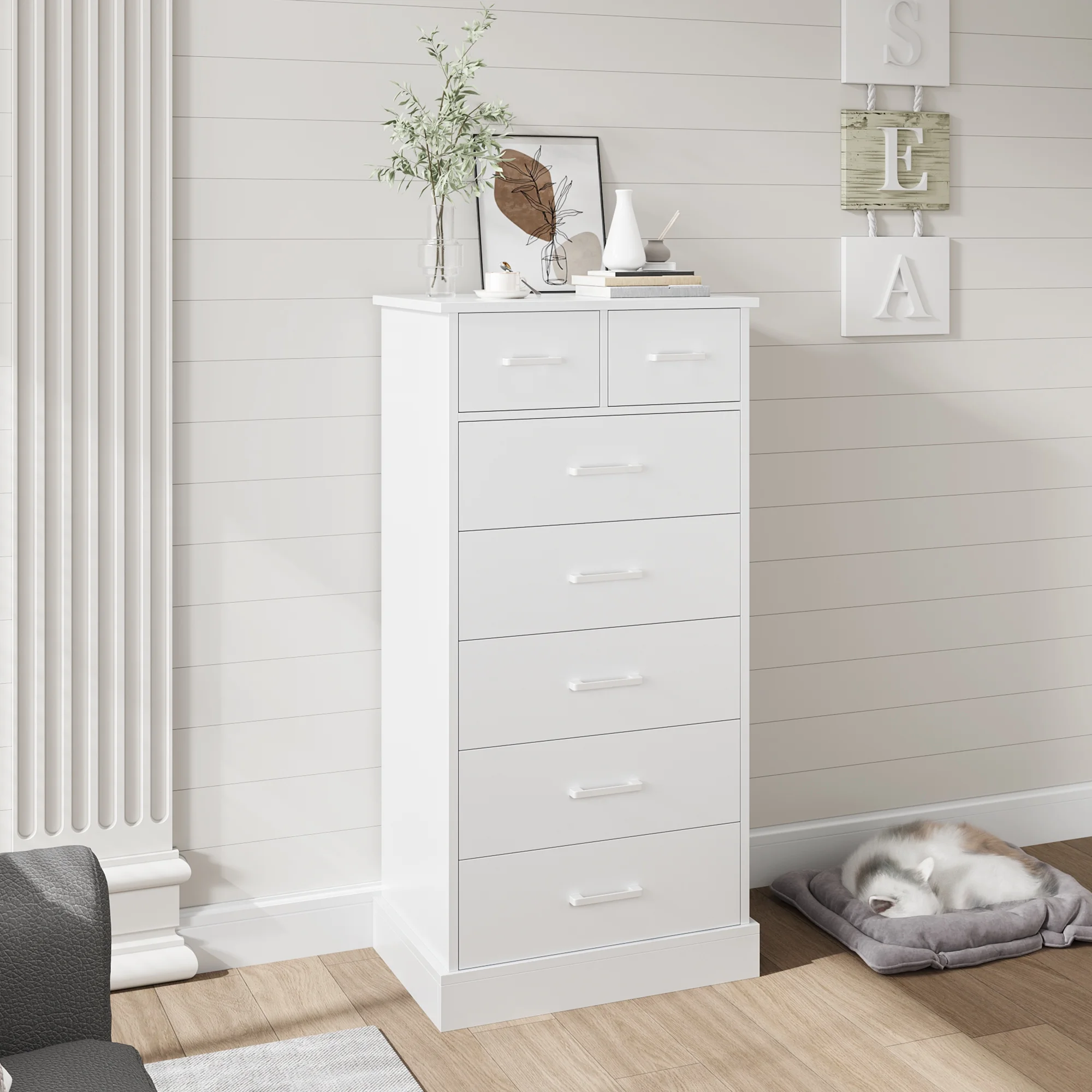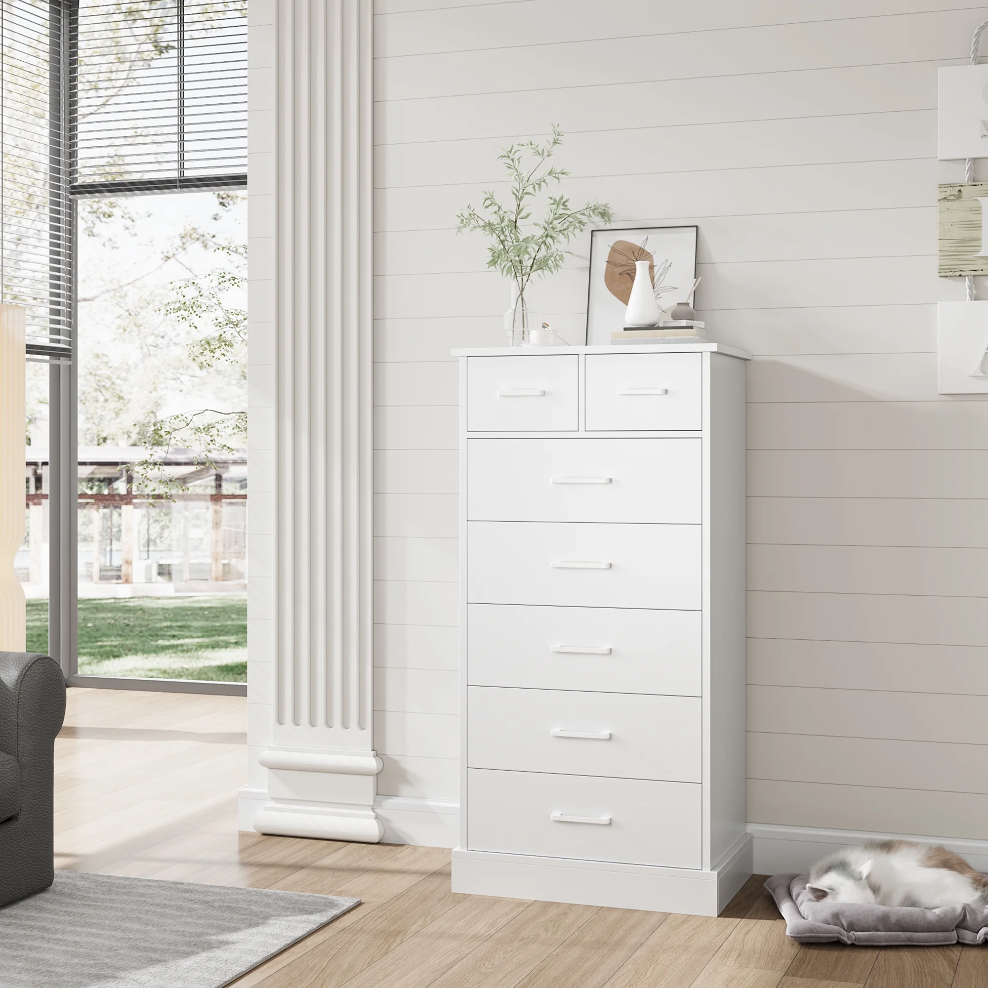 Homfa 7 Drawer White Dresser, Modern Nightstand Storage Cabinet Chest of Drawers for Bedroom Living Room