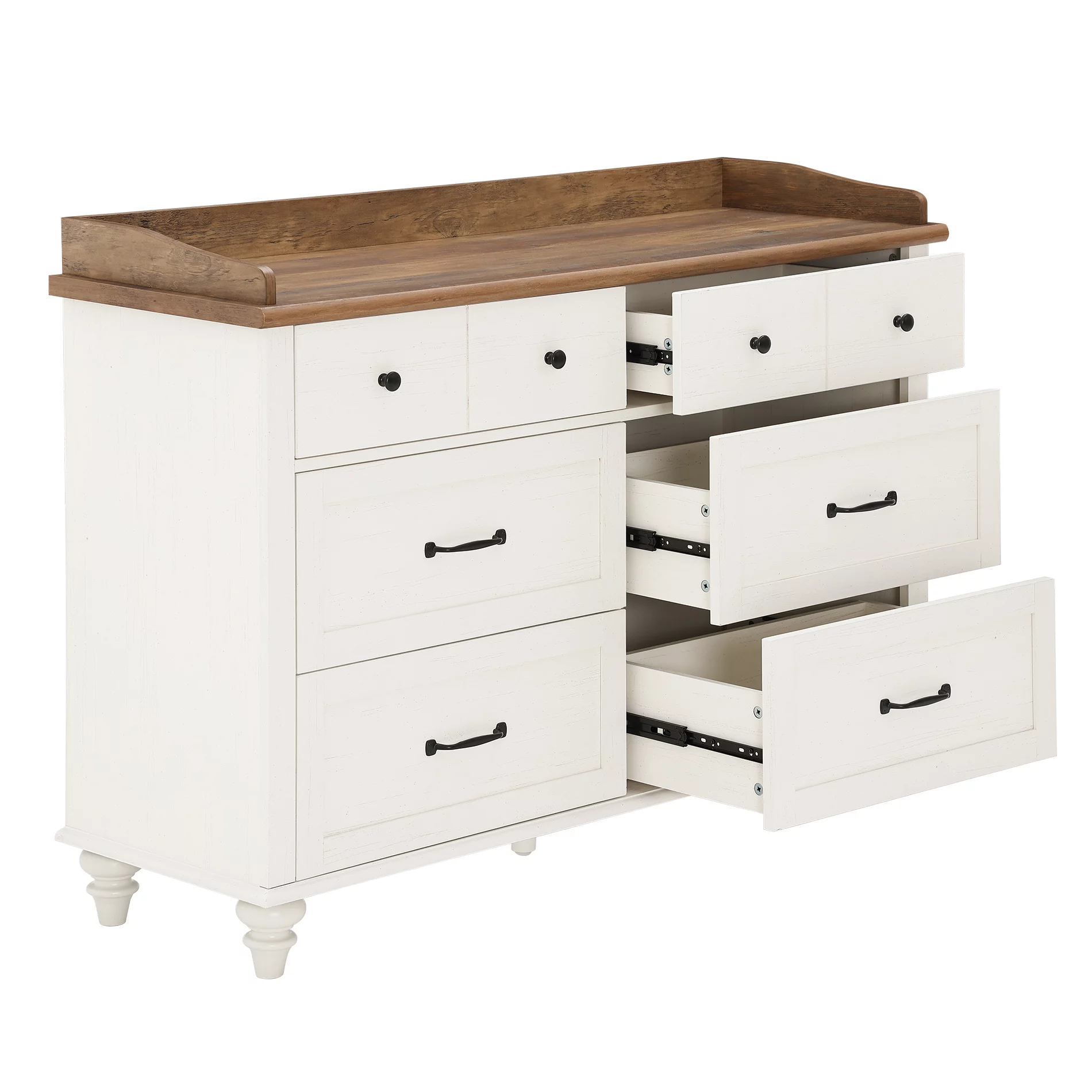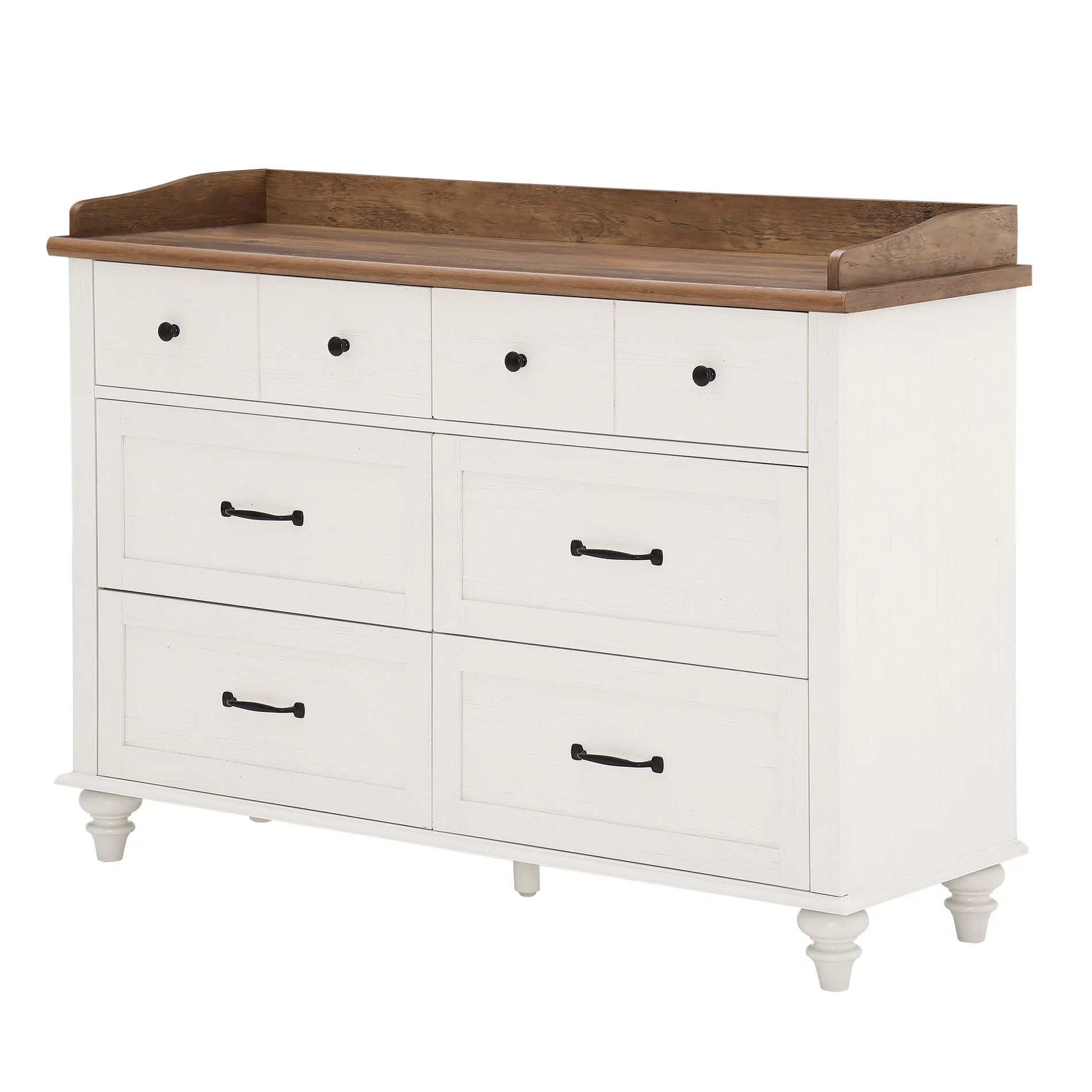White 6 Drawer Dresser with Changing Table Top, Chest of Drawers Bedroom Dresser, 47 Inch