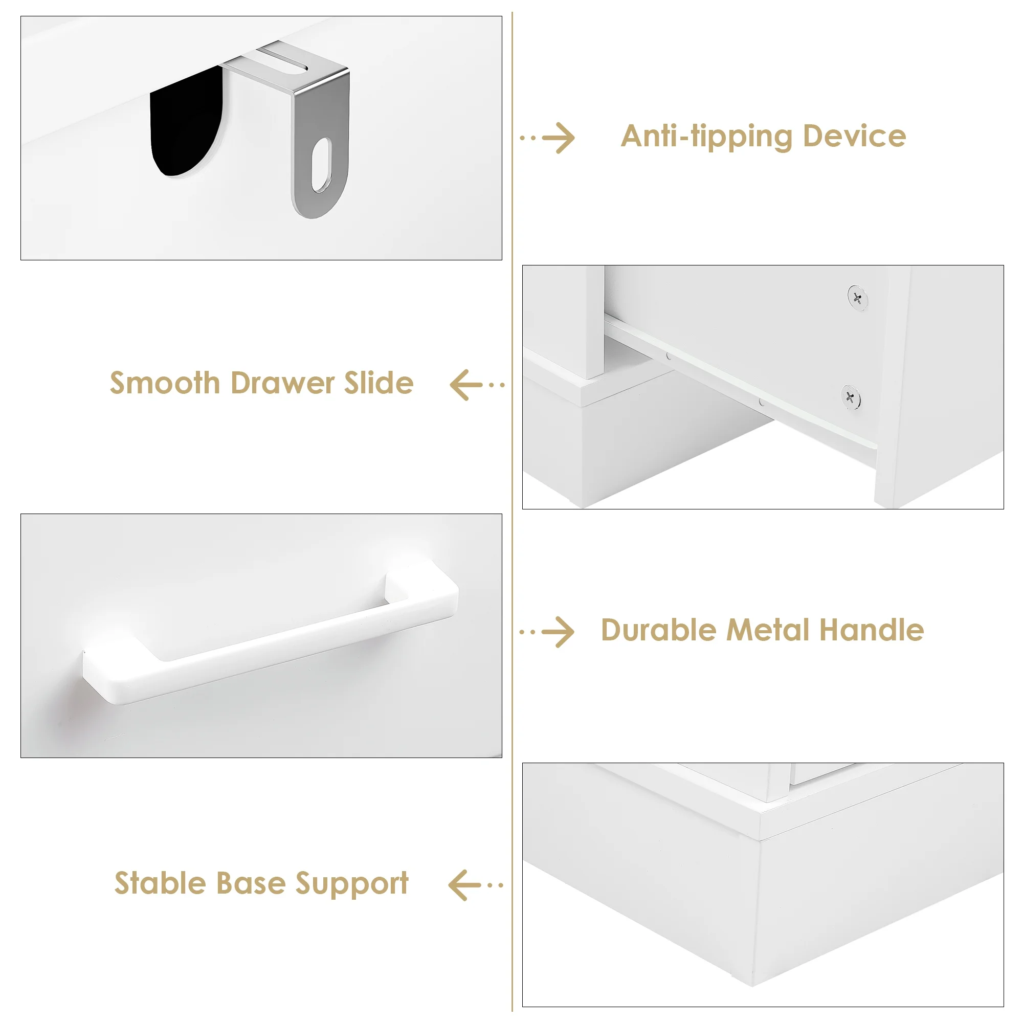 Homfa 5 Drawer White Dresser, Tall Nightstand Wooden Storage Cabinet with Metal Handles for Bedroom Living Room