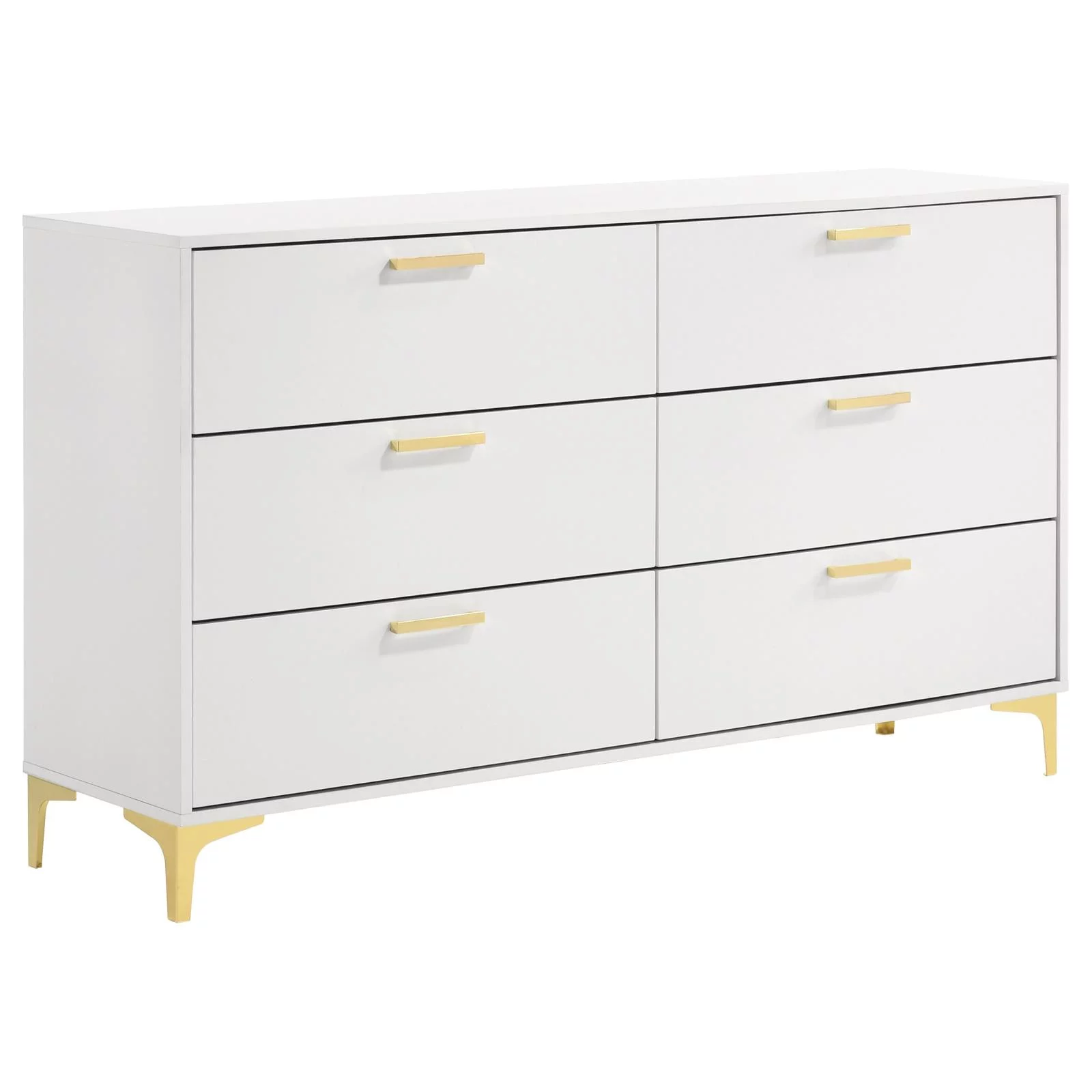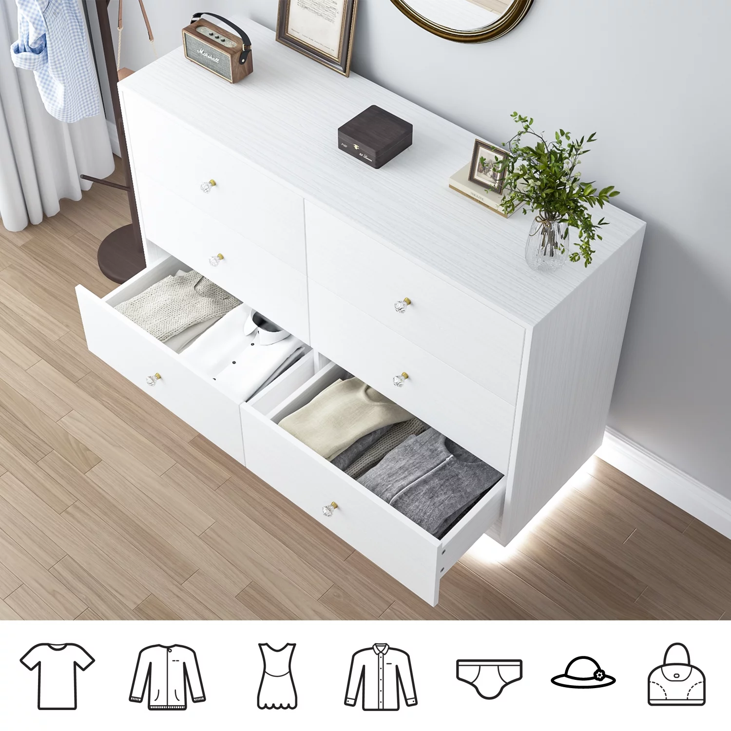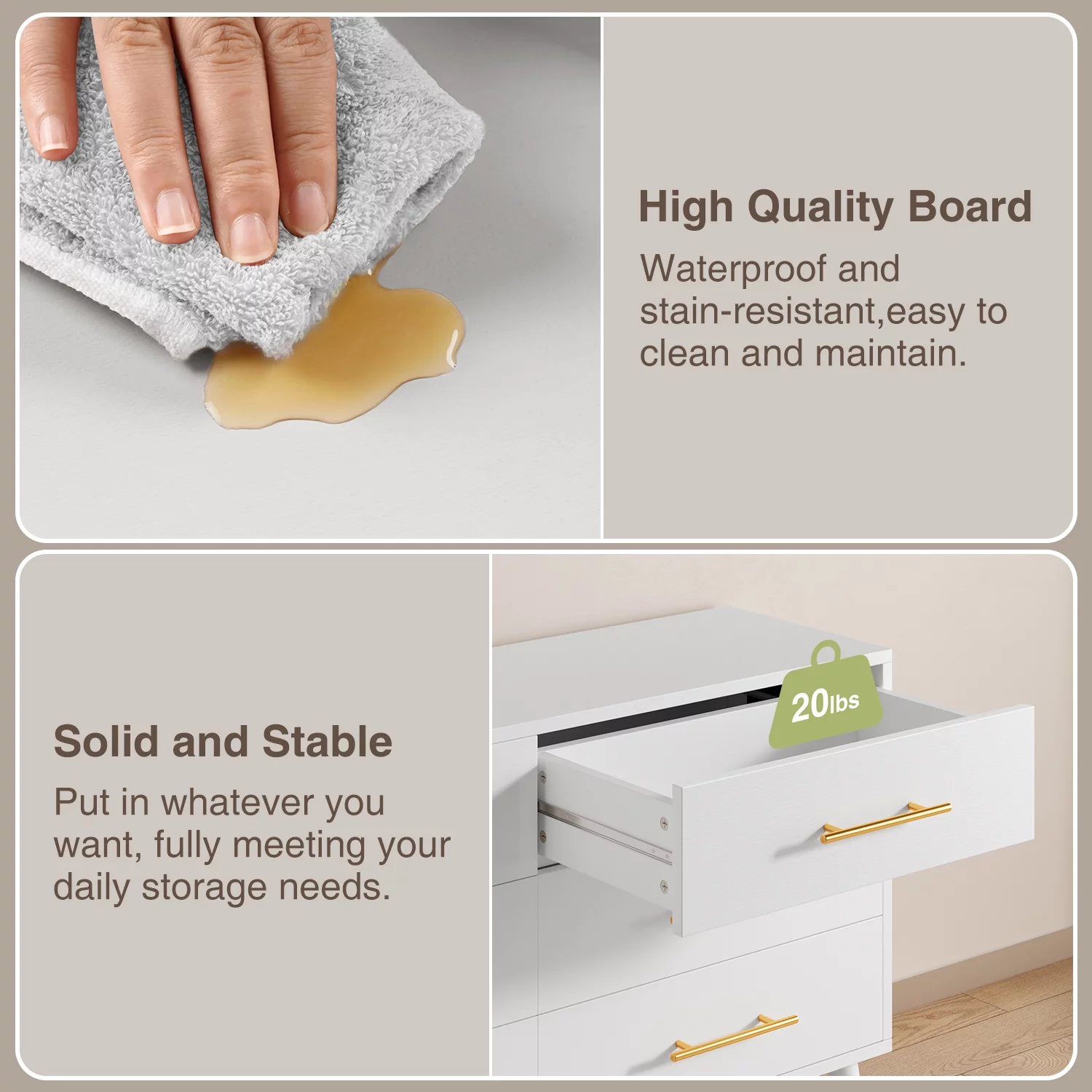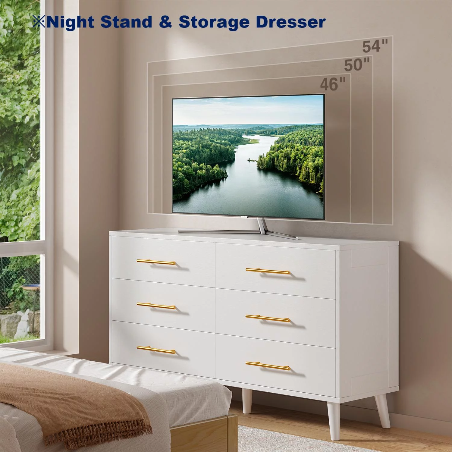 White Dresser, Dresser with 6 Drawers, Wide Chest of Drawers with Gold Handles