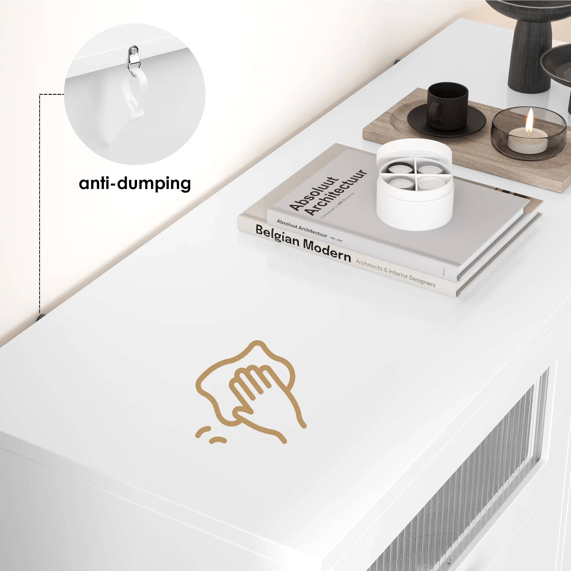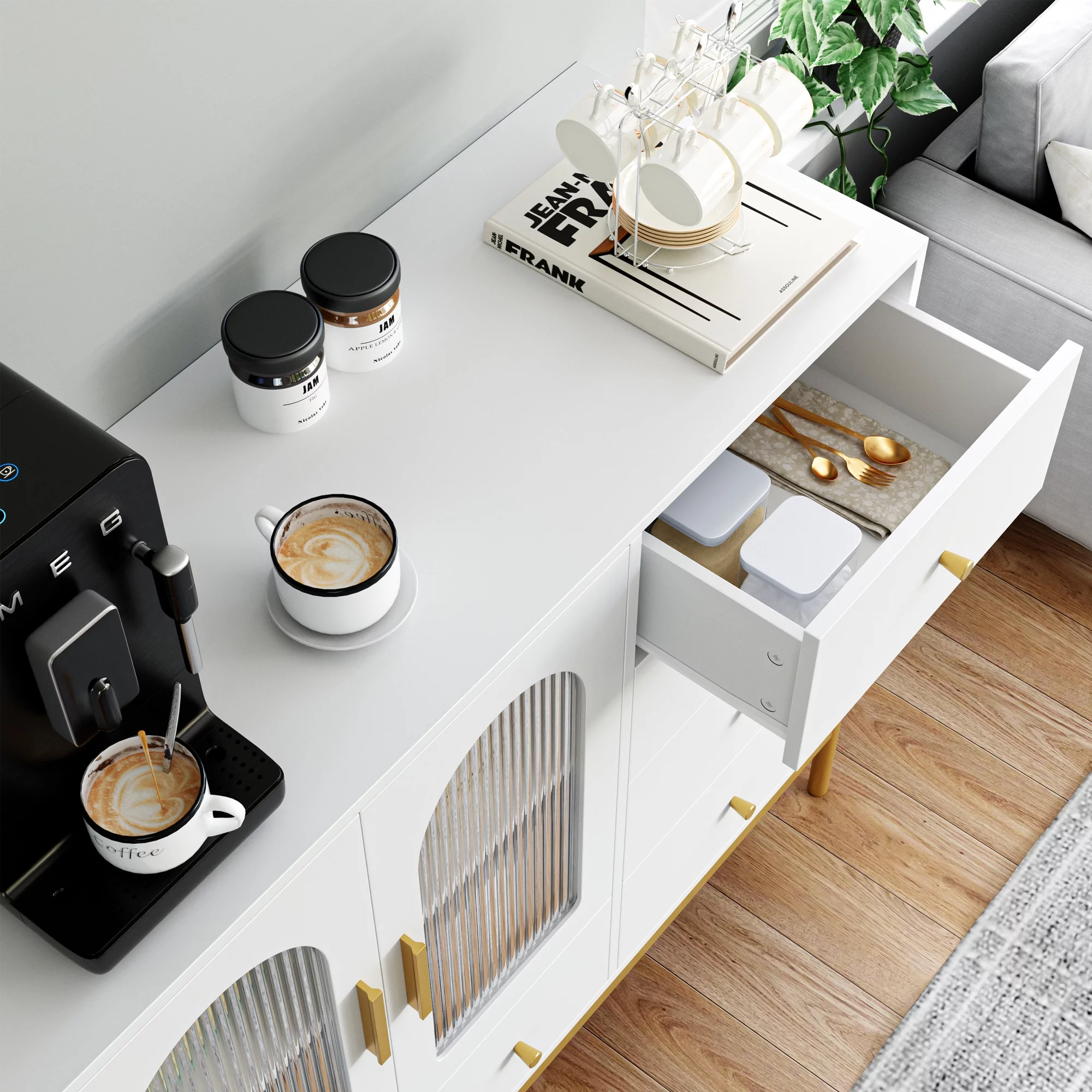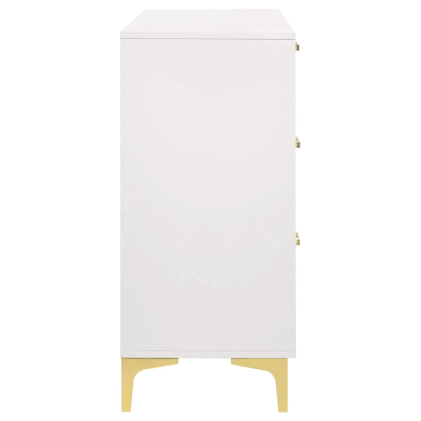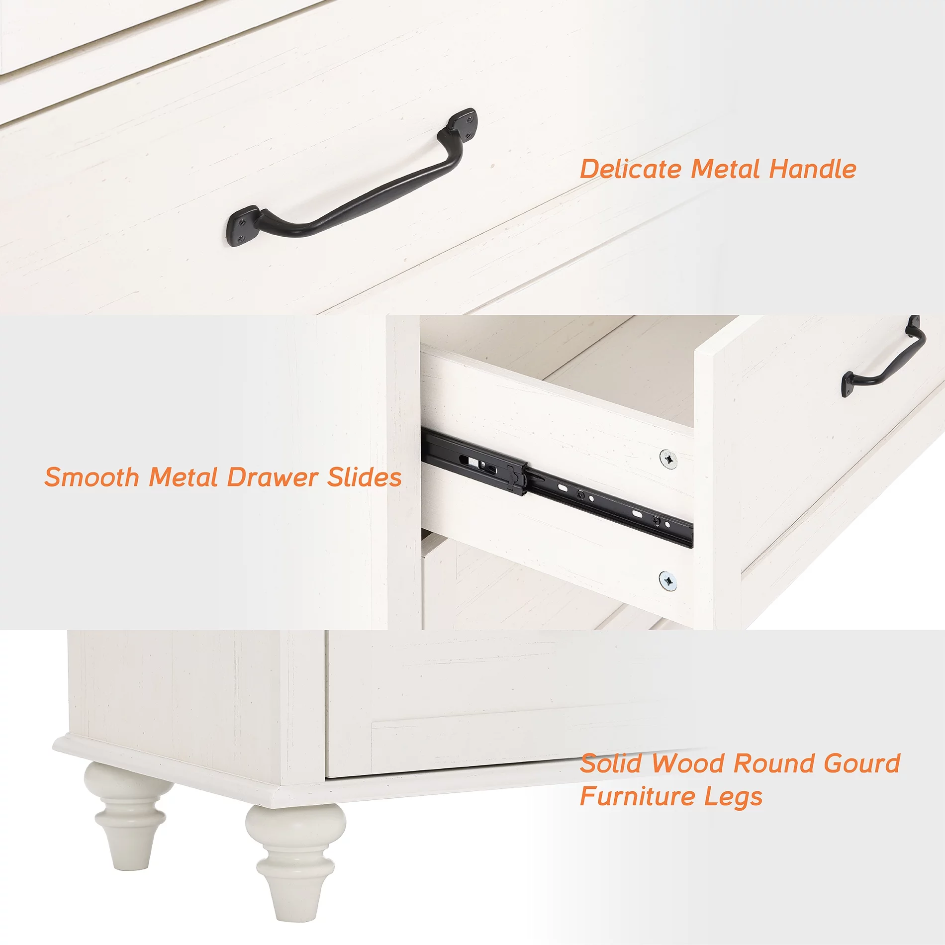 White Dresser, Dresser with 6 Drawers, Wide Chest of Drawers with Gold Handles