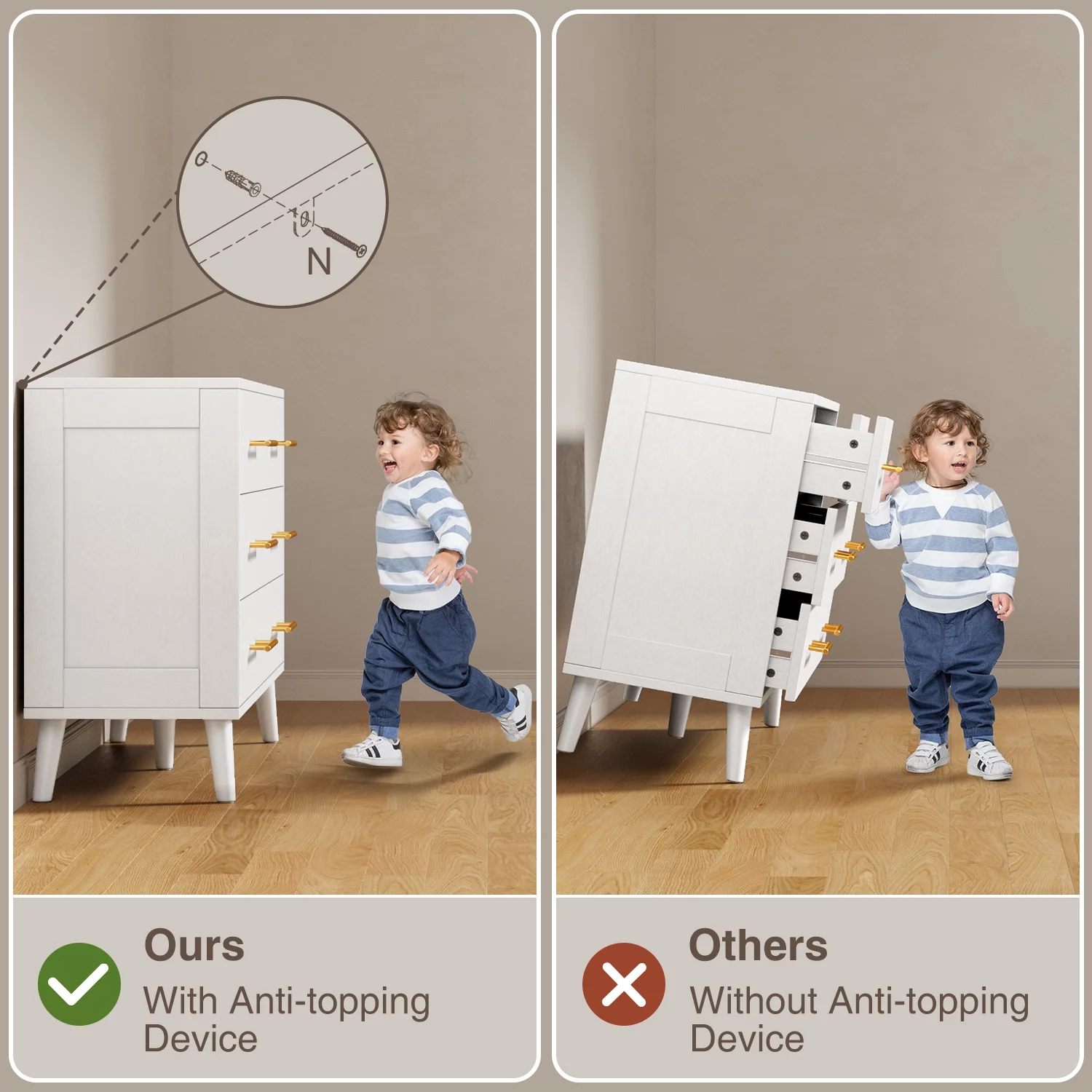 Wood Kids Dresser with 6 Drawers, Nursery Dresser Chest of Drawers, Mid-Century White Dresser for Bedroom, 47 Inch