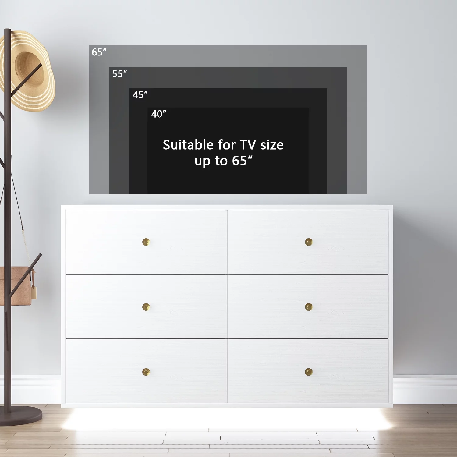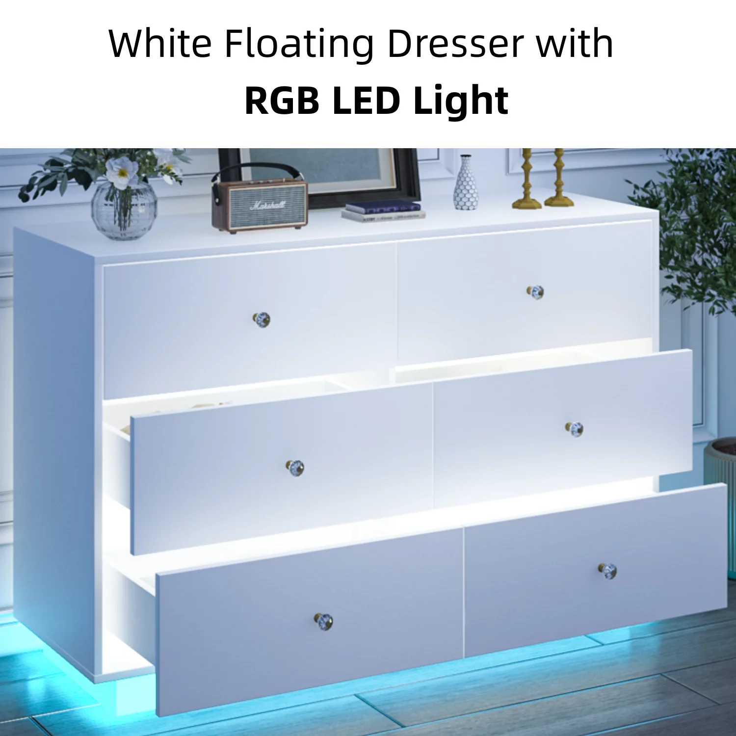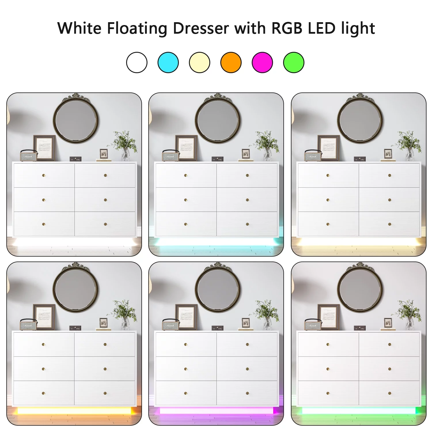 Afuhokles 6 Drawer Dresser for Bedroom, Modern Chest of Drawers, Wood Dresser with LED Light, White