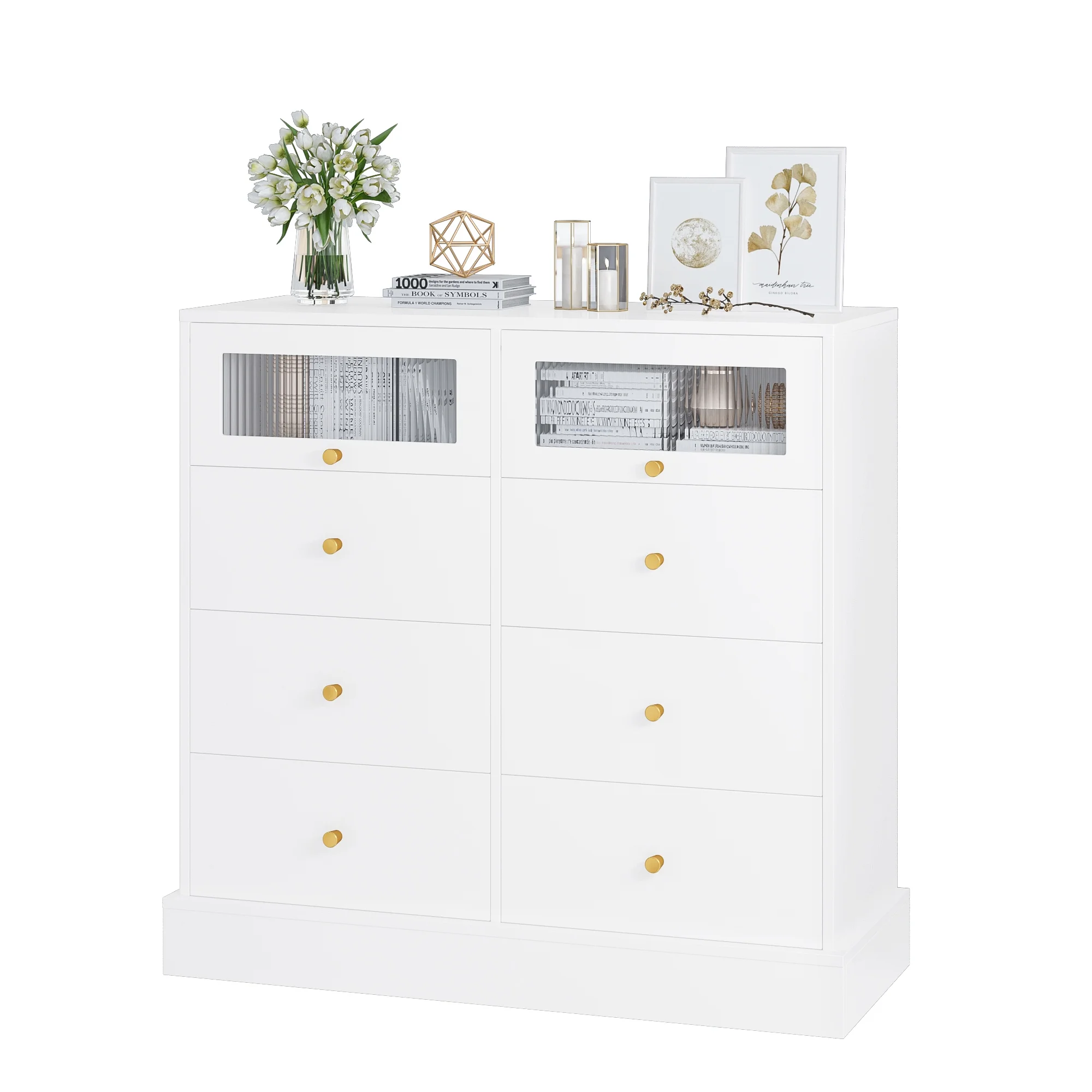 Homfa 5 Drawer Dresser for Bedroom, Modern Accent Storage Cabinet with Glass Door and Metal Base for Adult, White