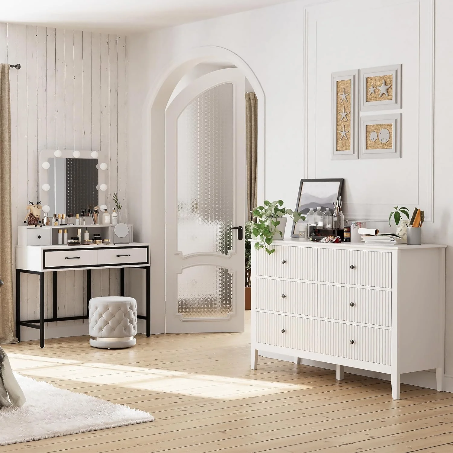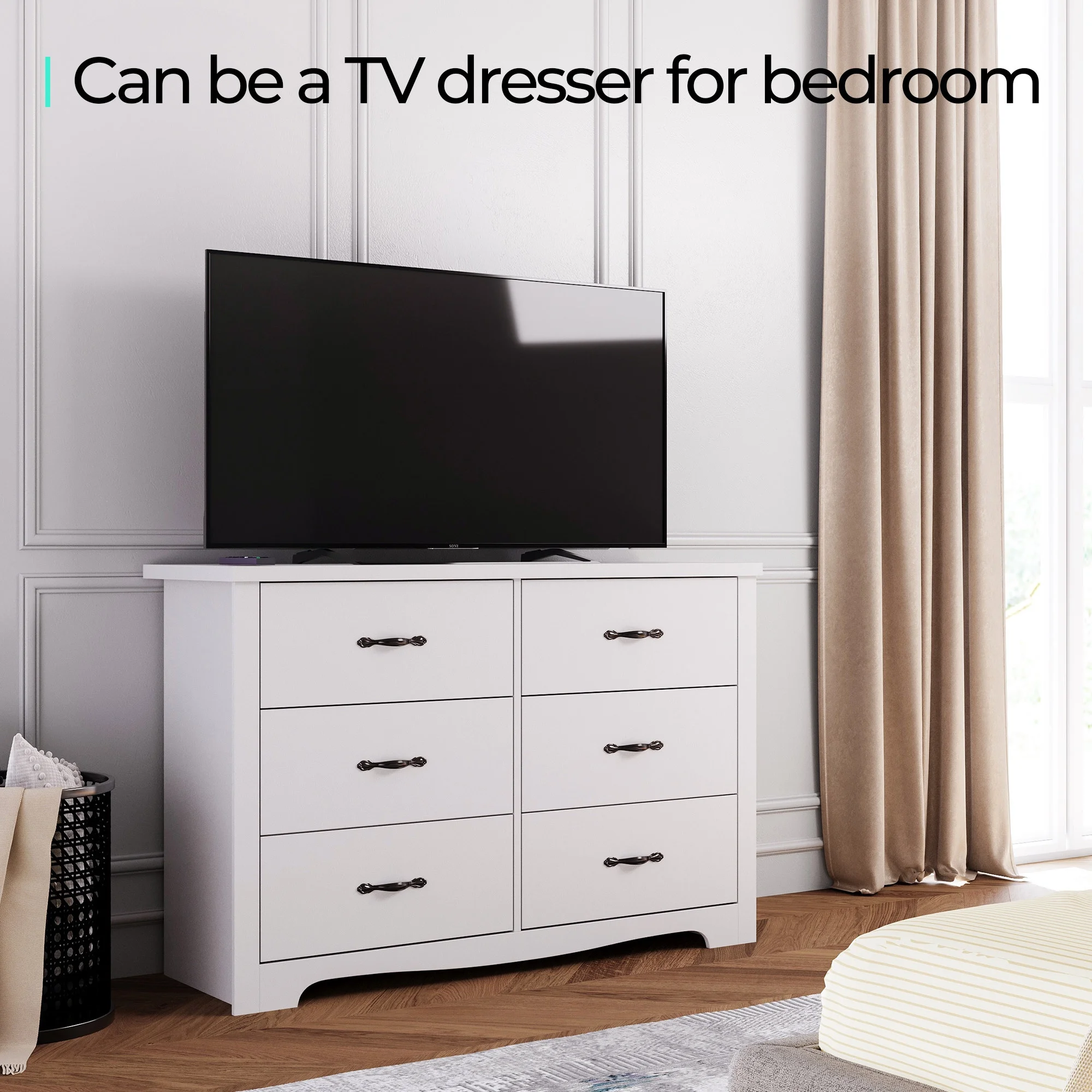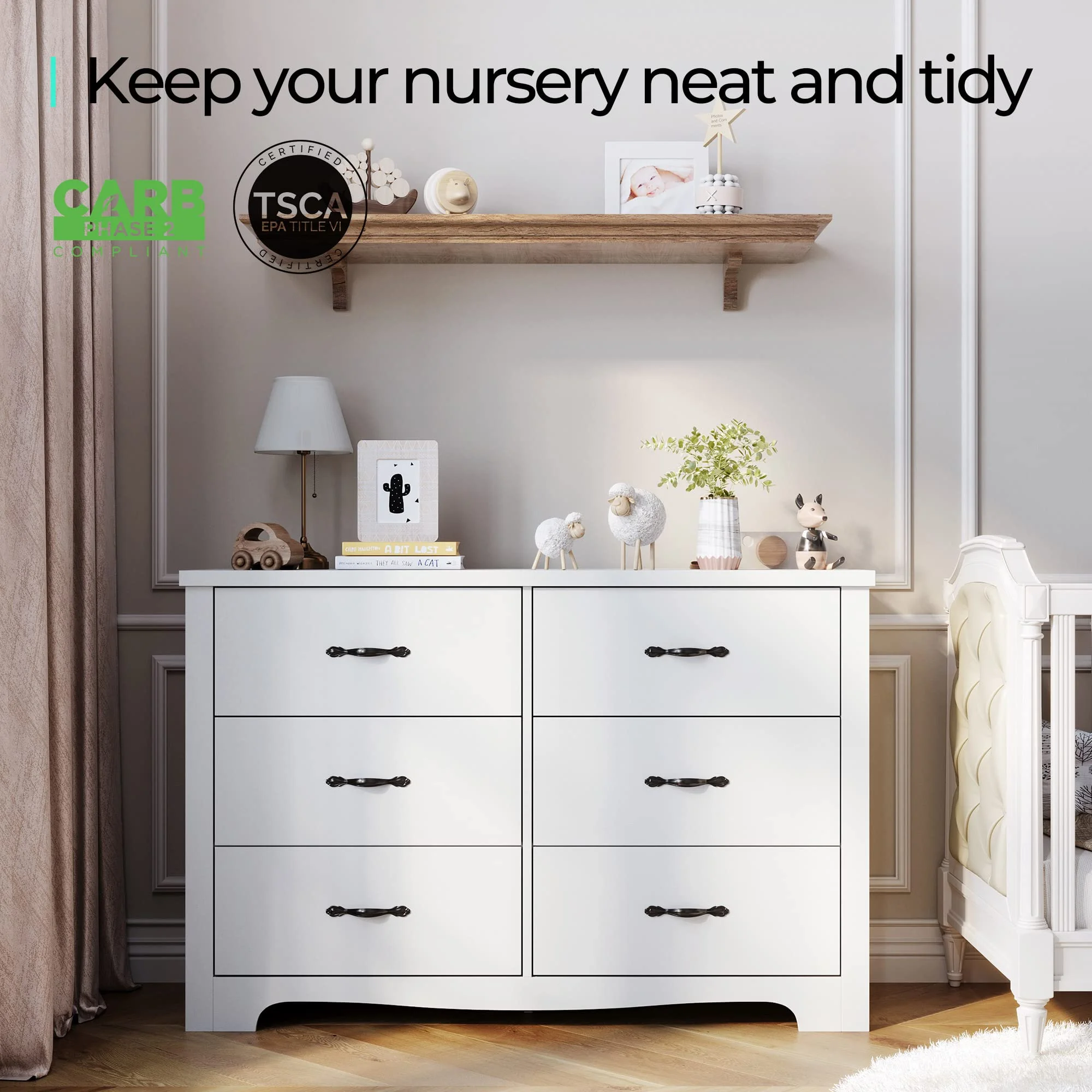 LINSY HOME Dressers for Bedroom, 6 Drawers Chest, Nursery Dresser Organizer, Wide Dresser Chest of Drawers - White