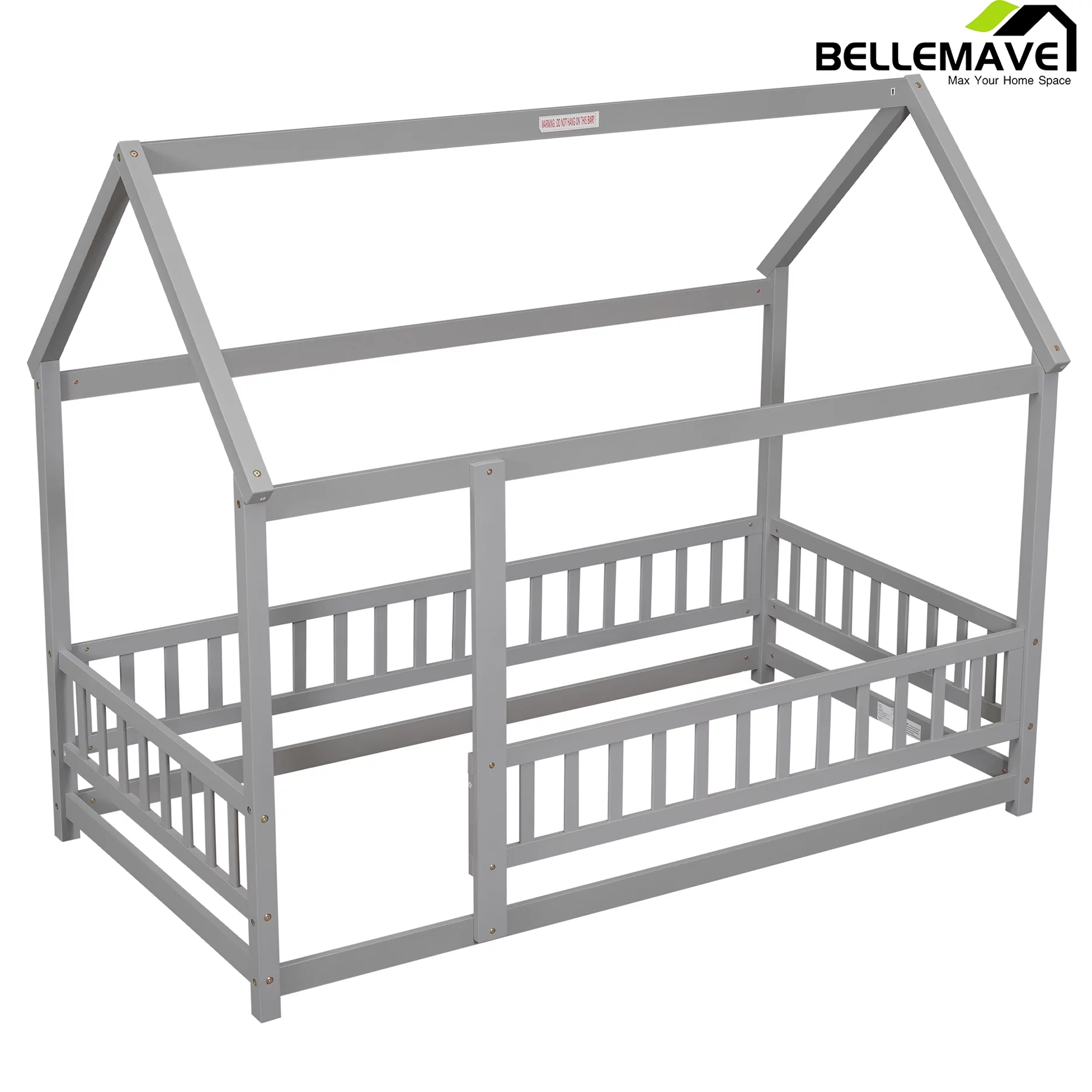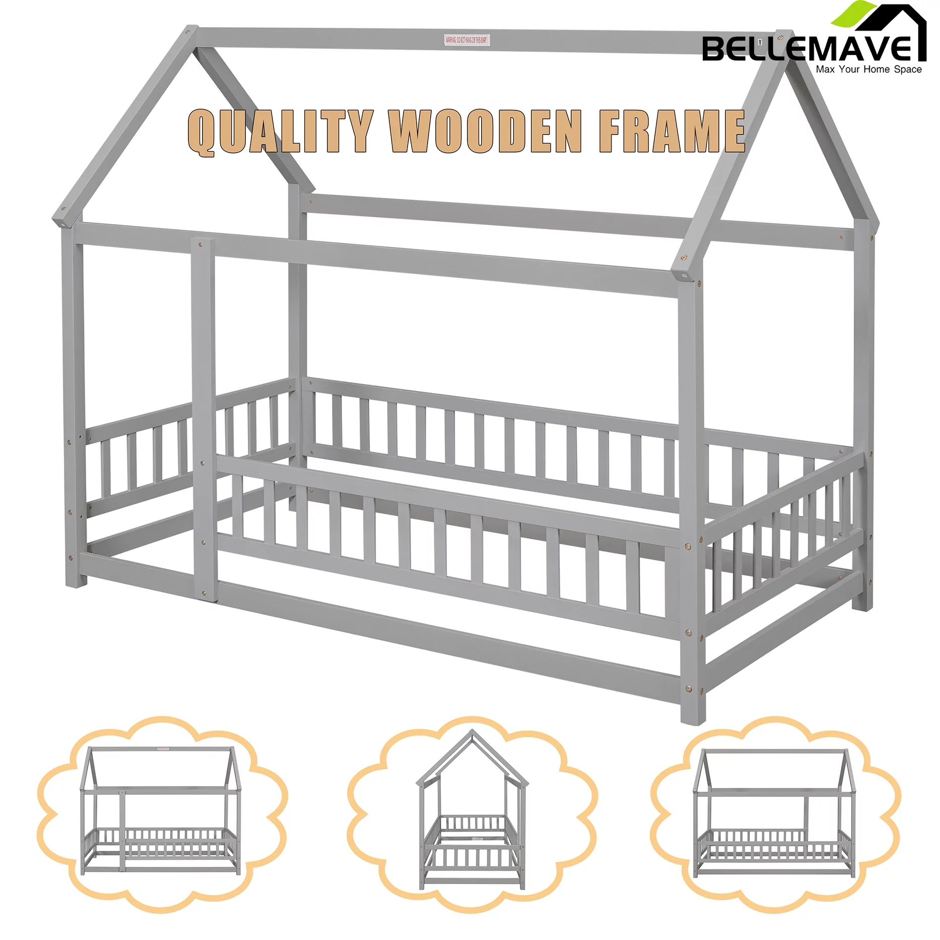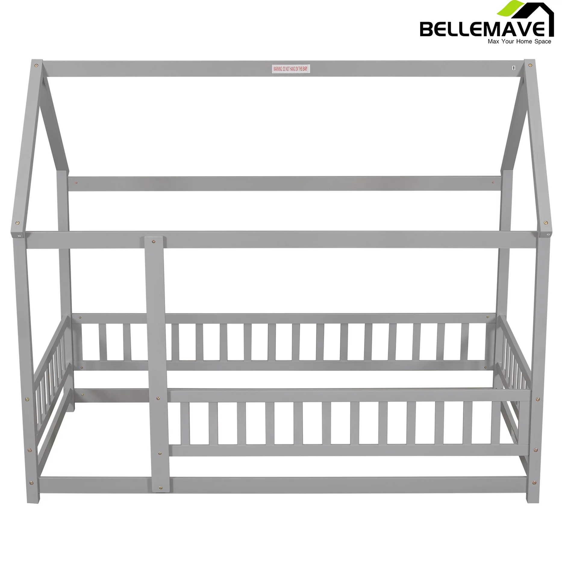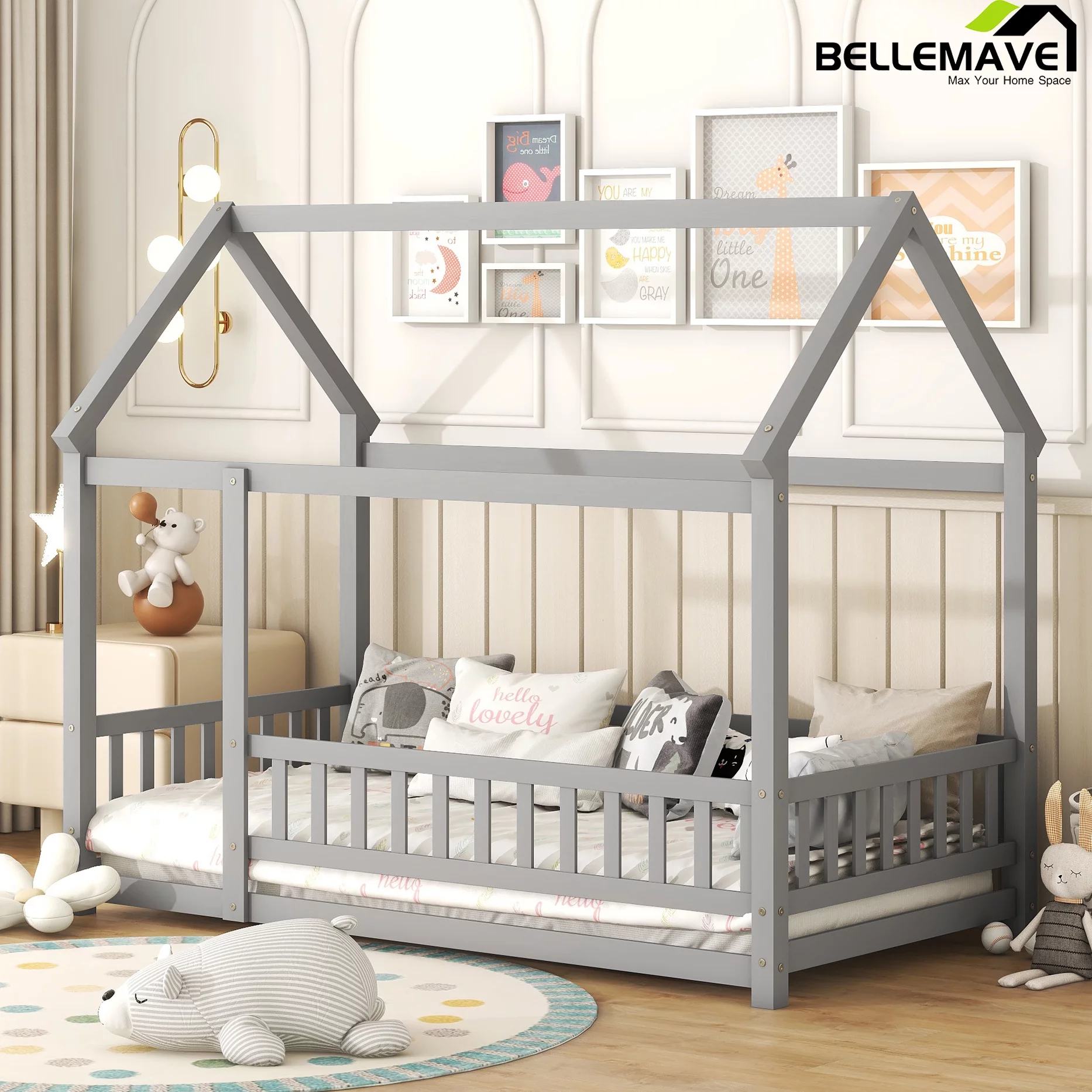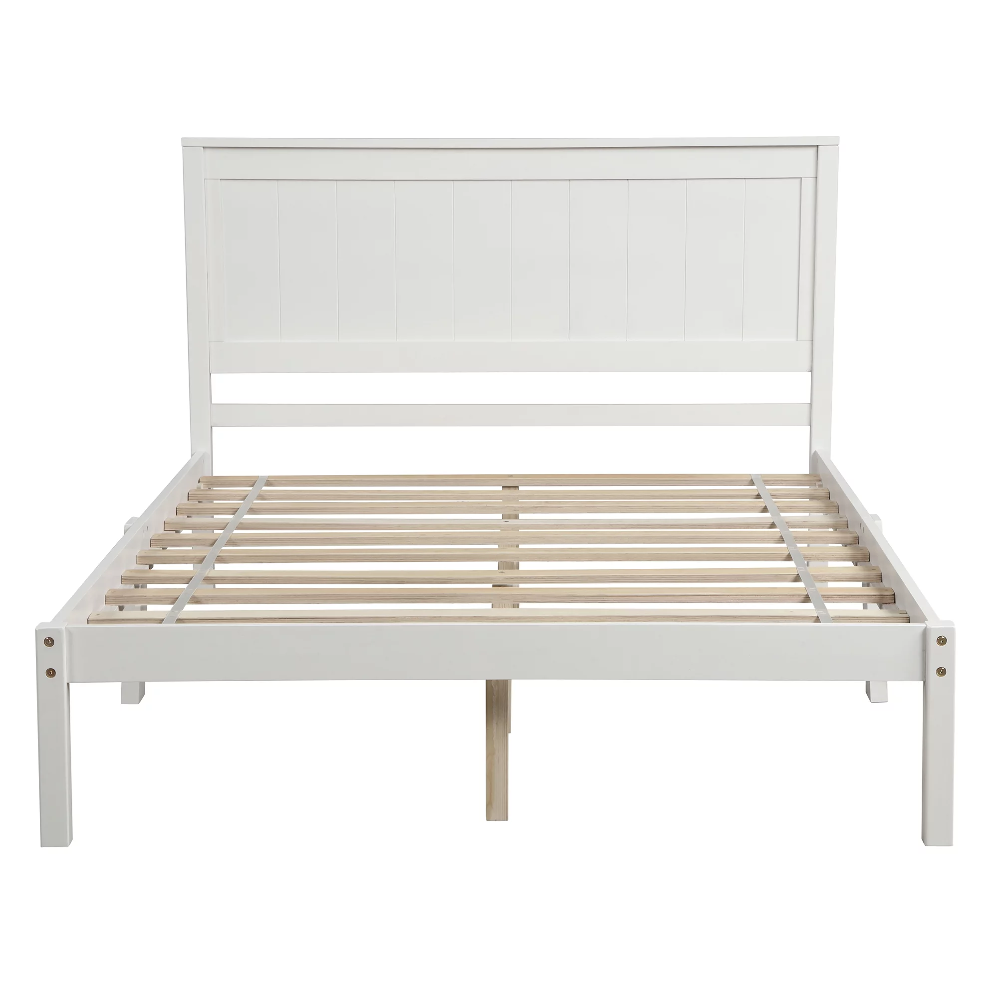 EUROCO Full Size House Bed with Two Drawers for Kids, Solid Wood Platform Bed for Living Room, White