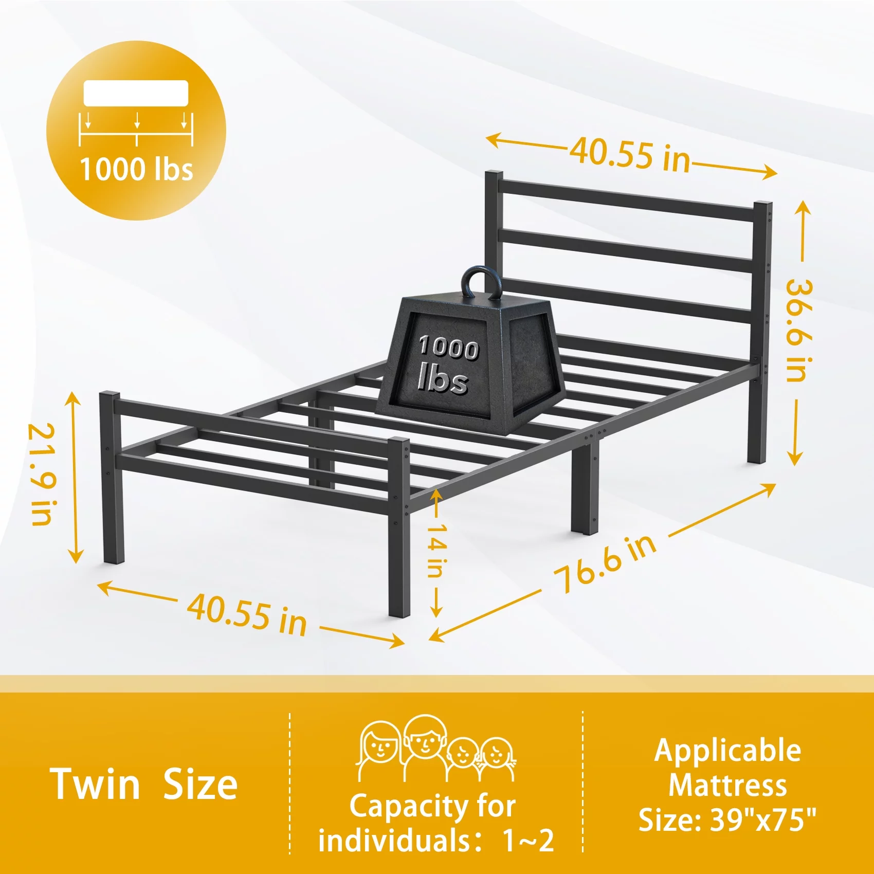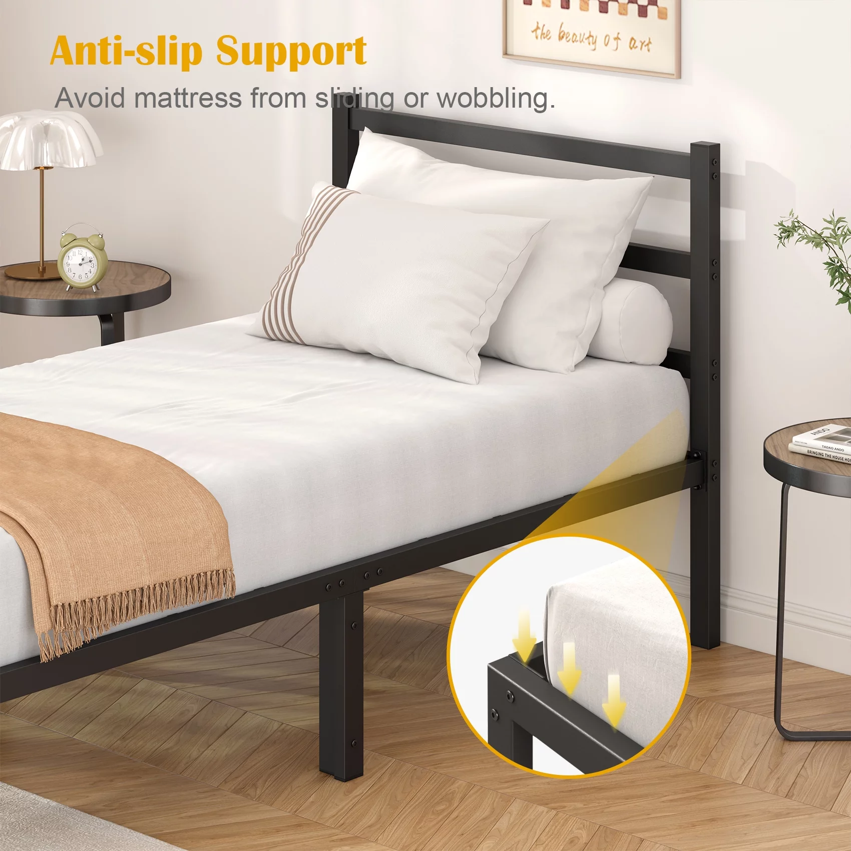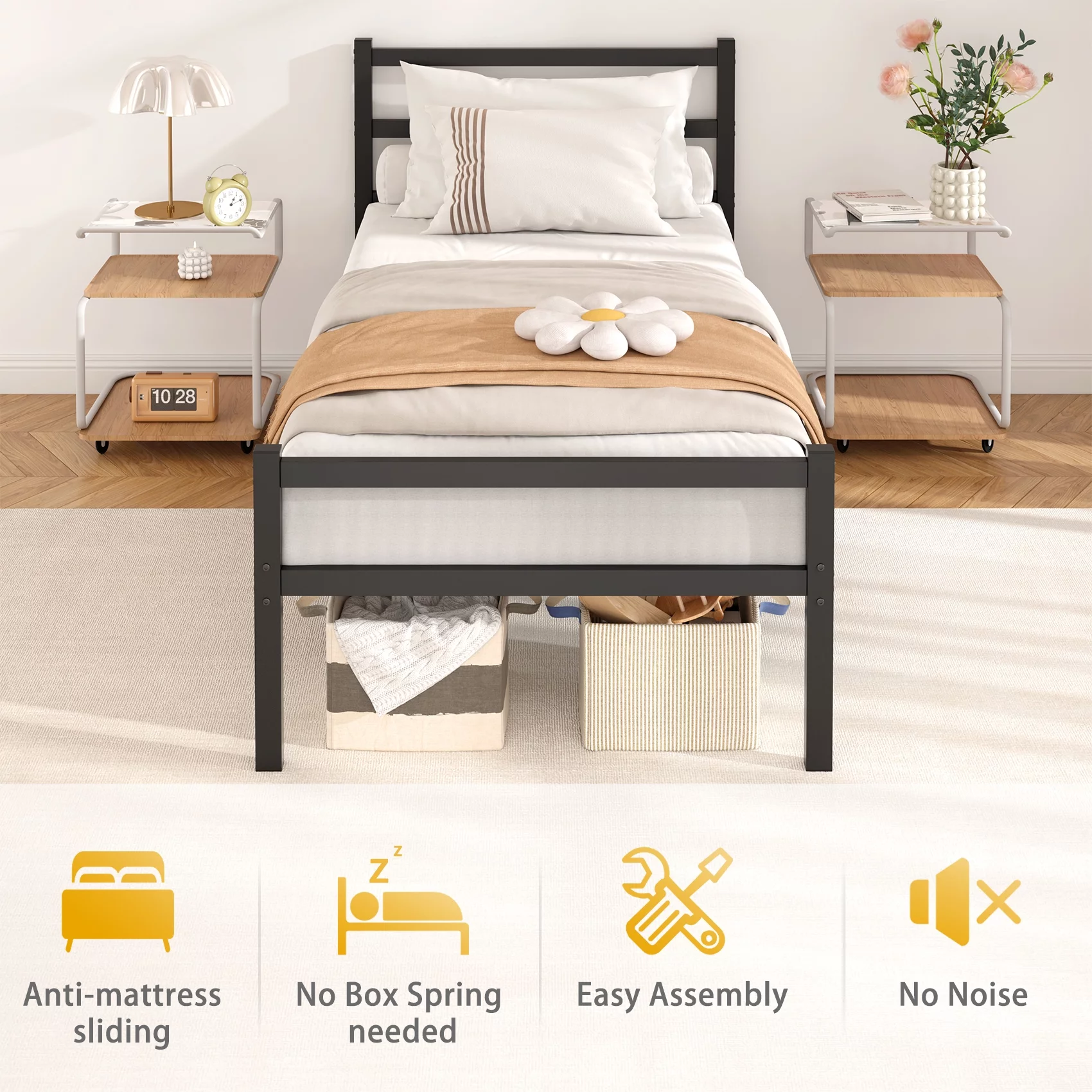 Alden Design Jasper Metal Platform Twin Bed Frame with Heavy Duty Steel Slat Support, Black