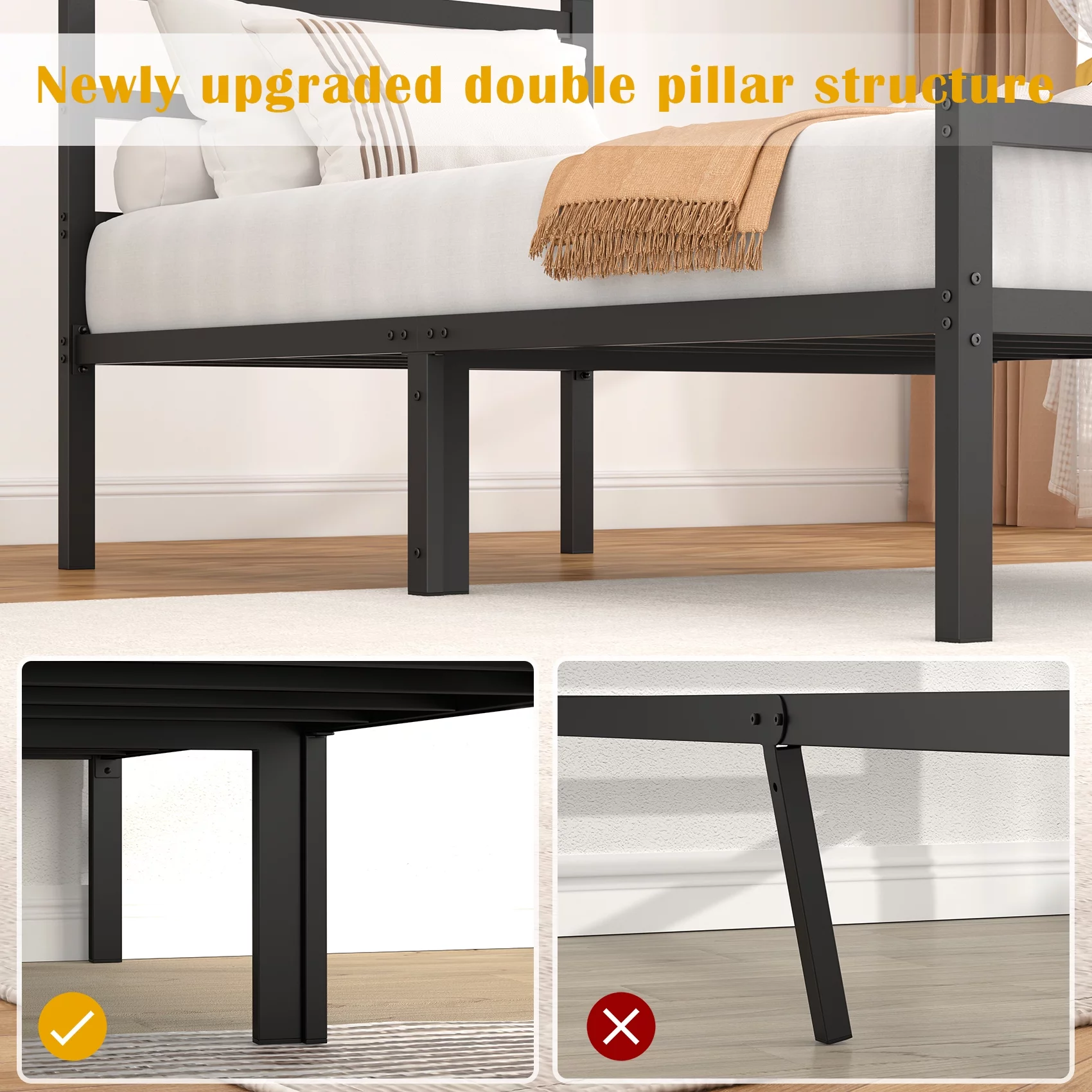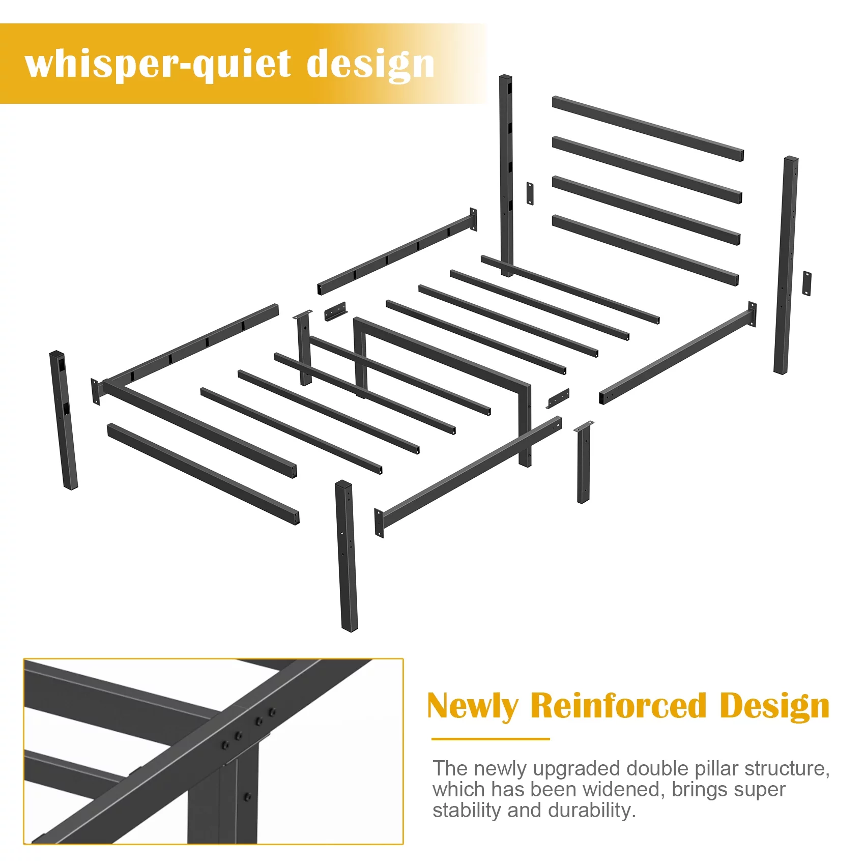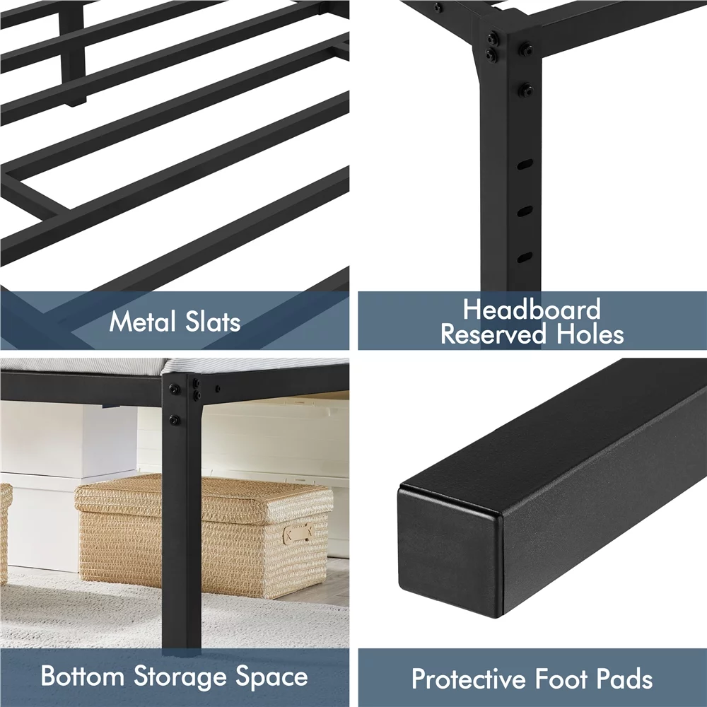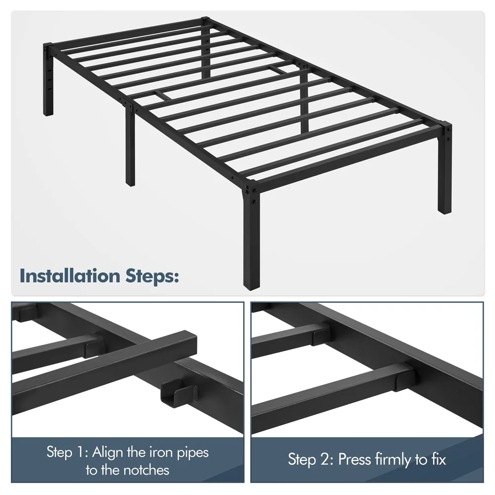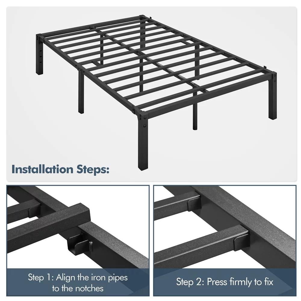 SmileMart Jaxon 16.5 Inch Metal Full Size Platform Bed Frame with Steel Slat Support, Black
