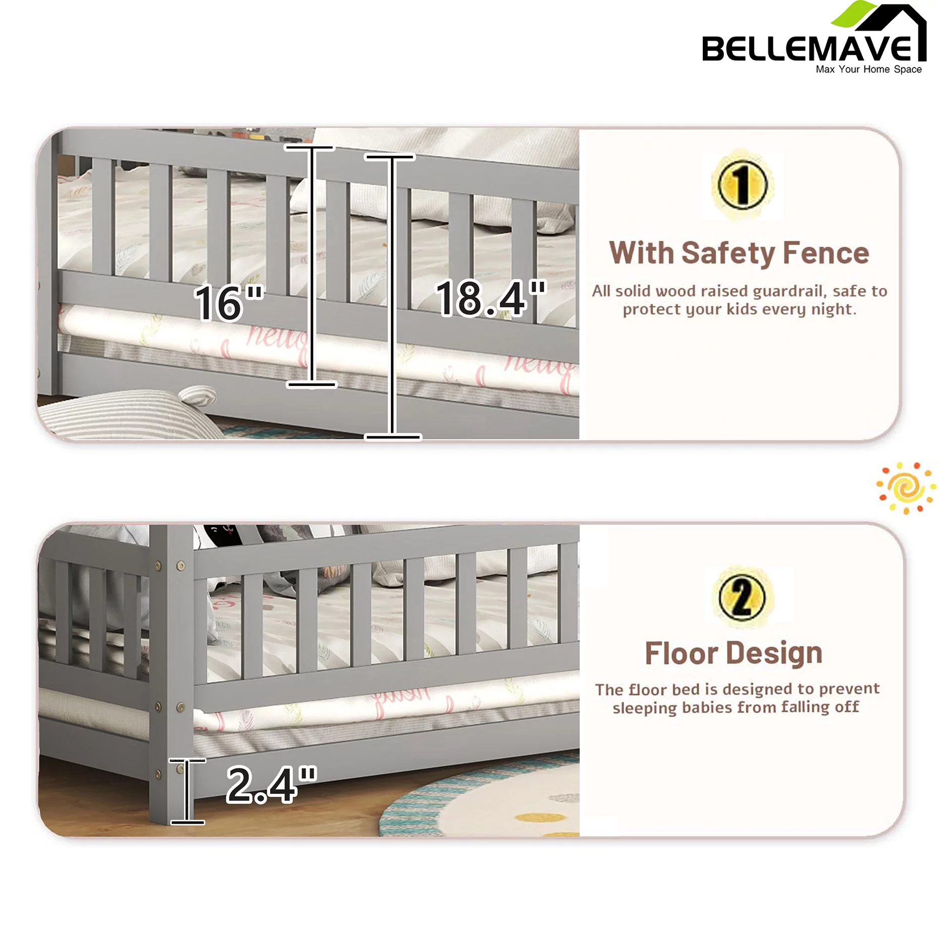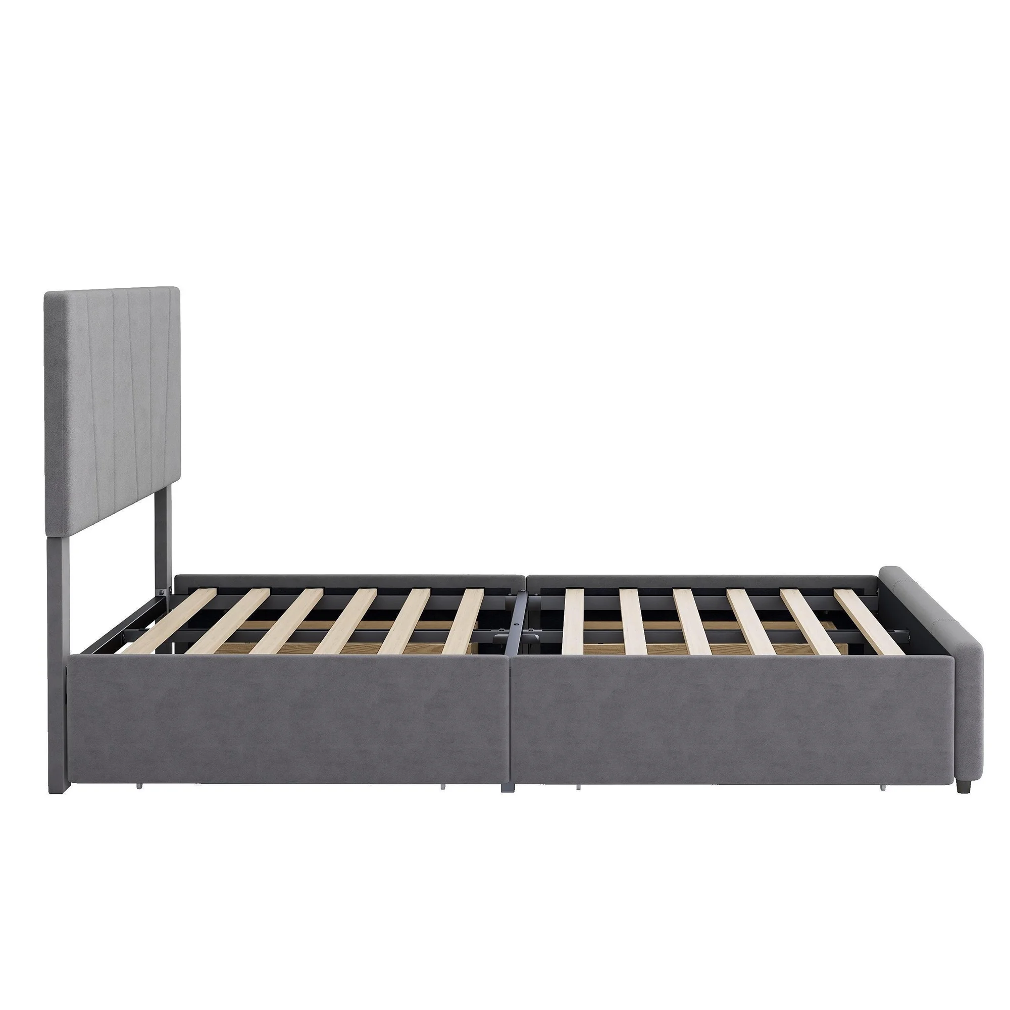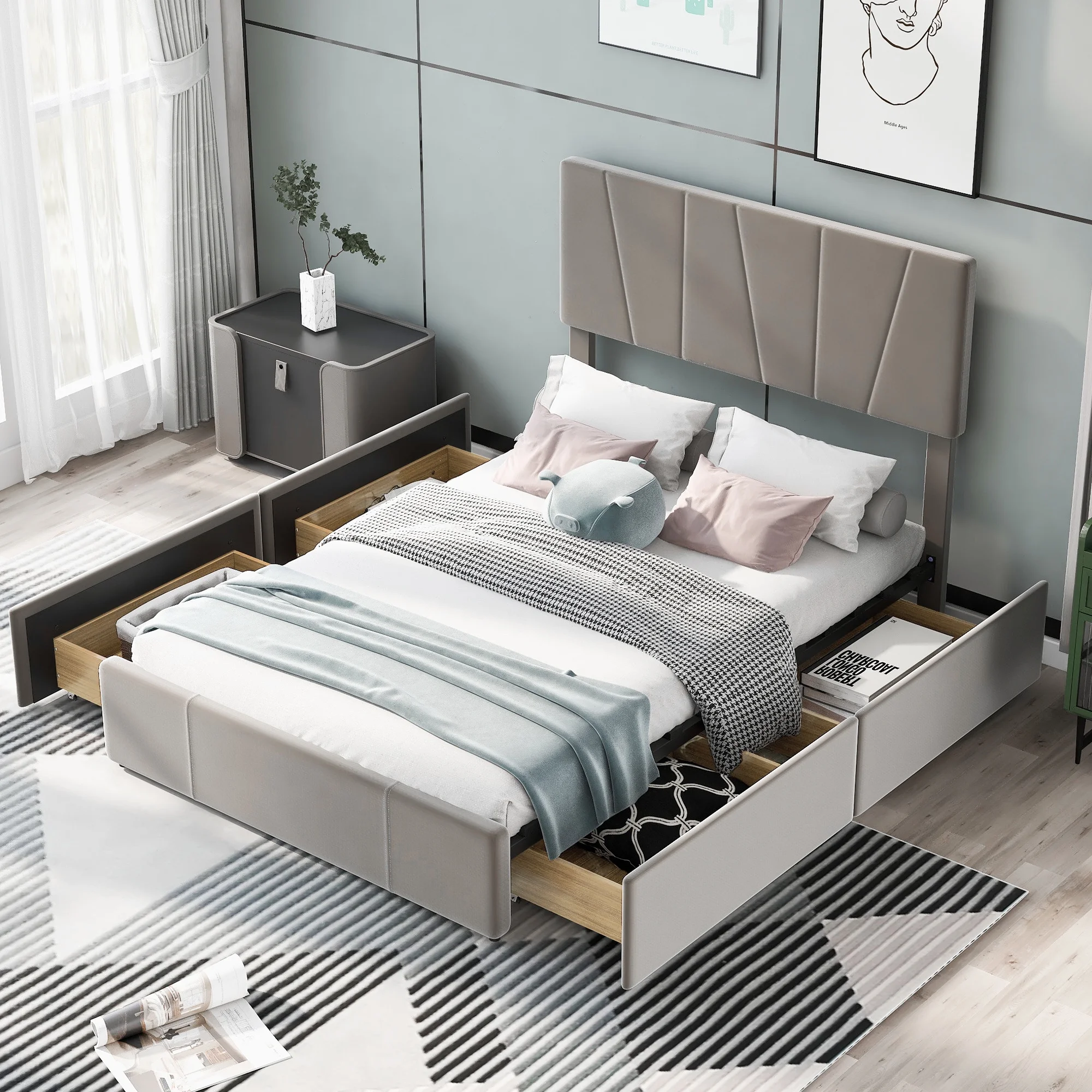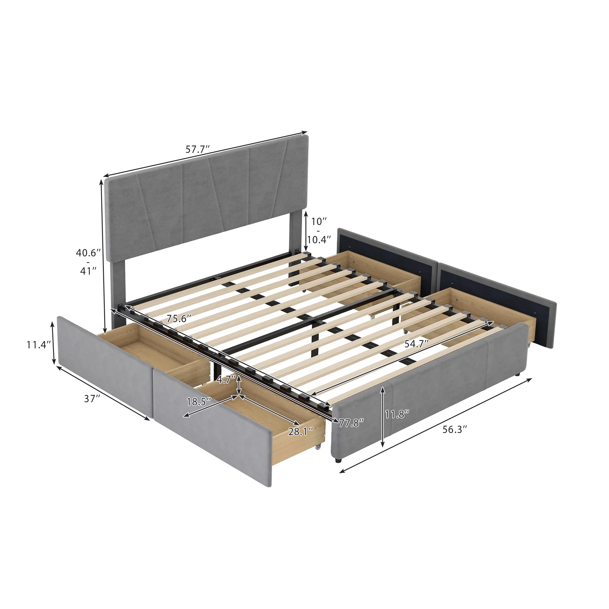 EUROCO Upholstery Full Size Platform Bed with 4 Drawers for Kids Room, Gray