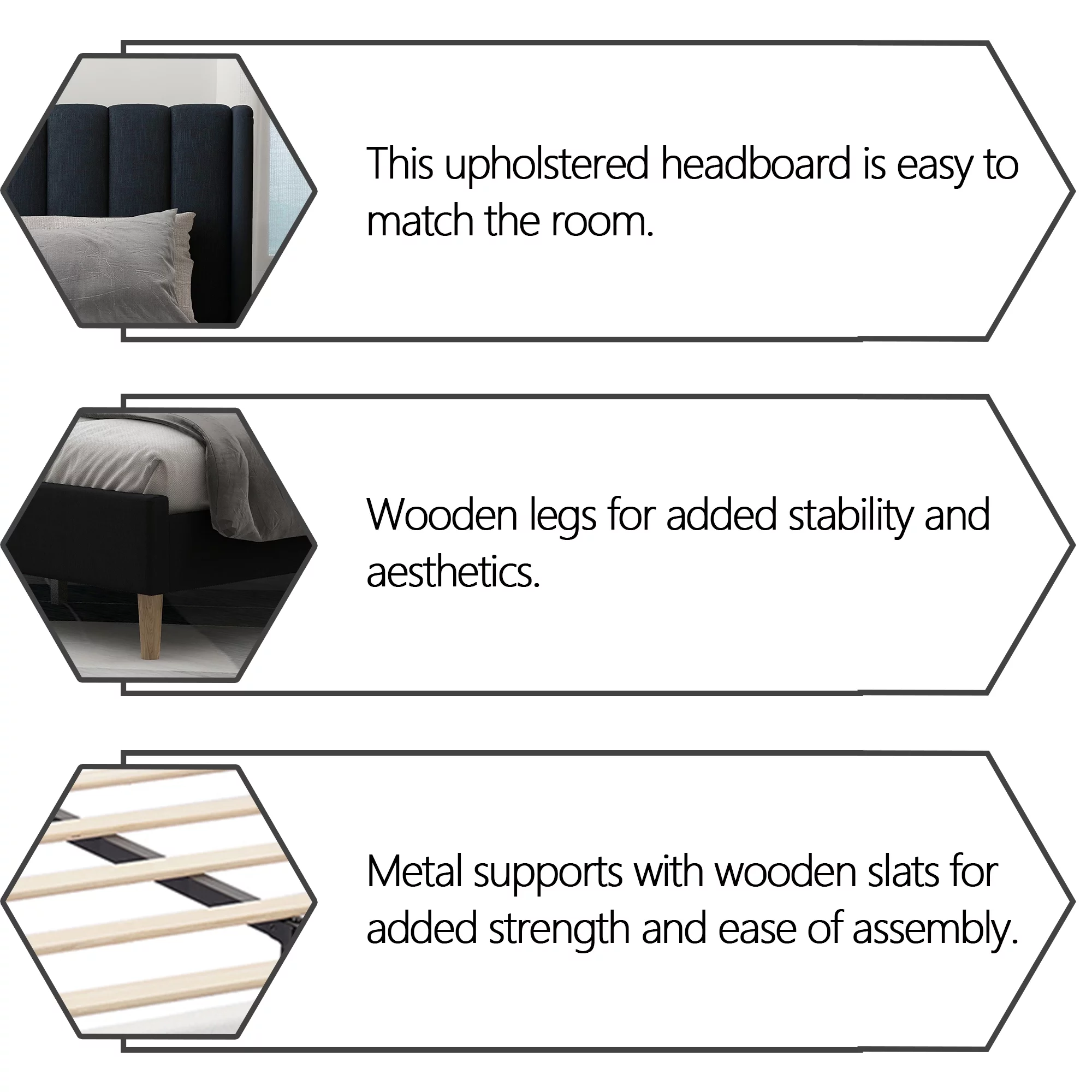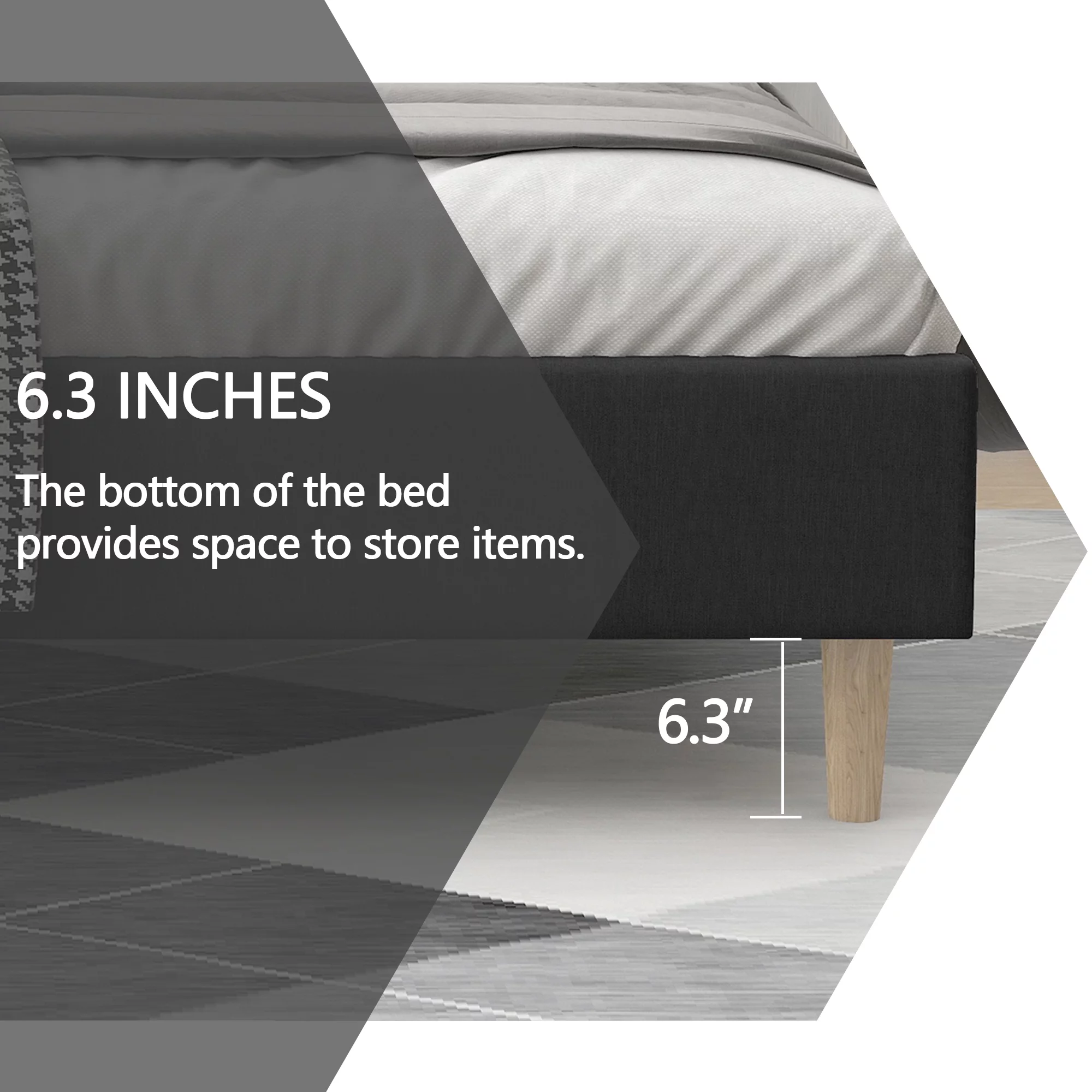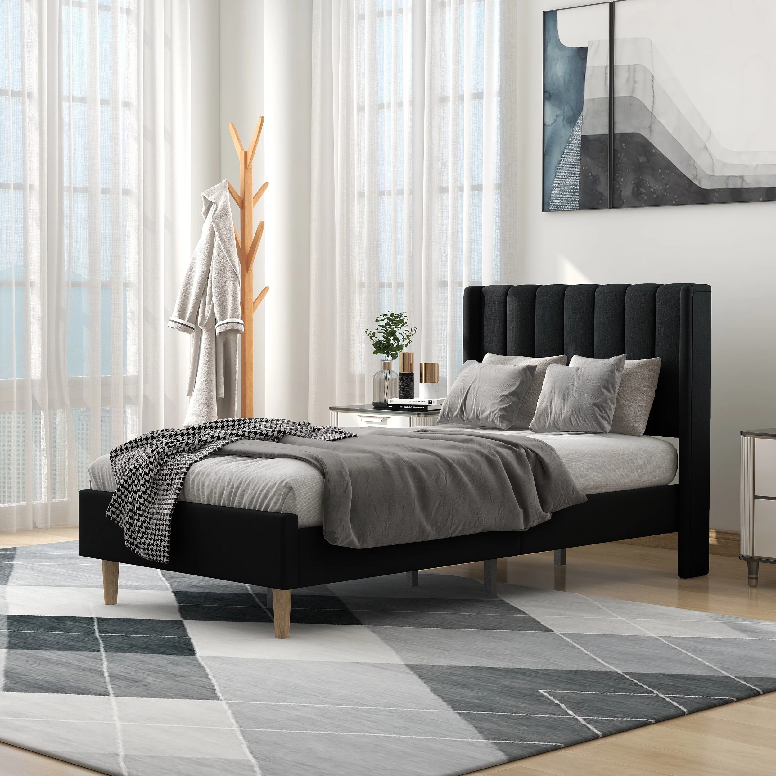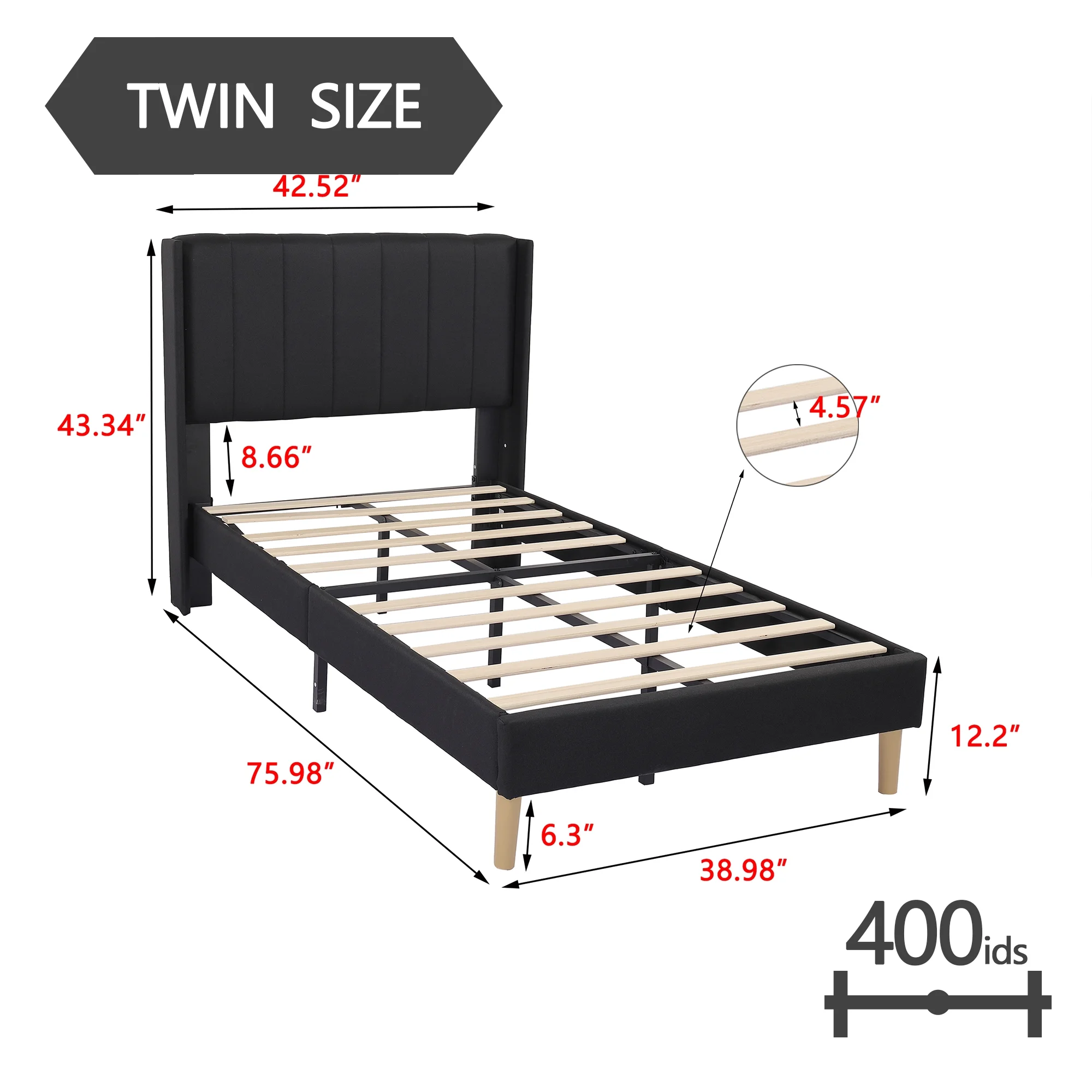 alazyhome Twin Size Upholstered Platform Bed Frame, Easy Assemble, Black