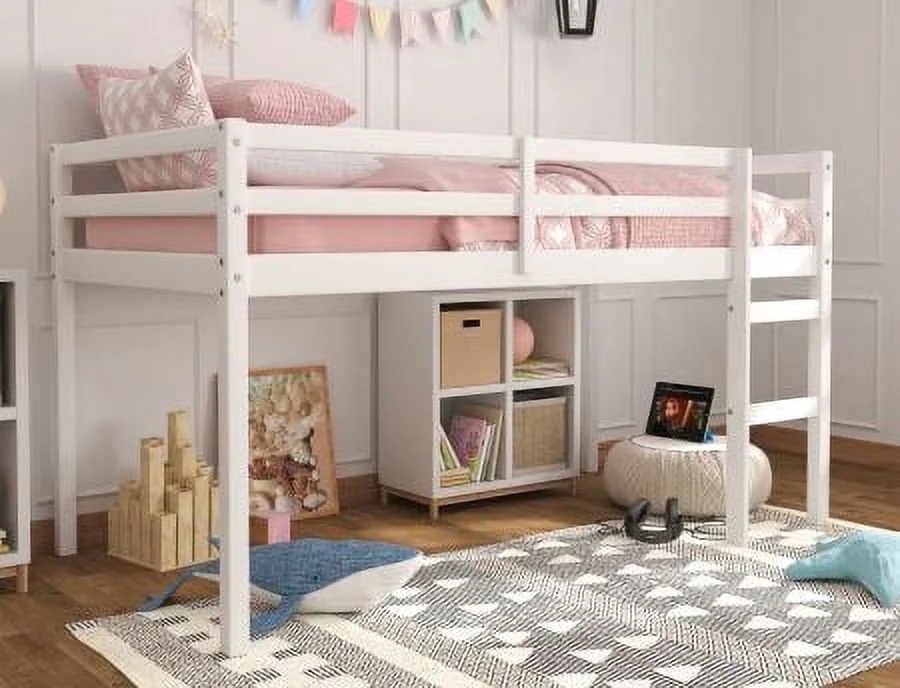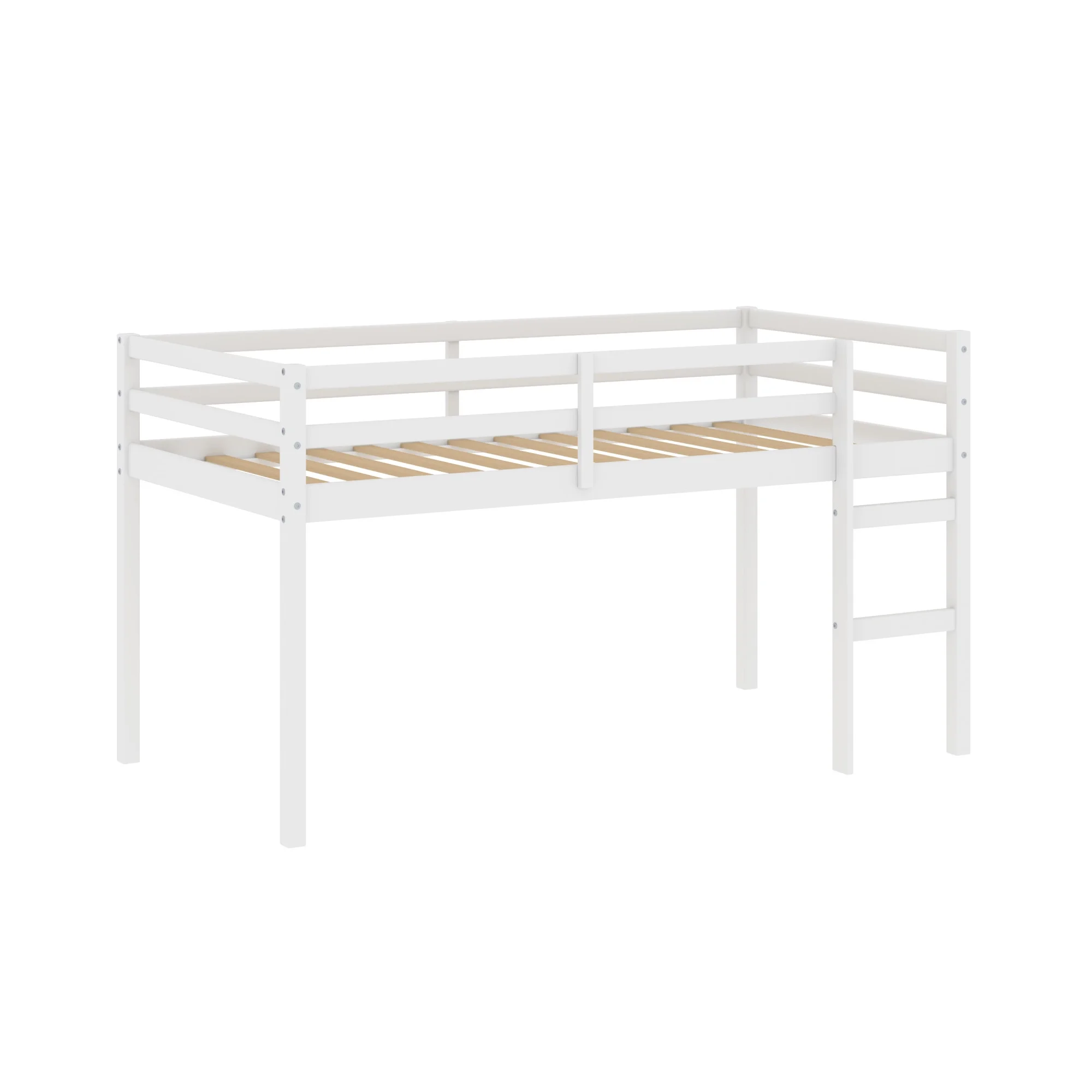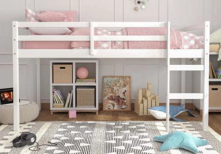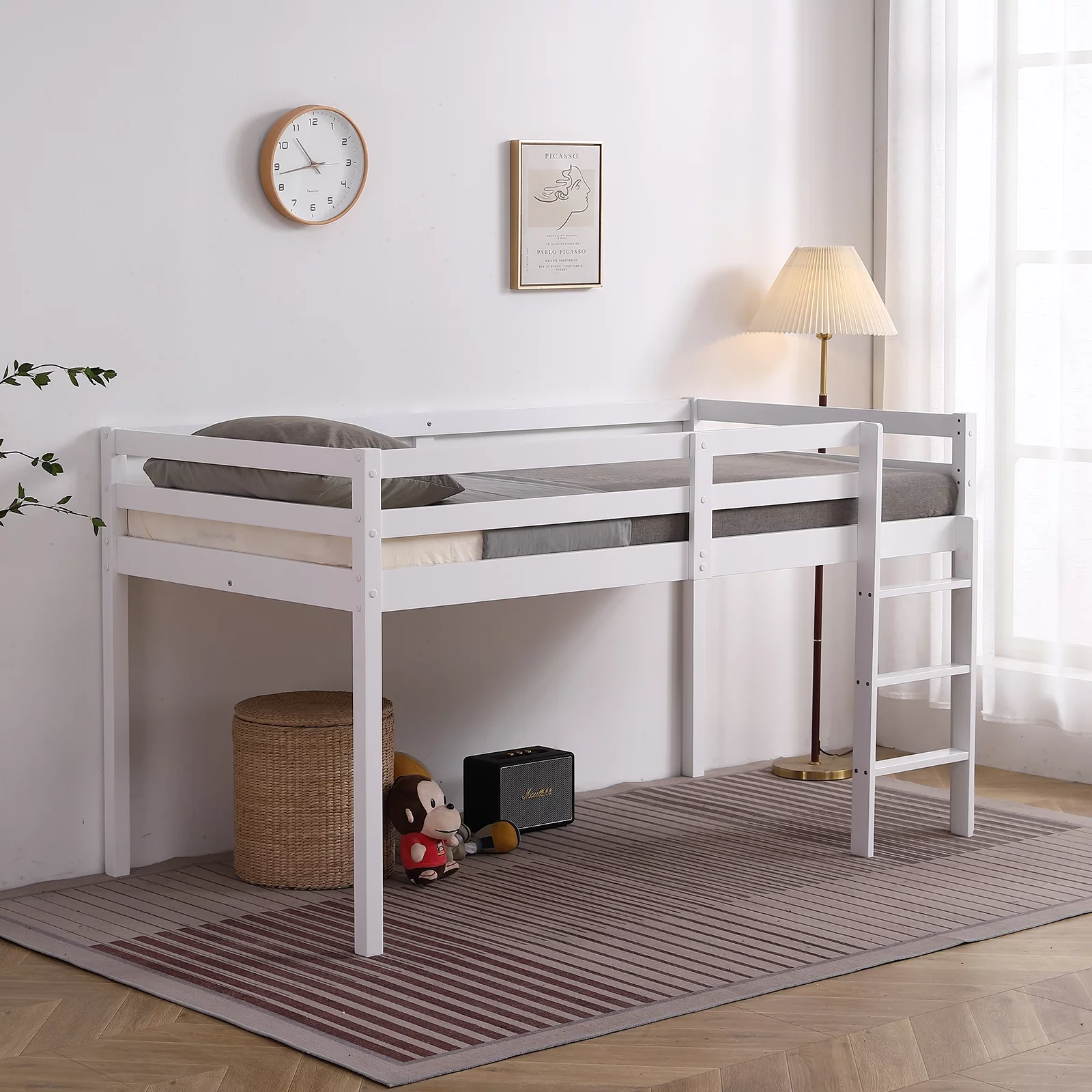 UBesGoo Twin Wood Loft Bed Low Loft Beds for Kids with Ladder,Twin,White