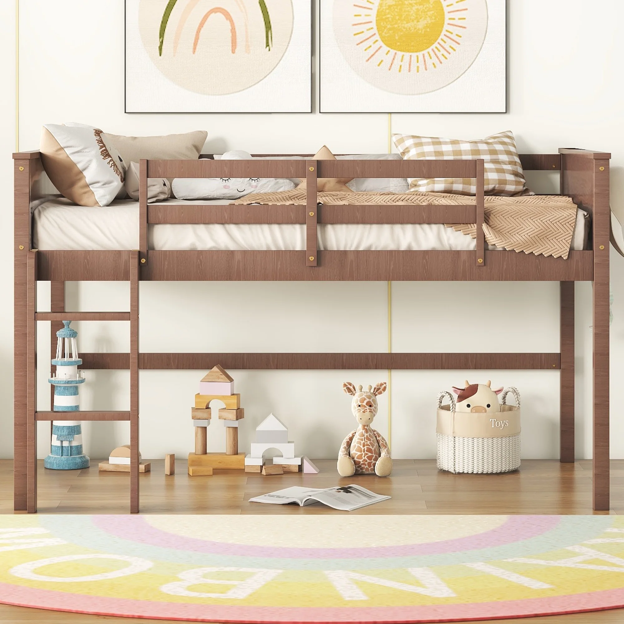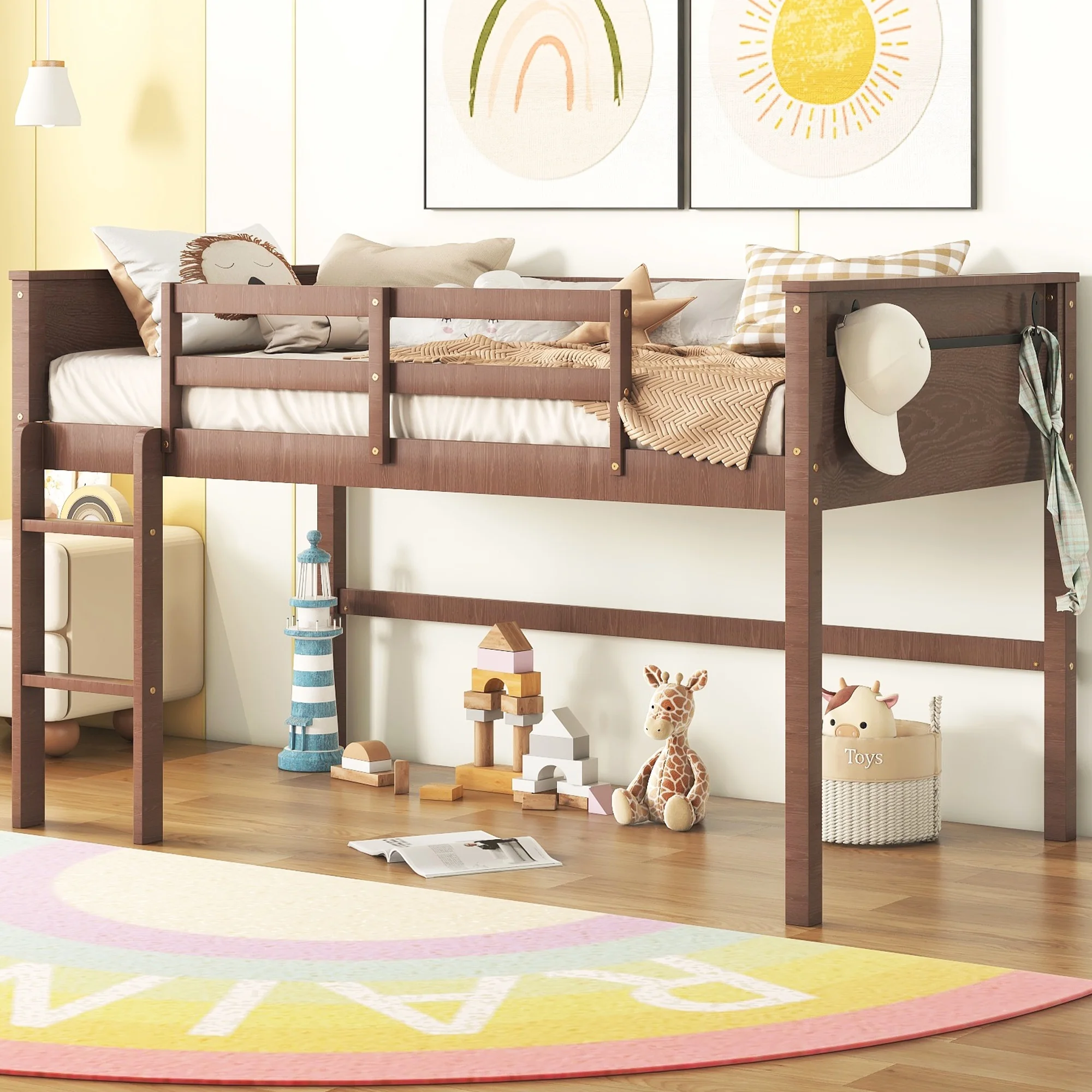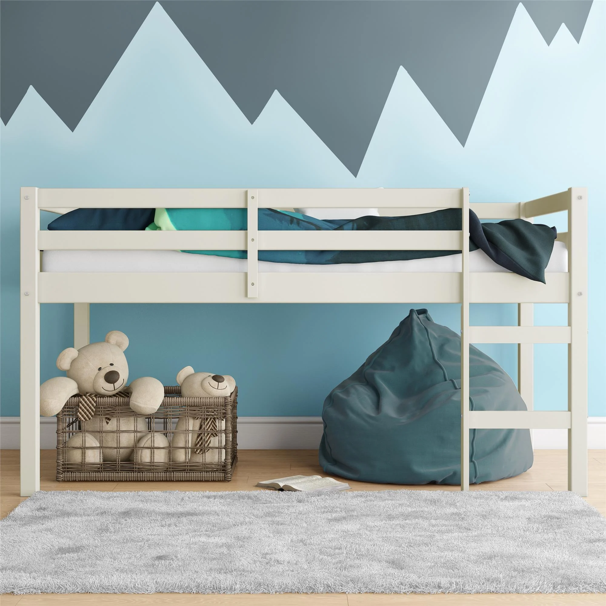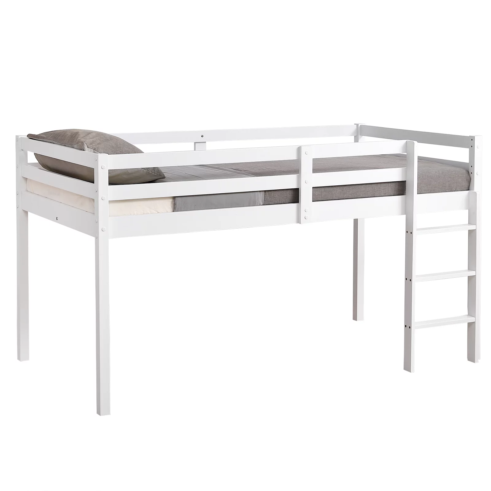 UBesGoo Twin Wood Loft Bed Low Loft Beds for Kids with Ladder,Twin,White