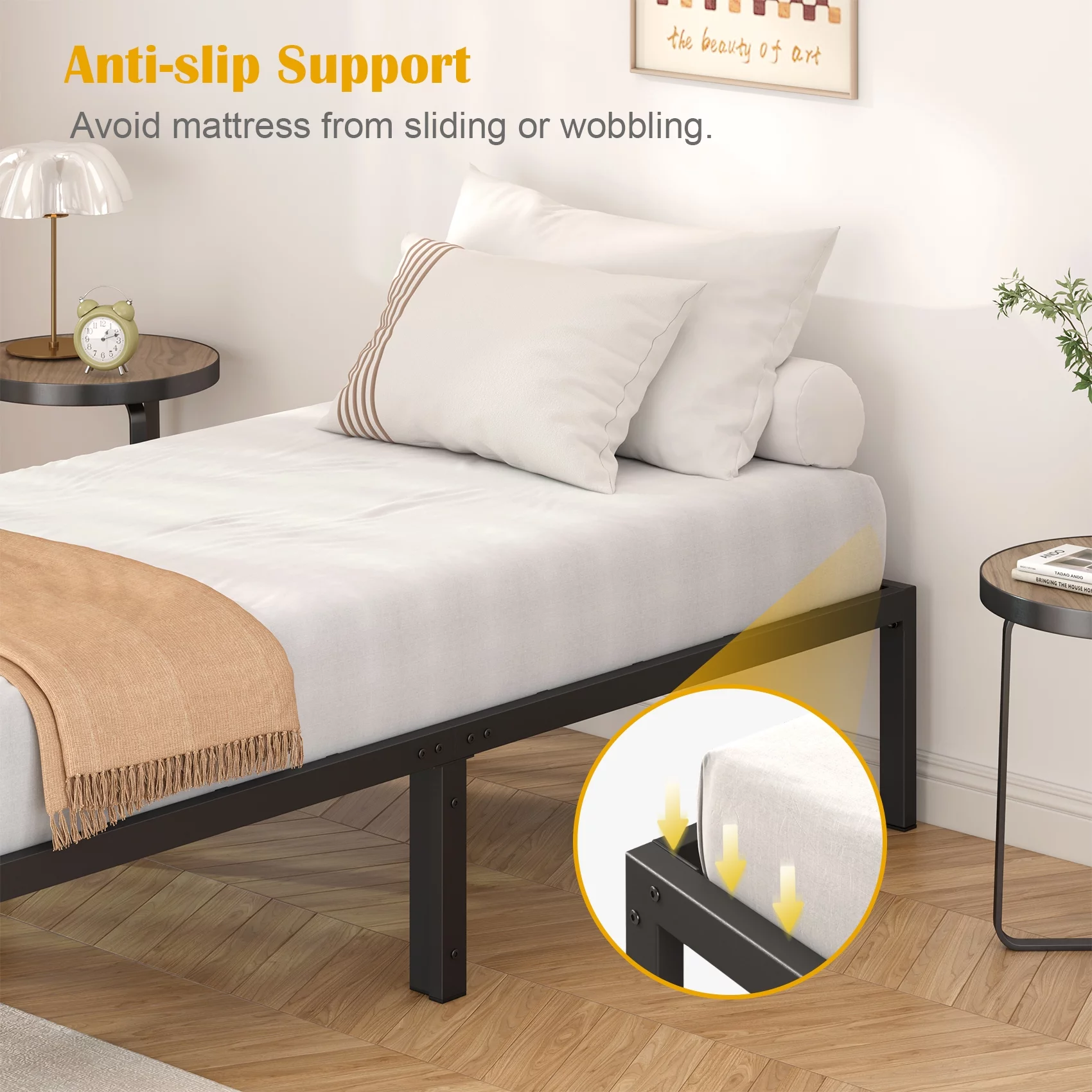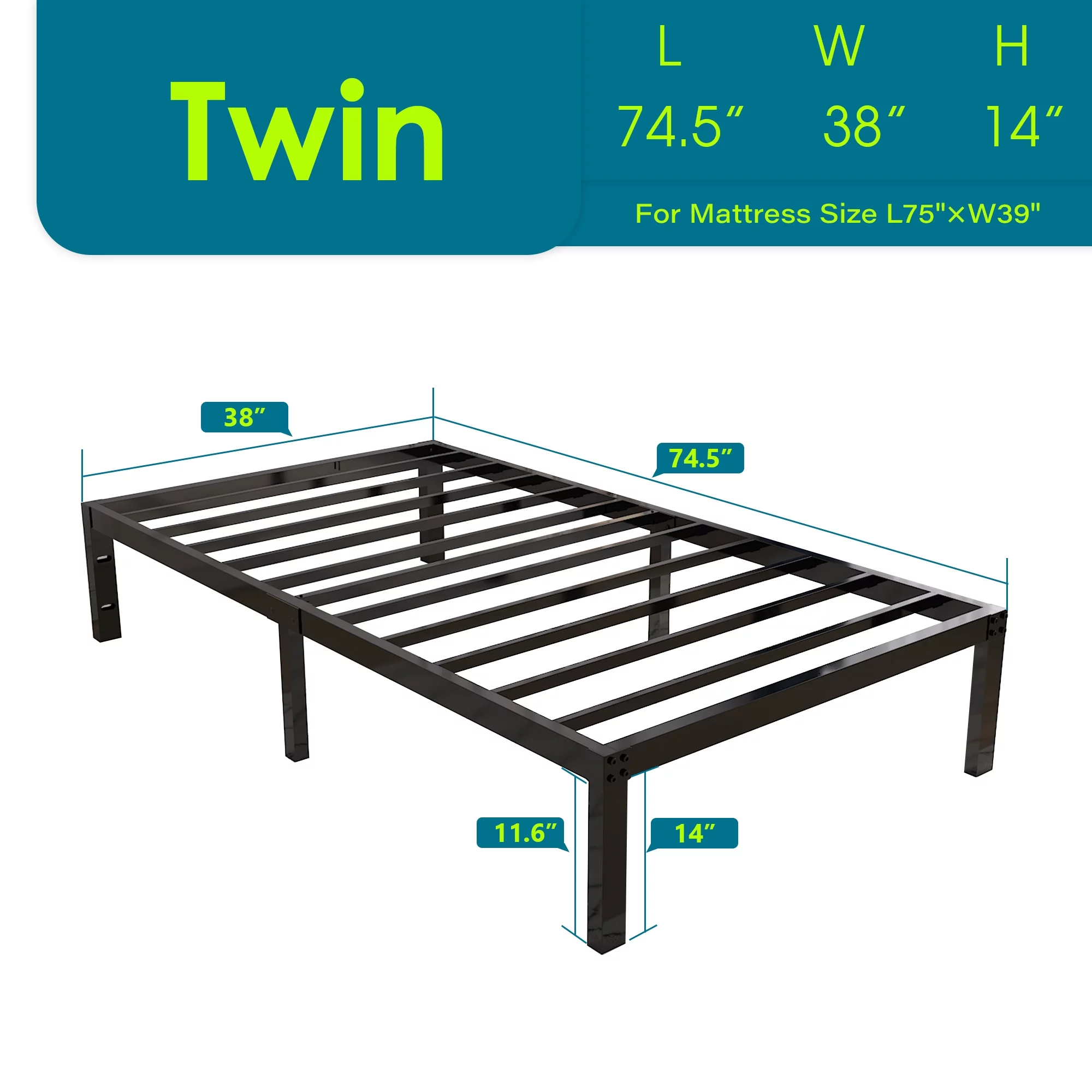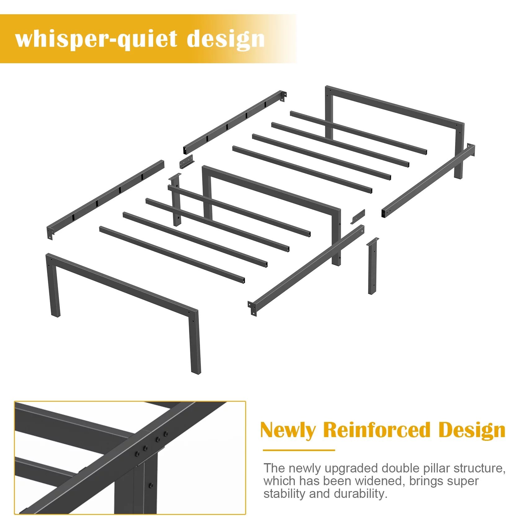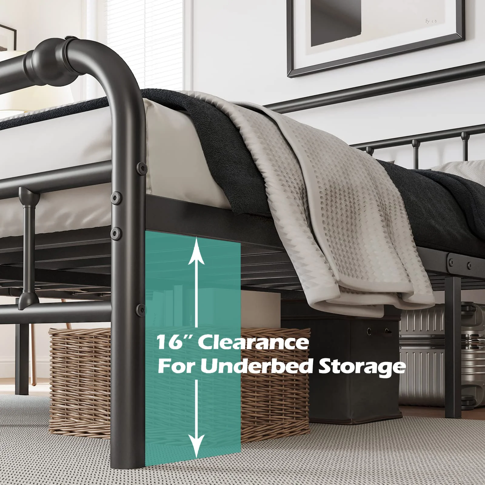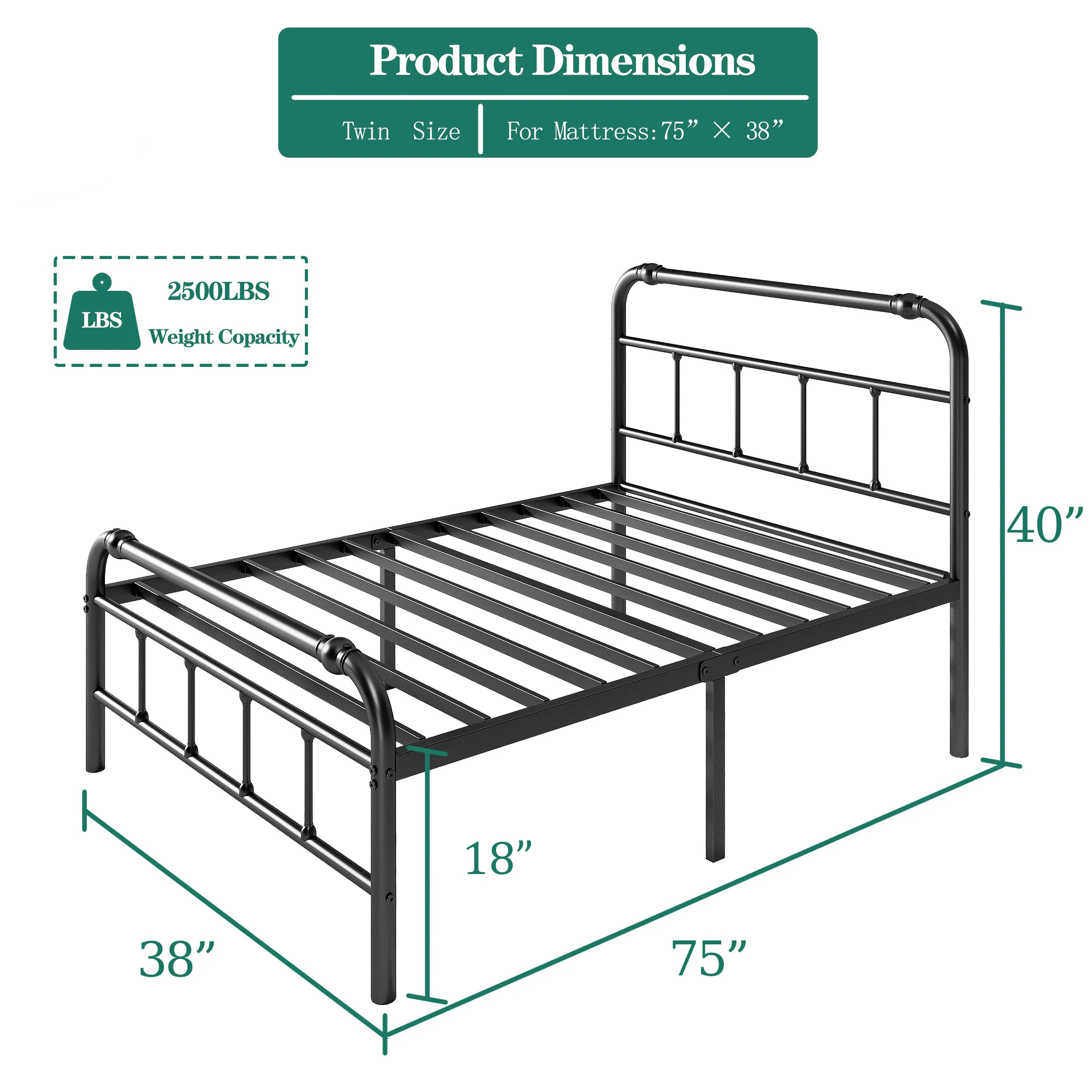 HAAGEEP Twin Platform Bed Frame 18" Tall, No Box Spring Needed with Storage, Black Metal