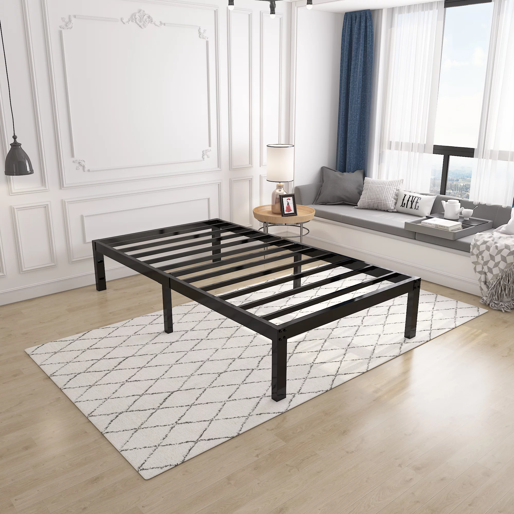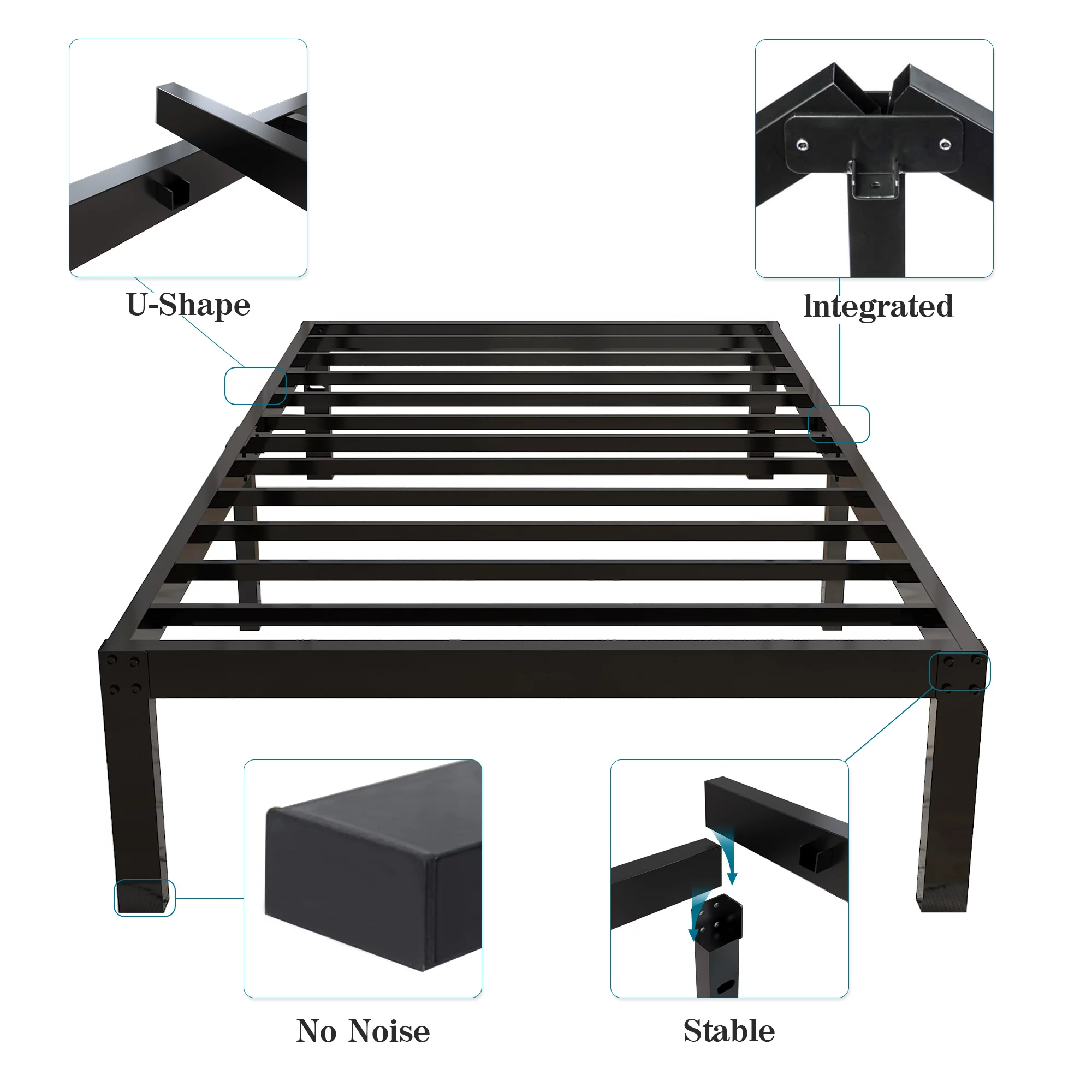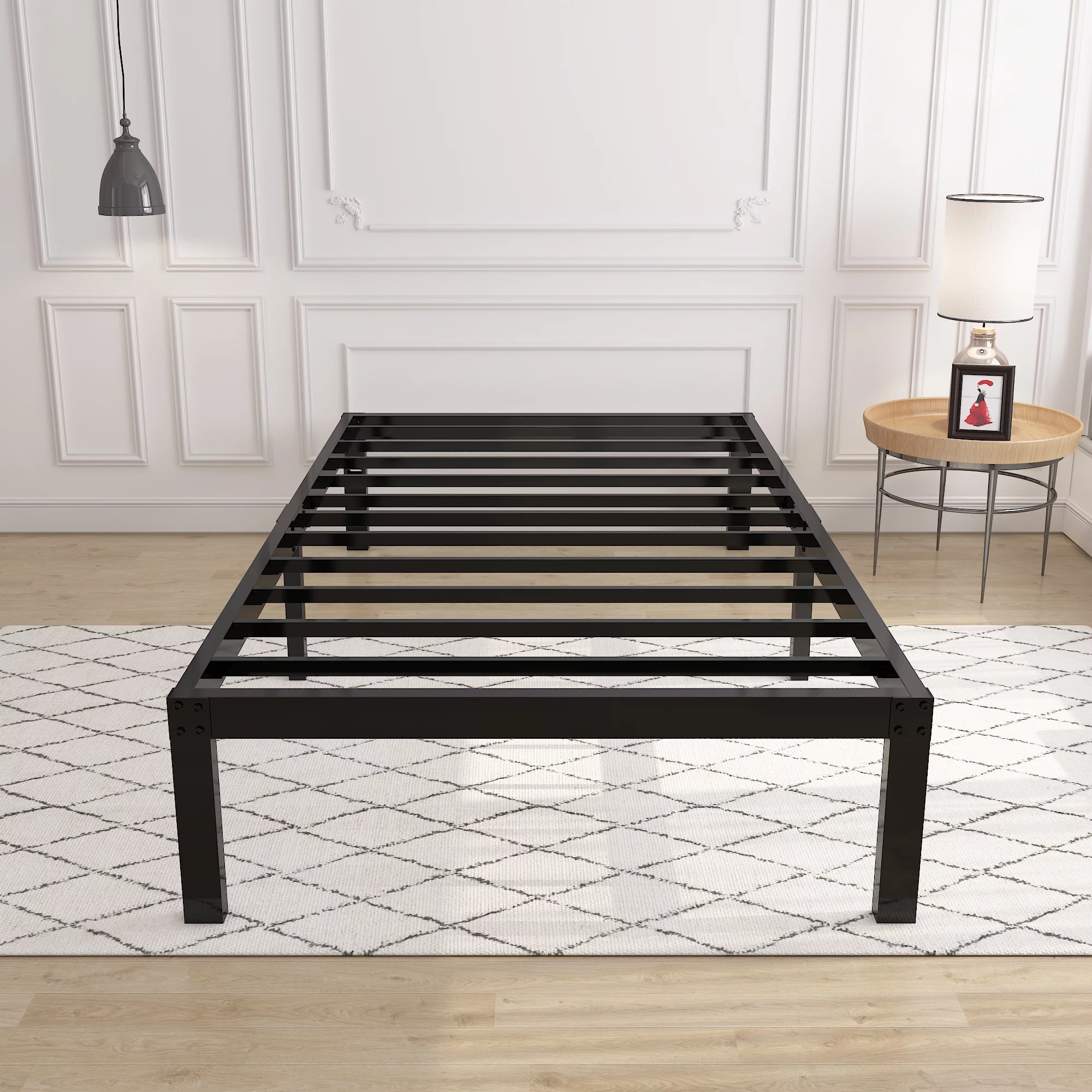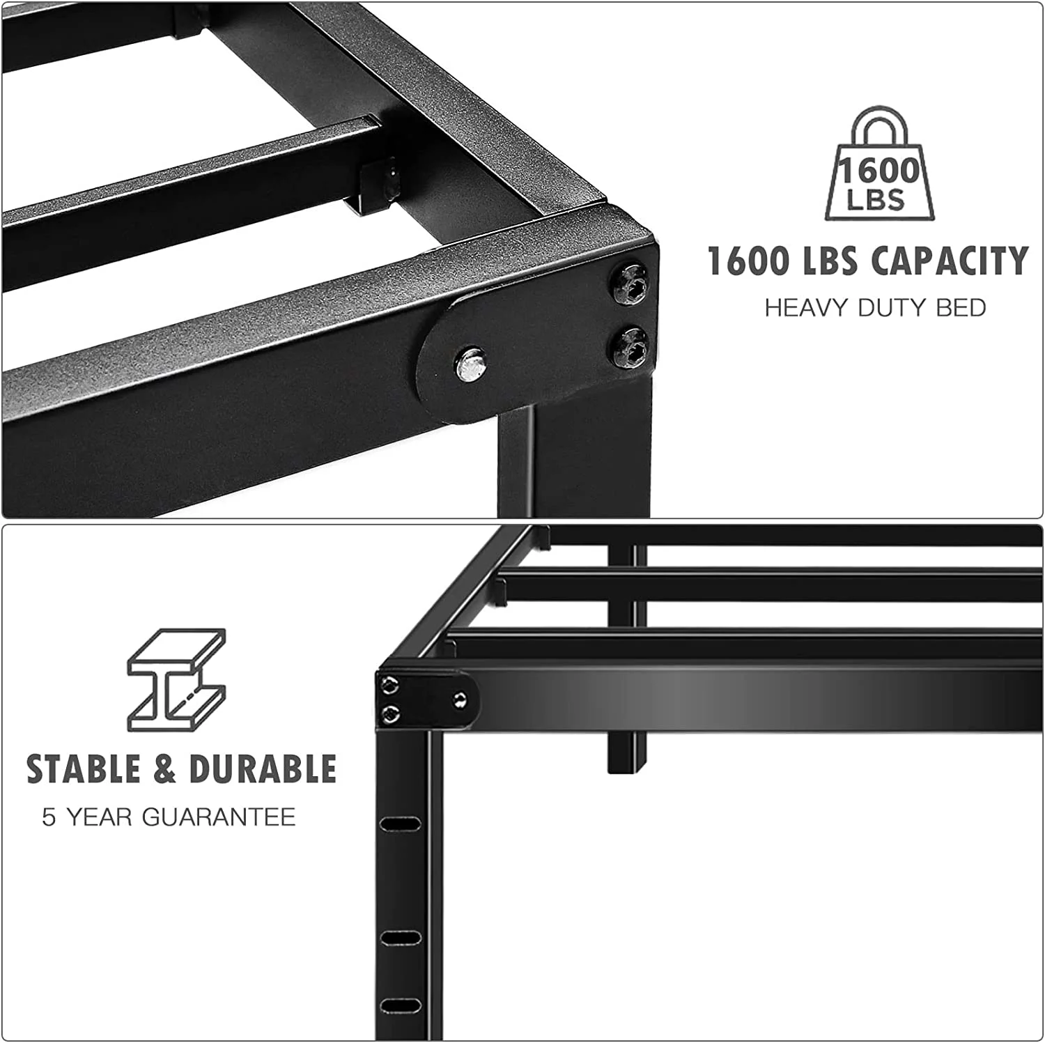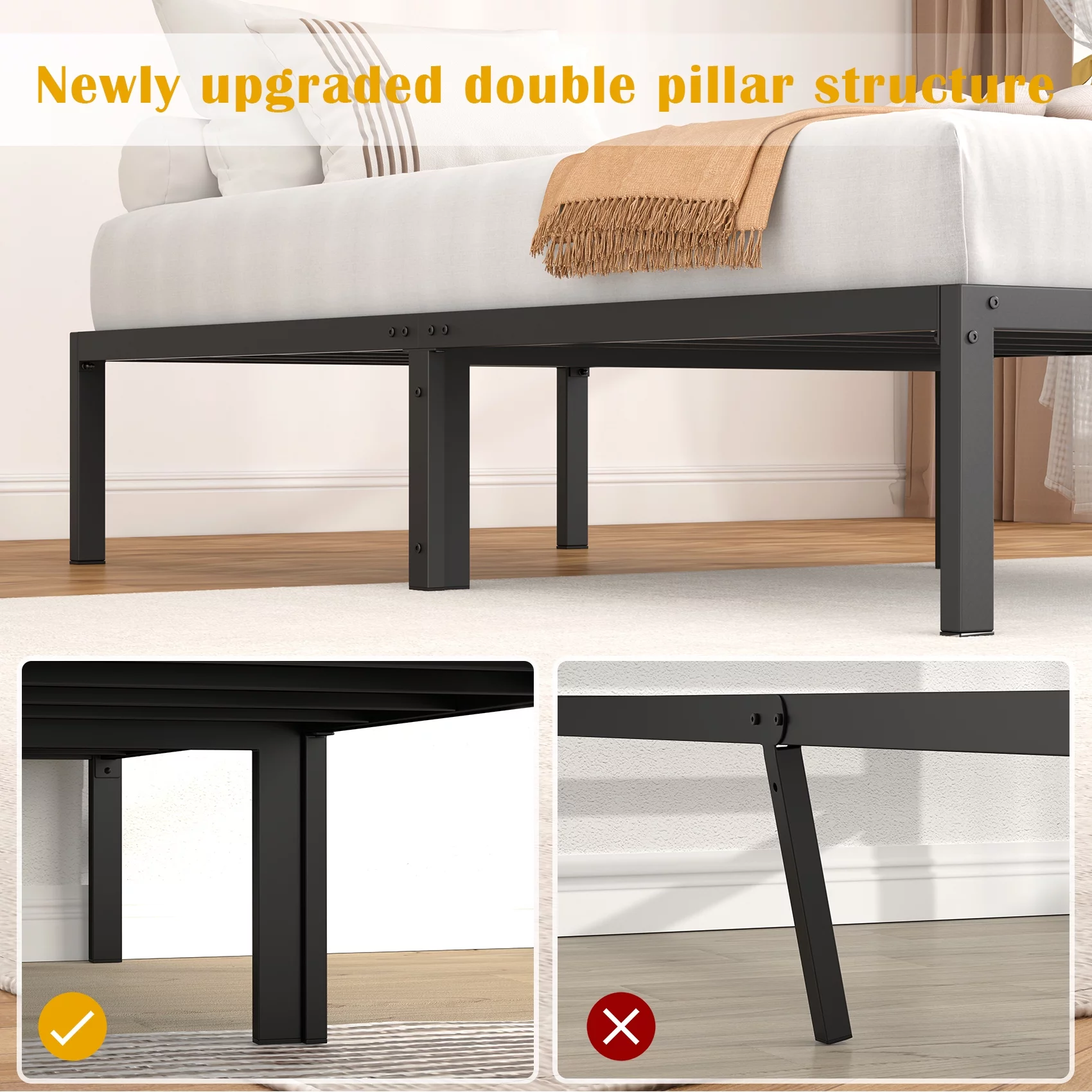 HAAGEEP Twin Platform Bed Frame 18" Tall, No Box Spring Needed with Storage, Black Metal