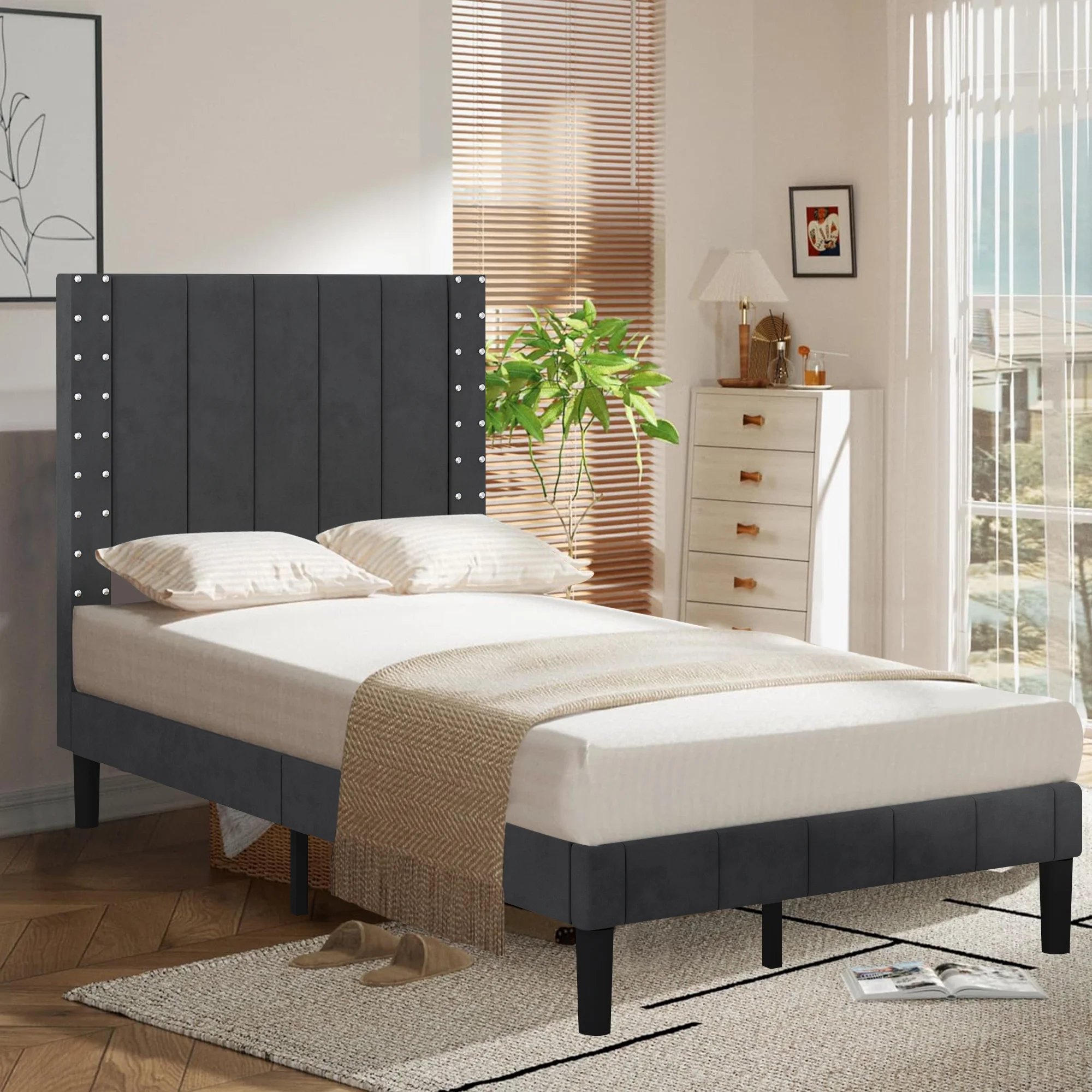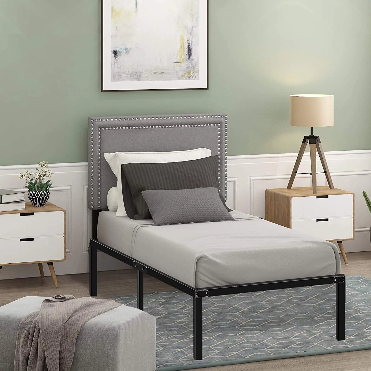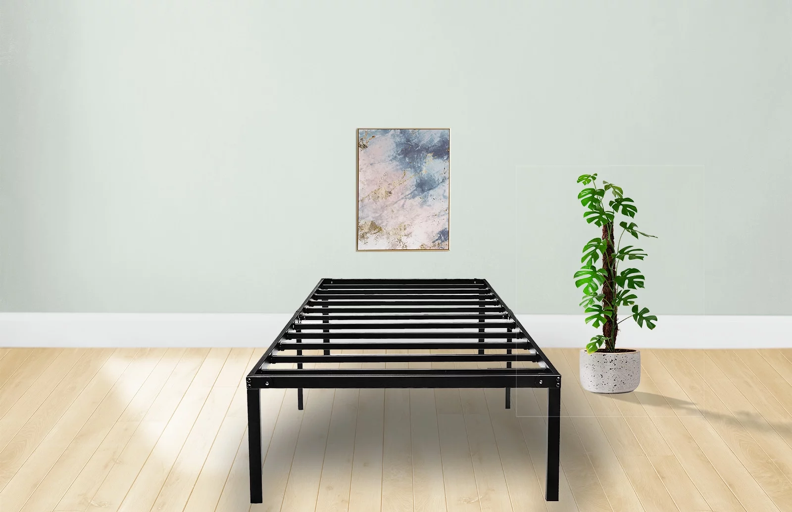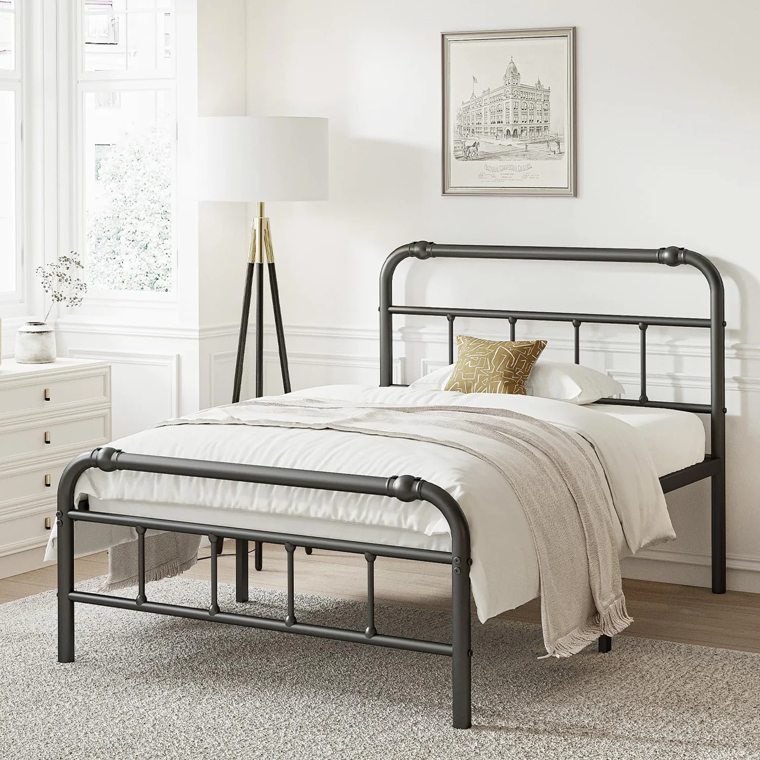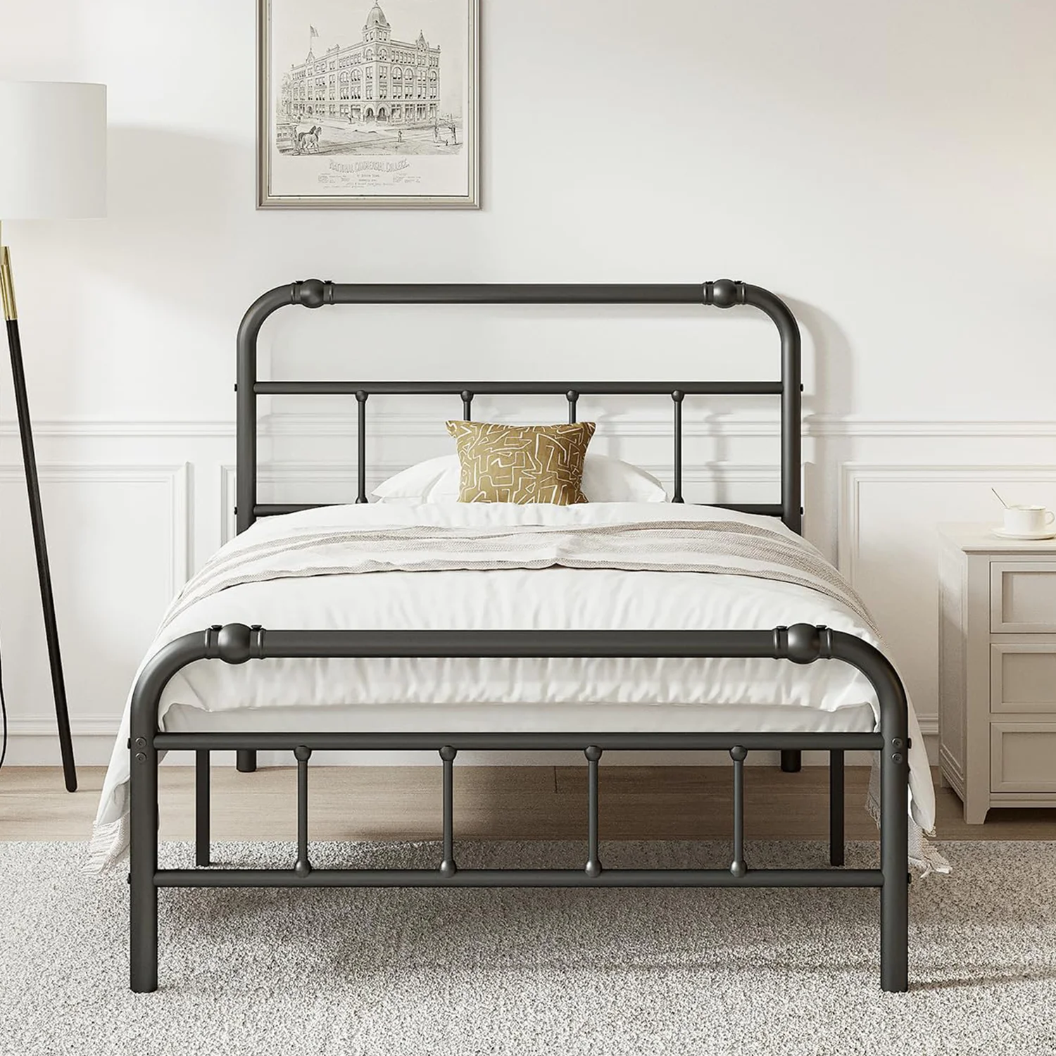 HAAGEEP Twin Platform Bed Frame 18" Tall, No Box Spring Needed with Storage, Black Metal