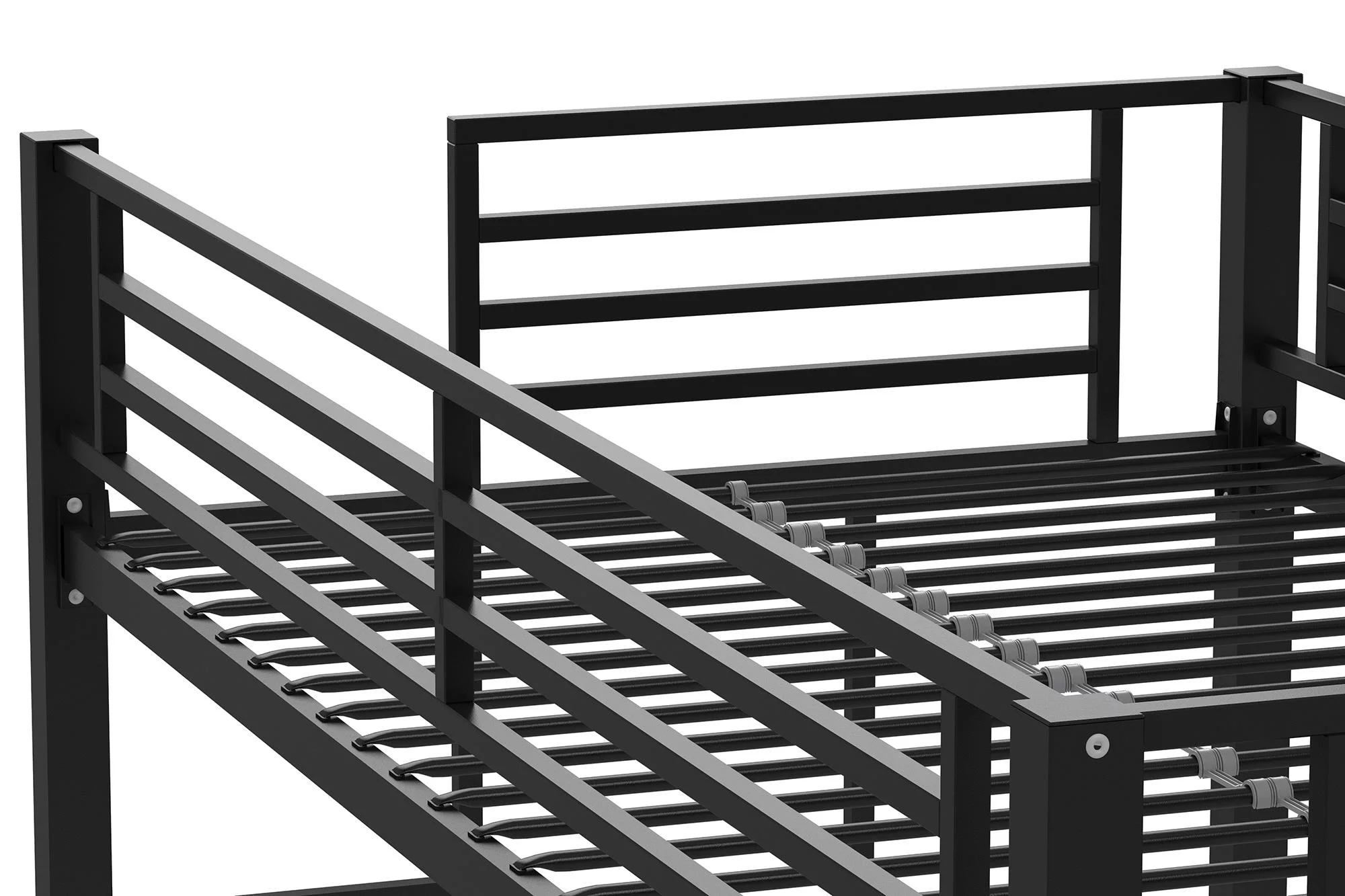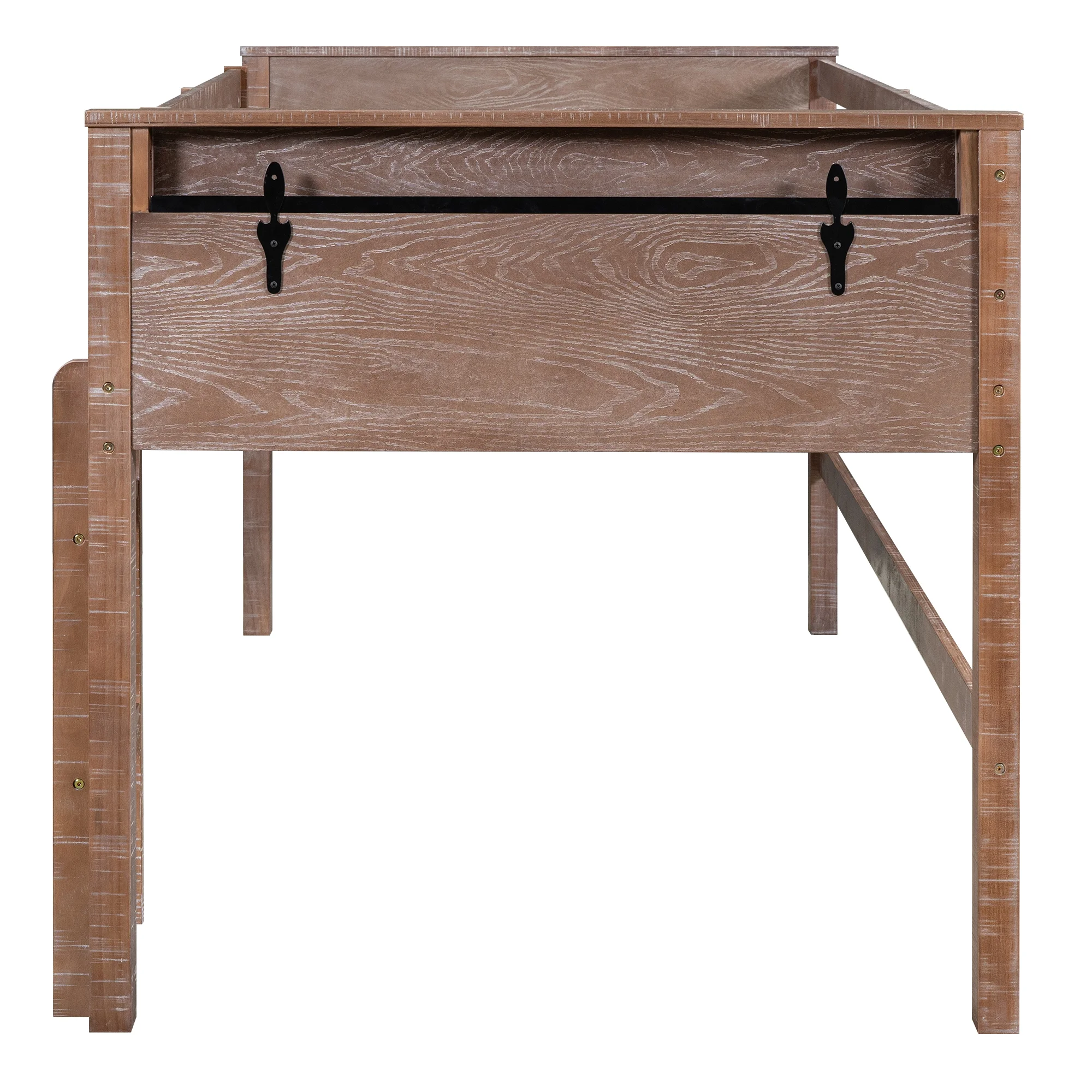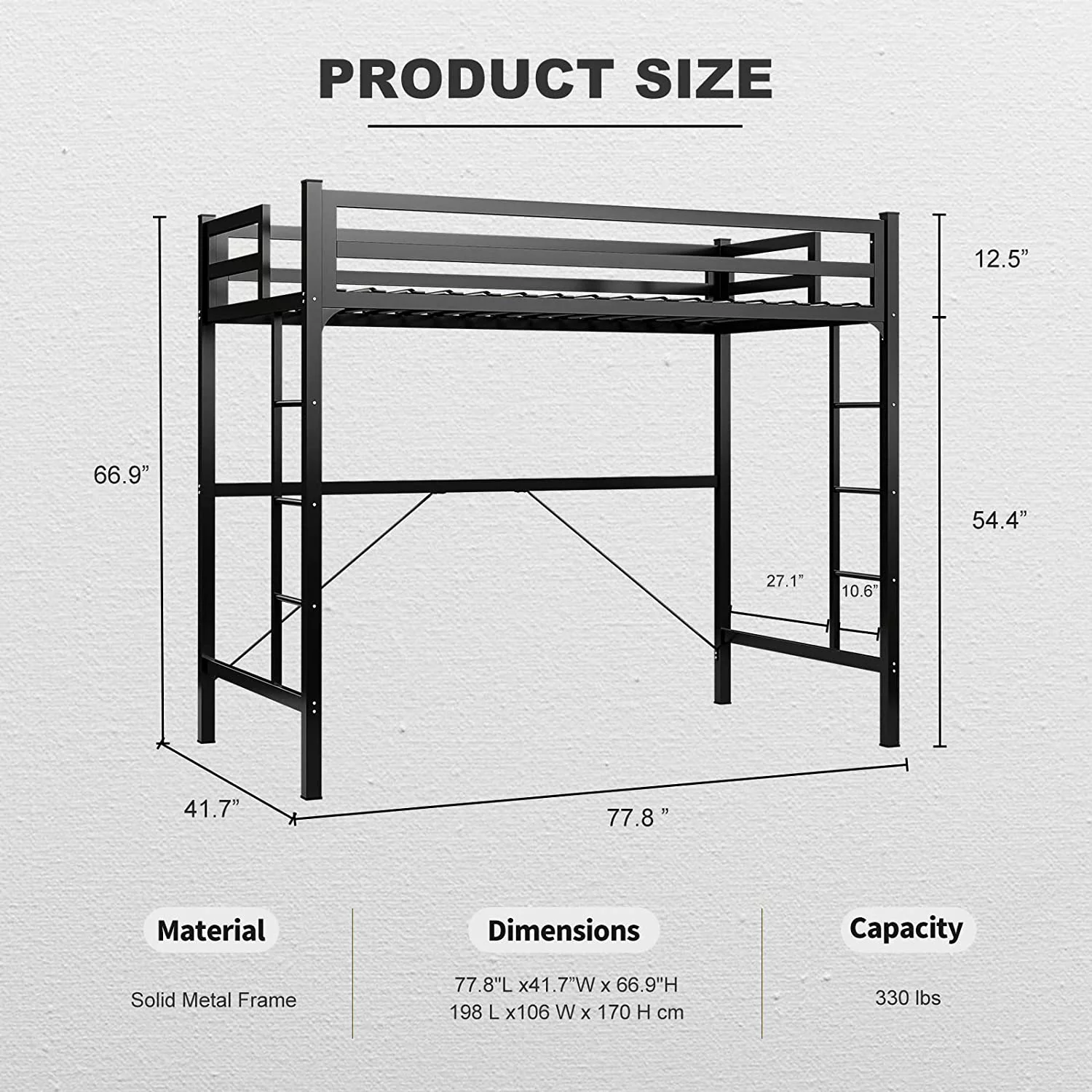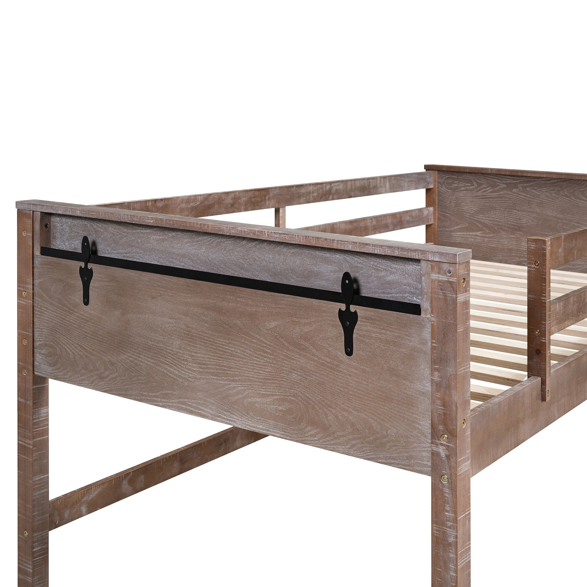 Amolife Metal Twin Size Loft Bed Frame with Stairs & Full-Length Guardrail, Rustic Wood, Black Frame (Desk not included)