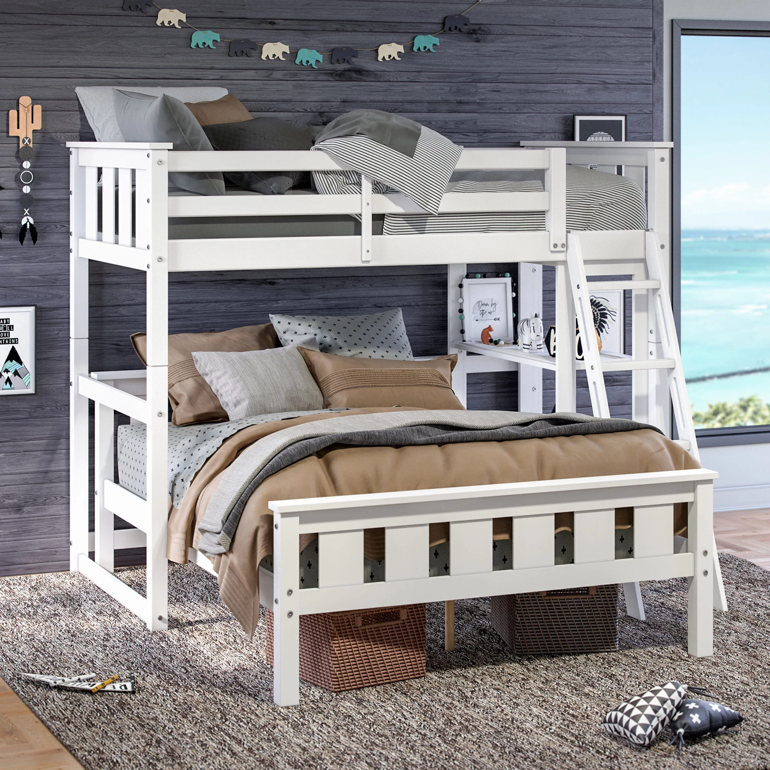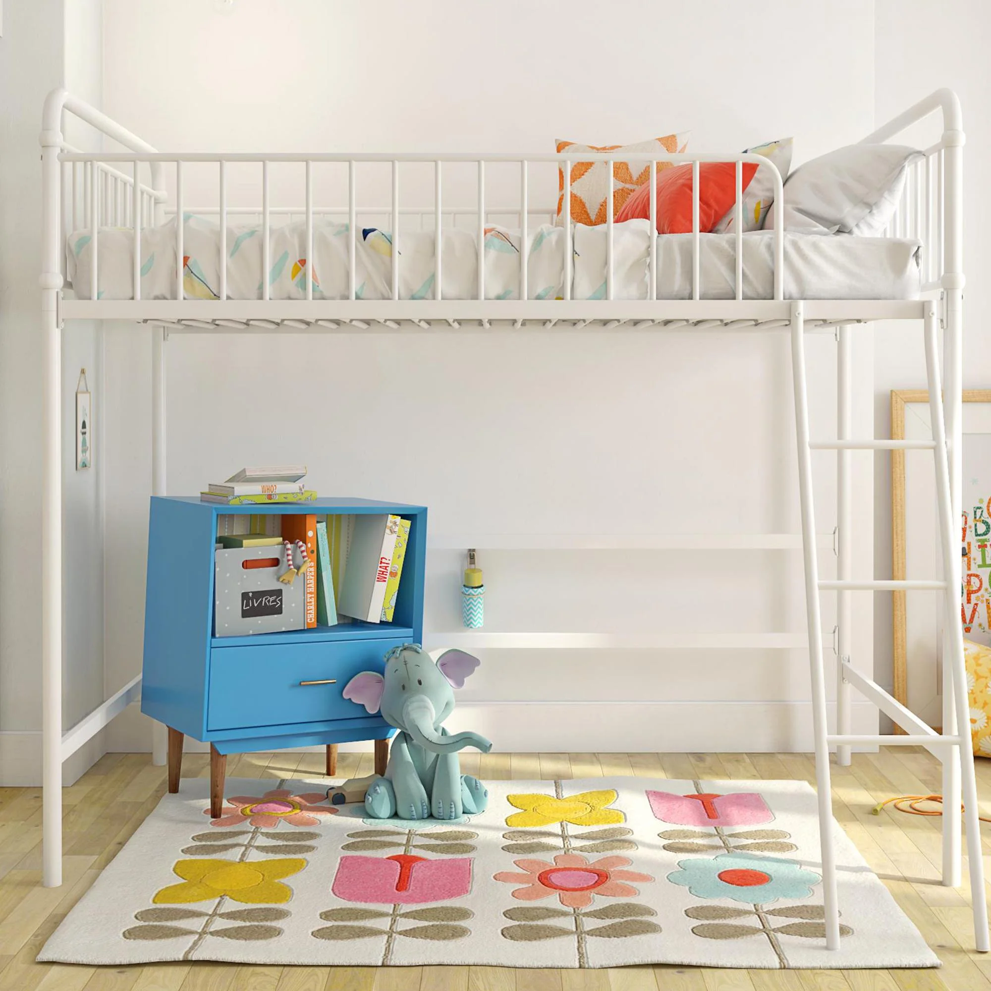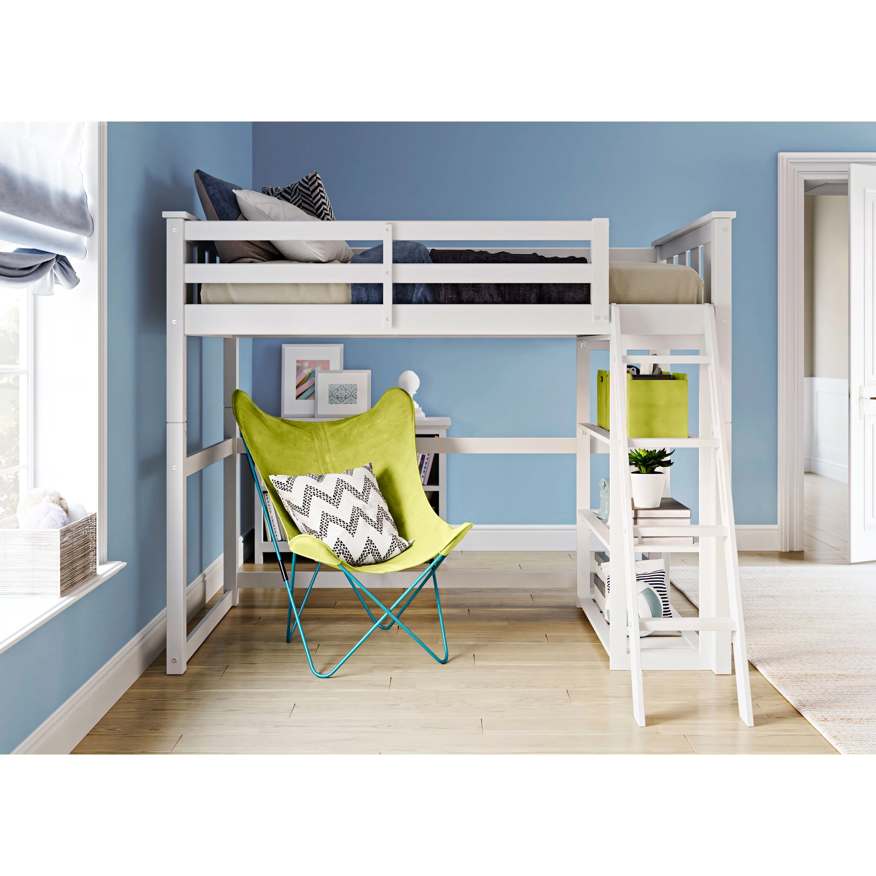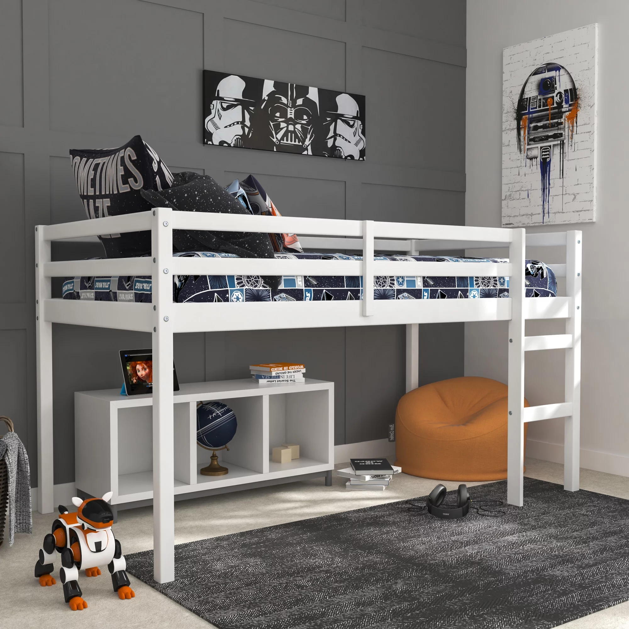 Walker Edison Modern Solid Wood Twin Loft Bed with Built-in Desk, White
