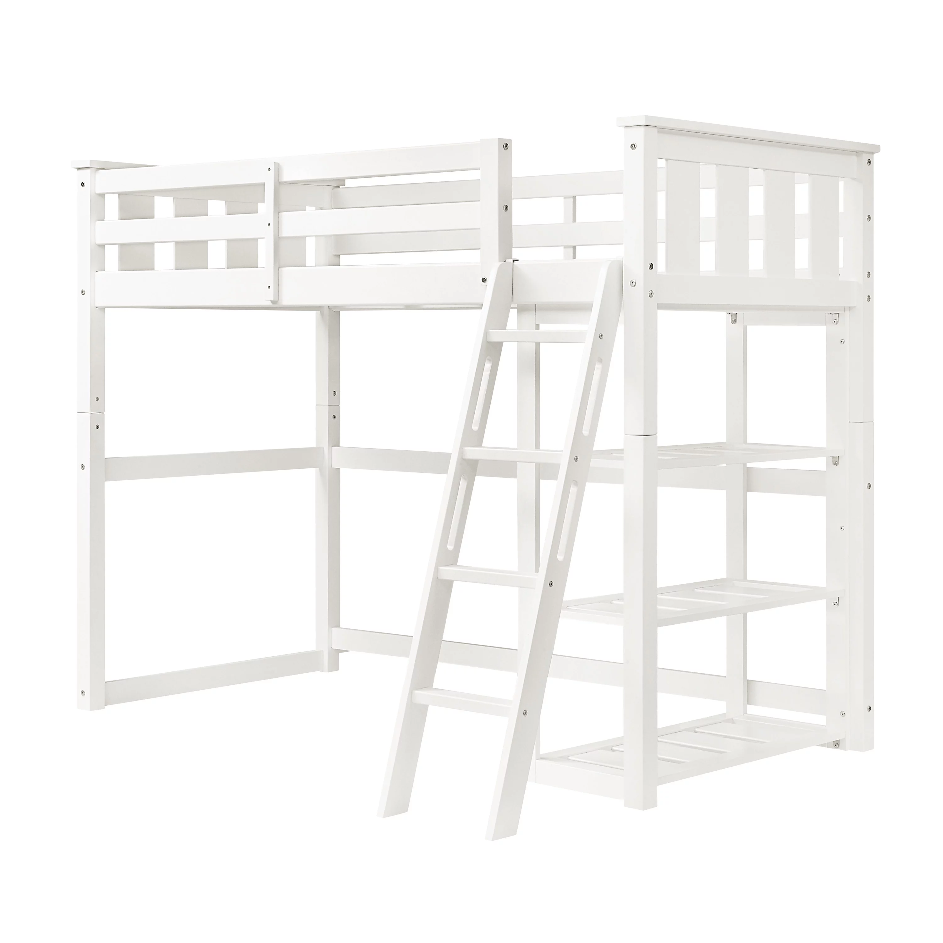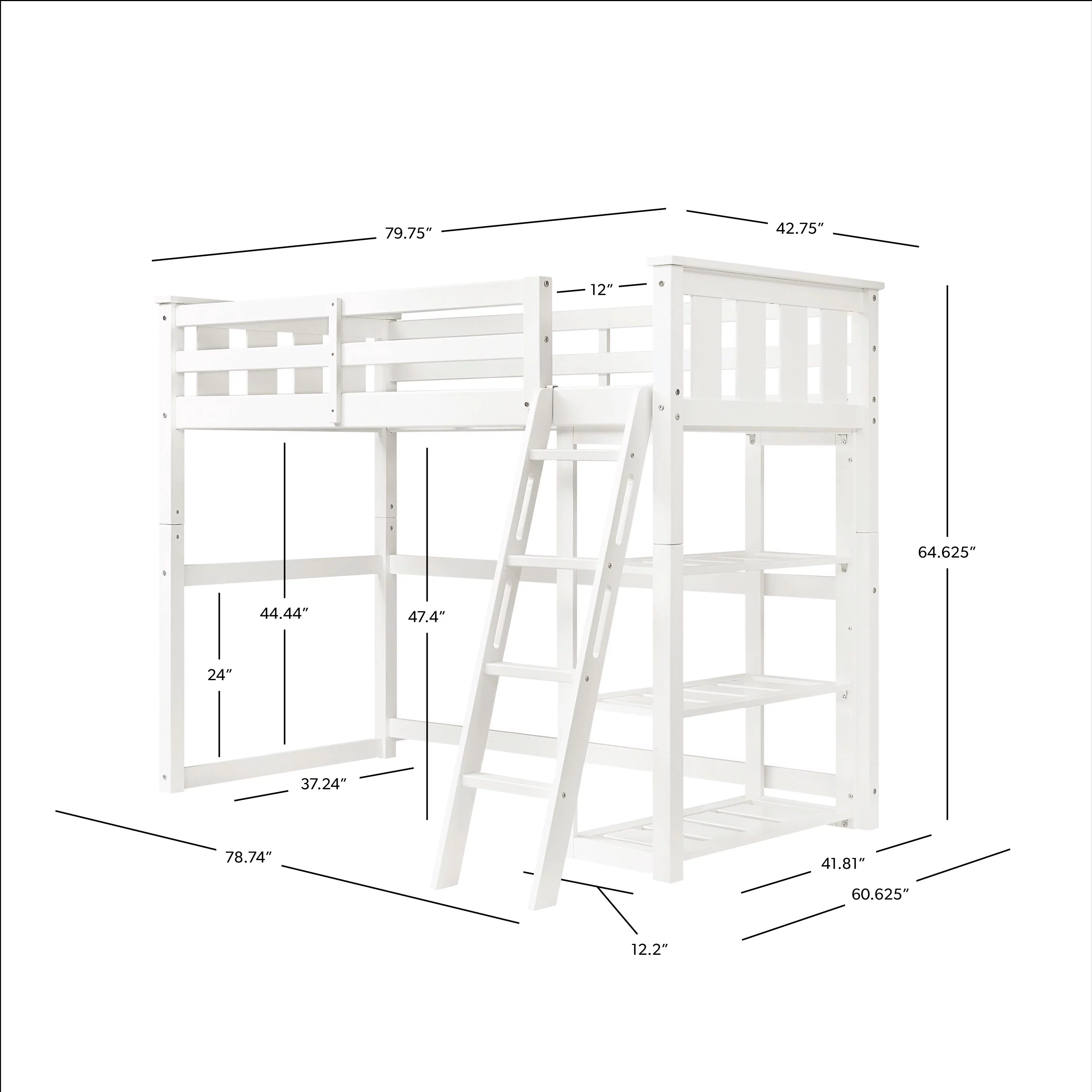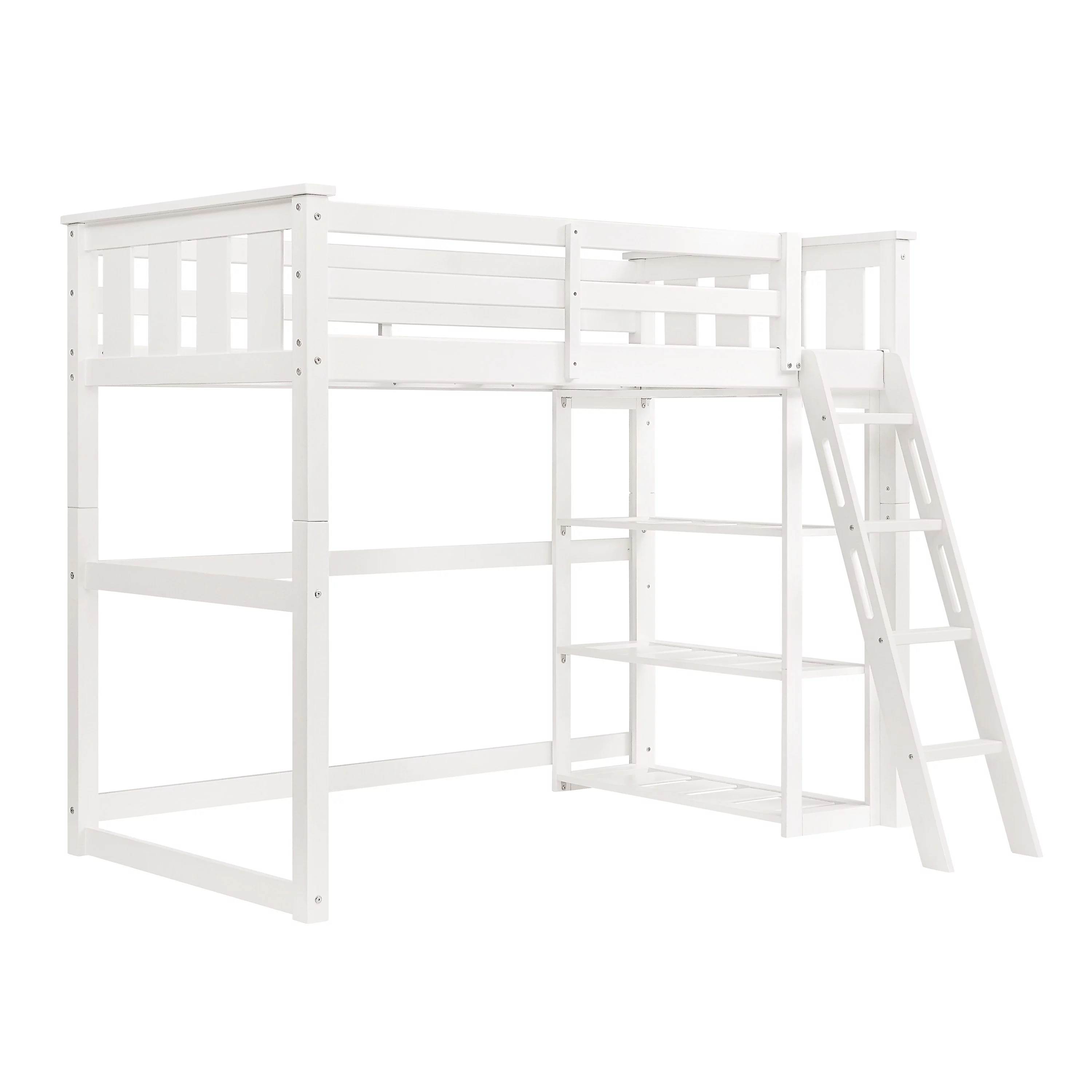 Euroco Twin Size Loft Bed with Built-in Desk and Shelves for Kids Teens Adults, White