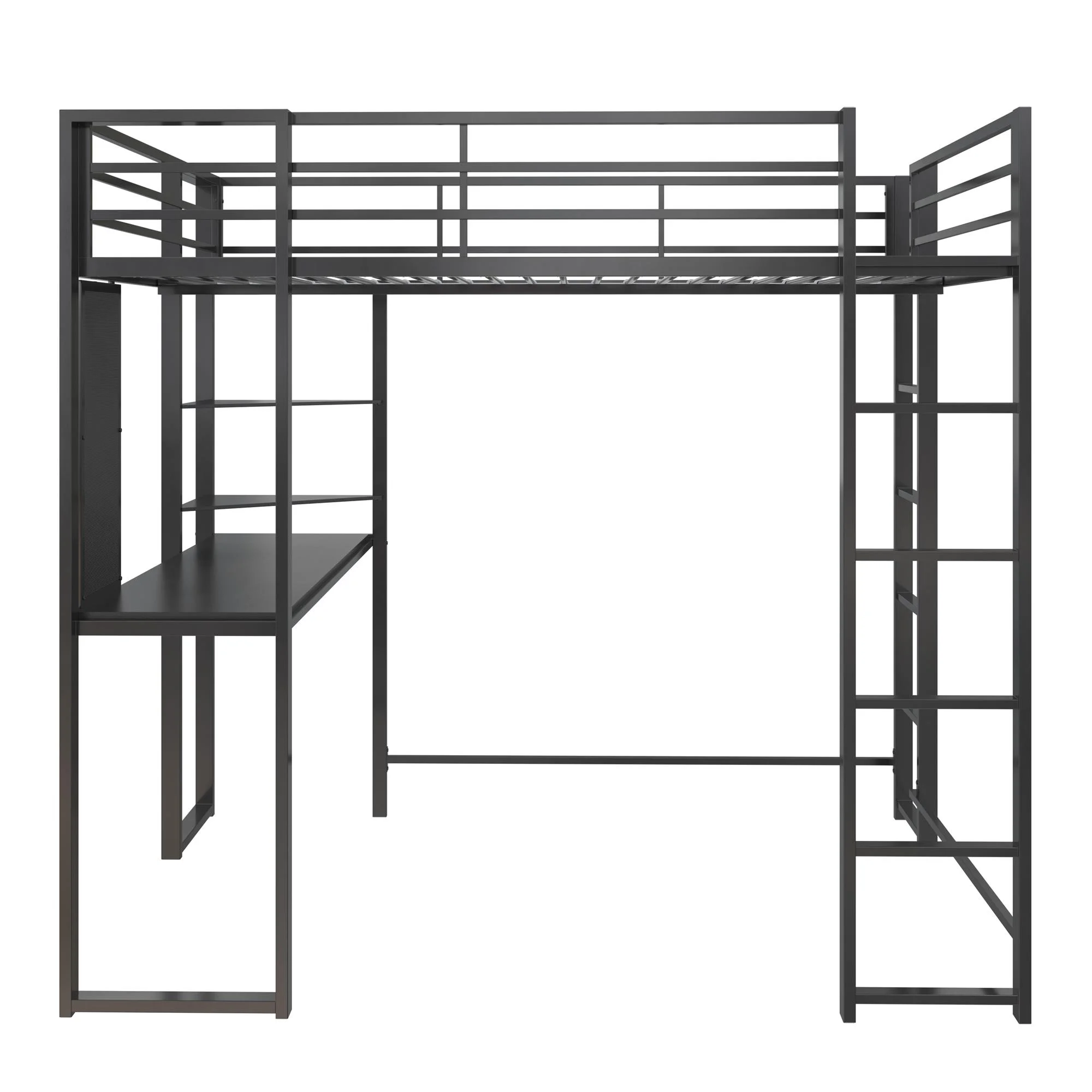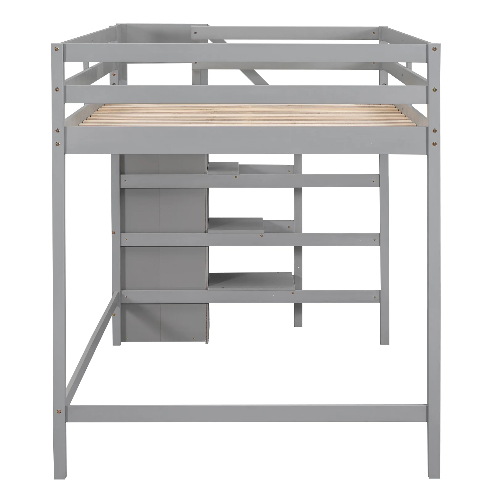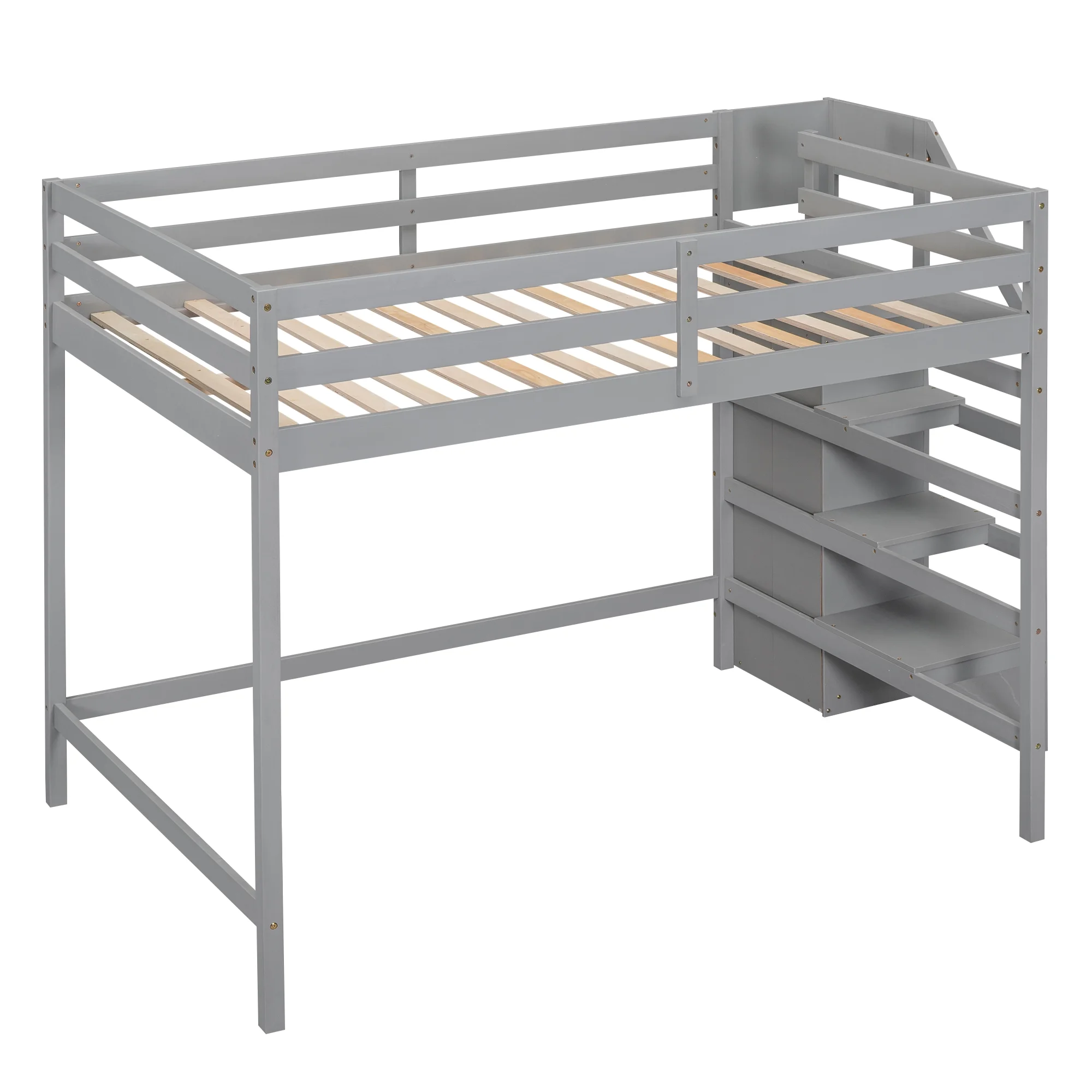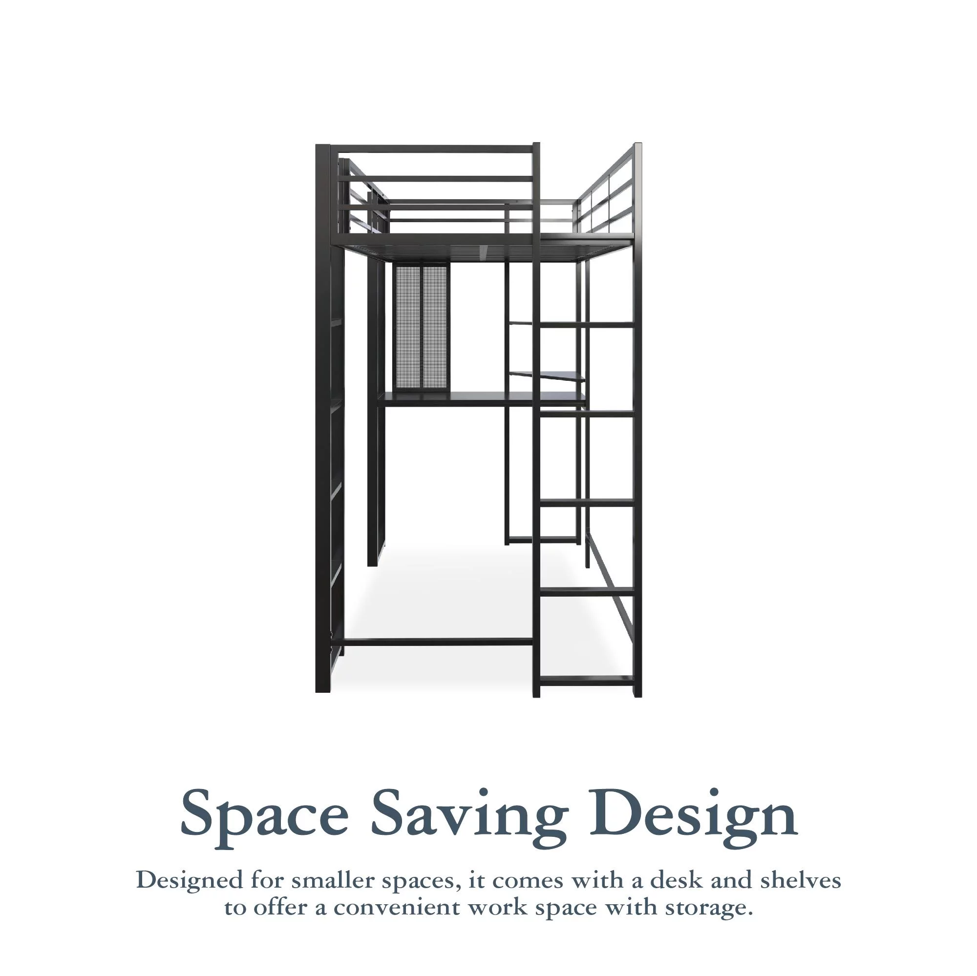 Euroco Twin Size Loft Bed with Built-in Desk and Shelves for Kids Teens Adults, White
