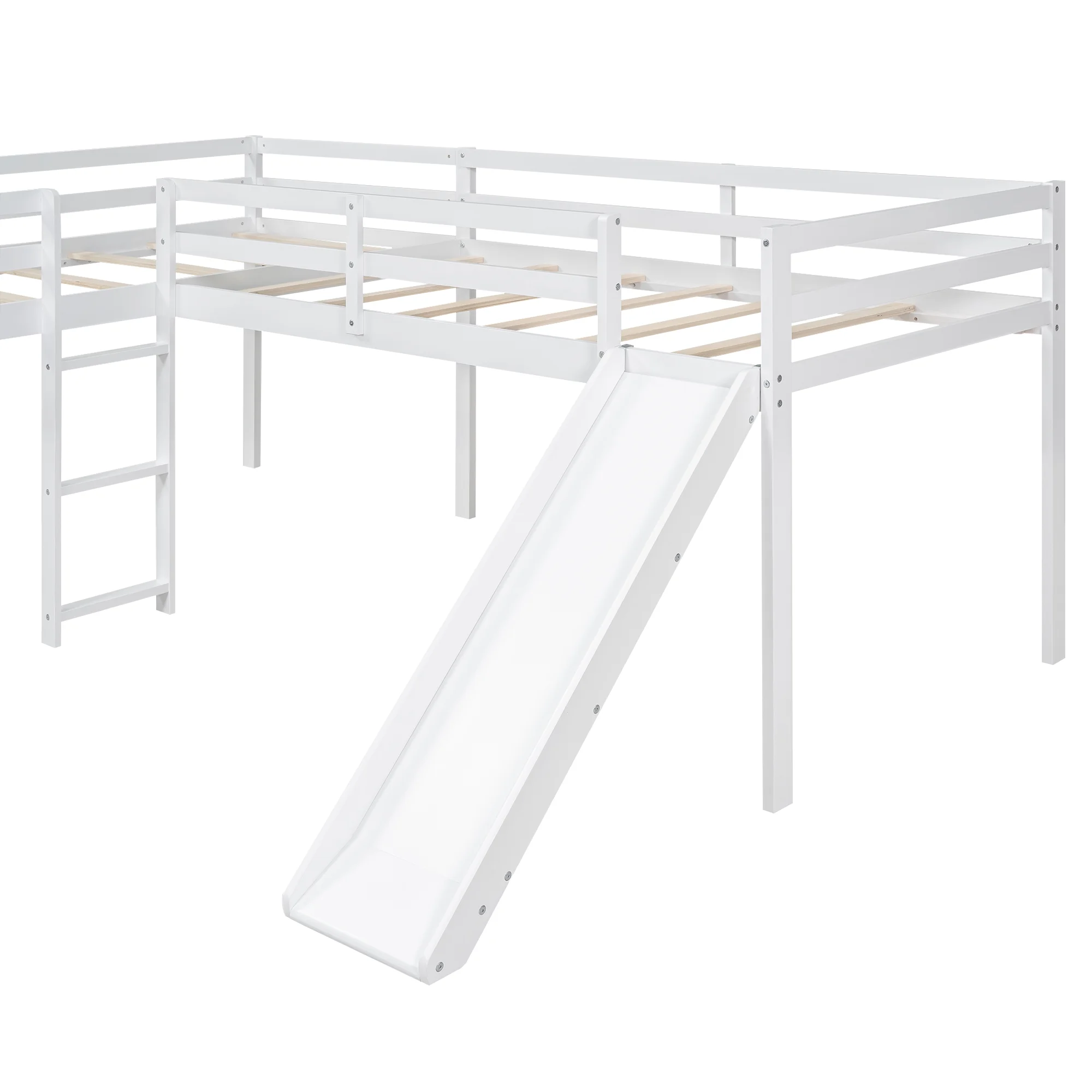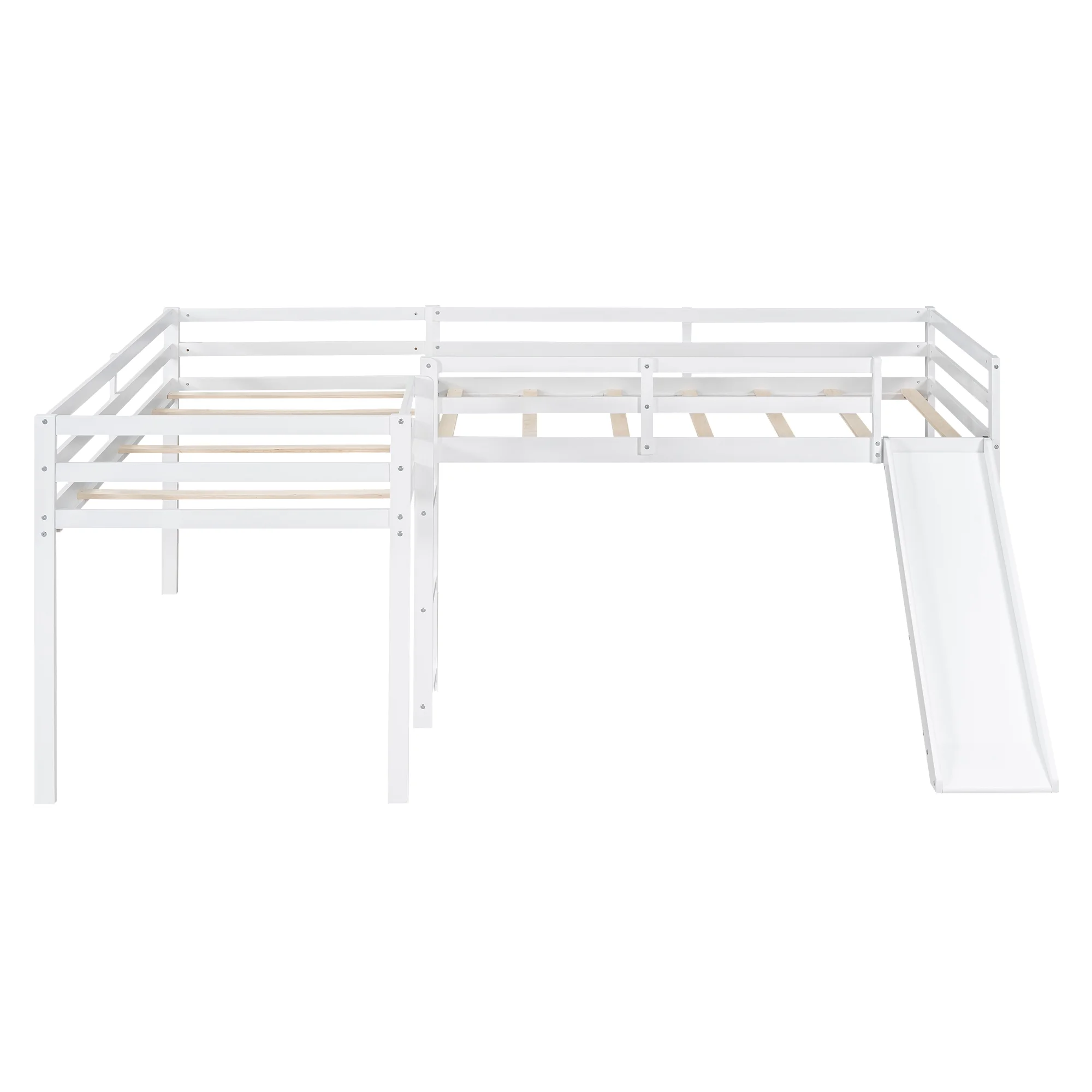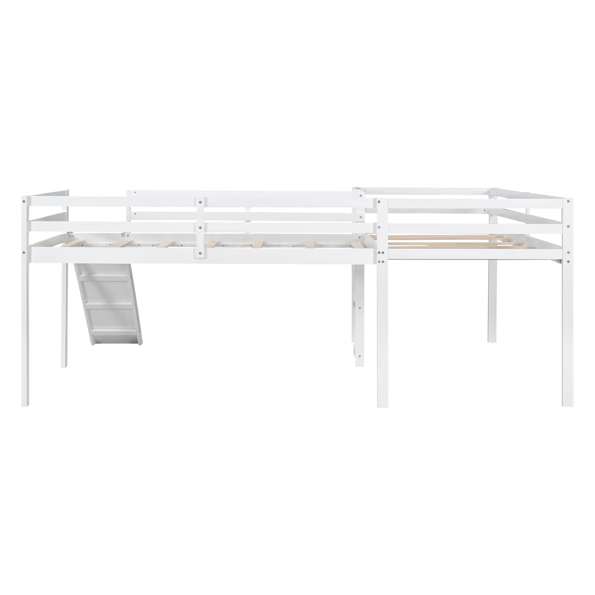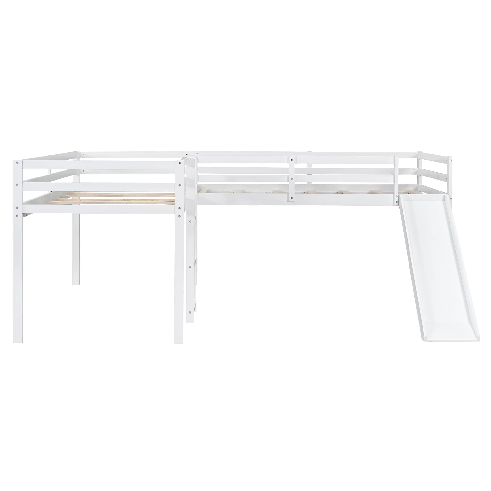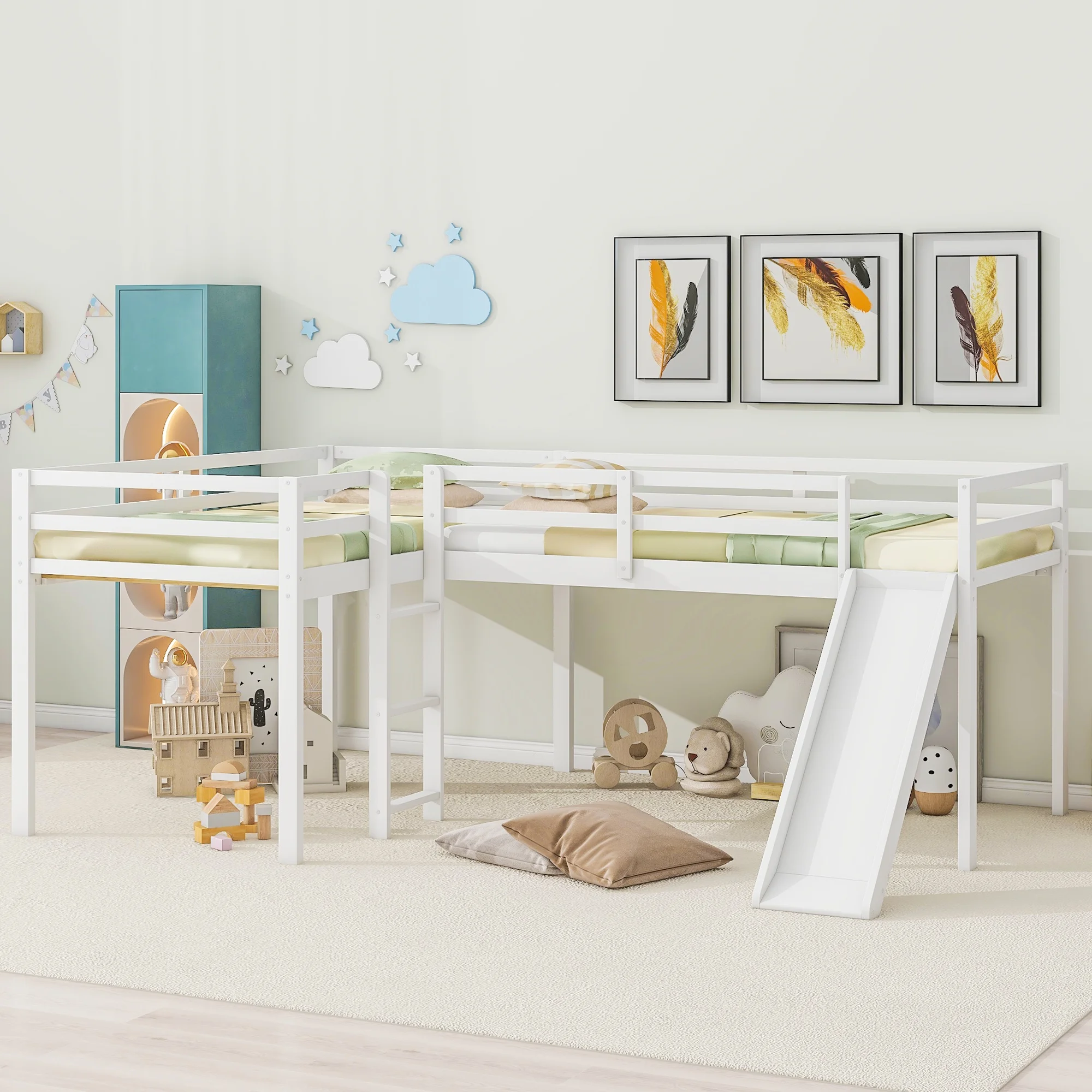 Euroco Twin L-Shaped Loft Bed with Slide and Ladder for Kids, 2 Beds in One for Kids Teens Adults, White