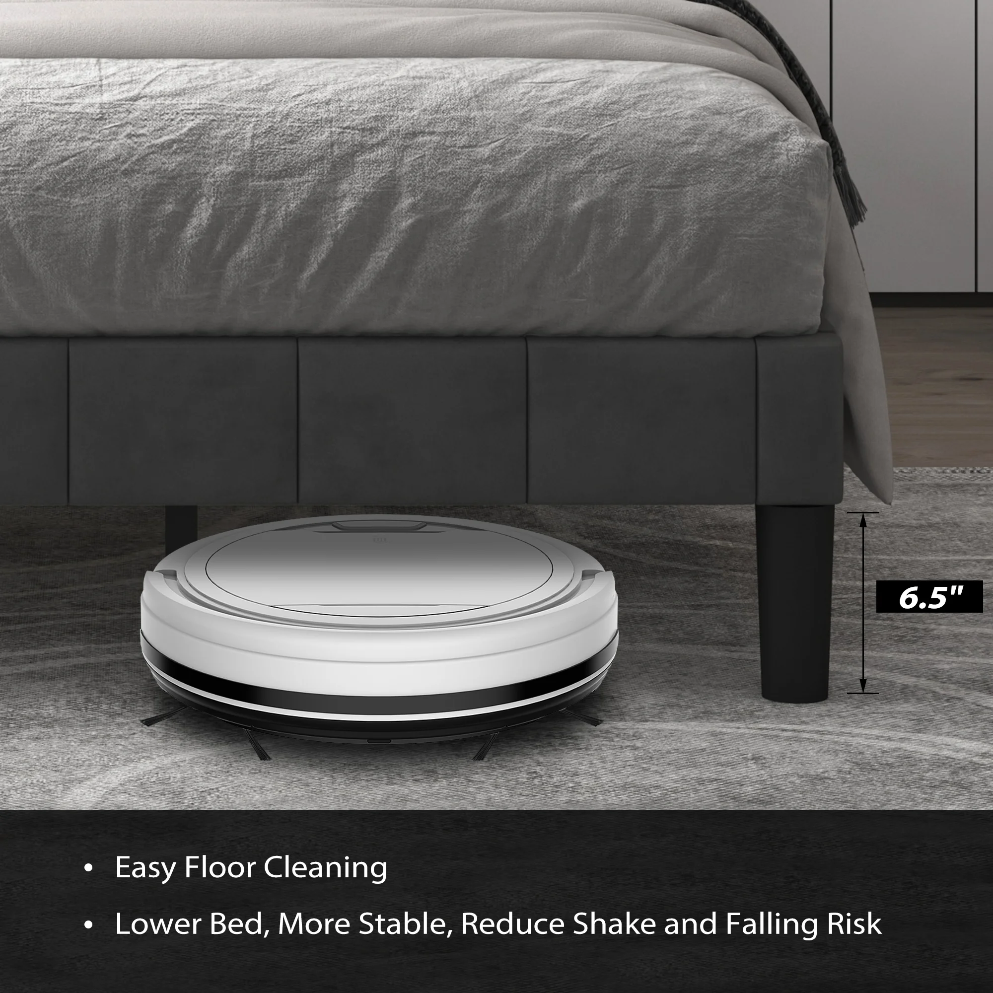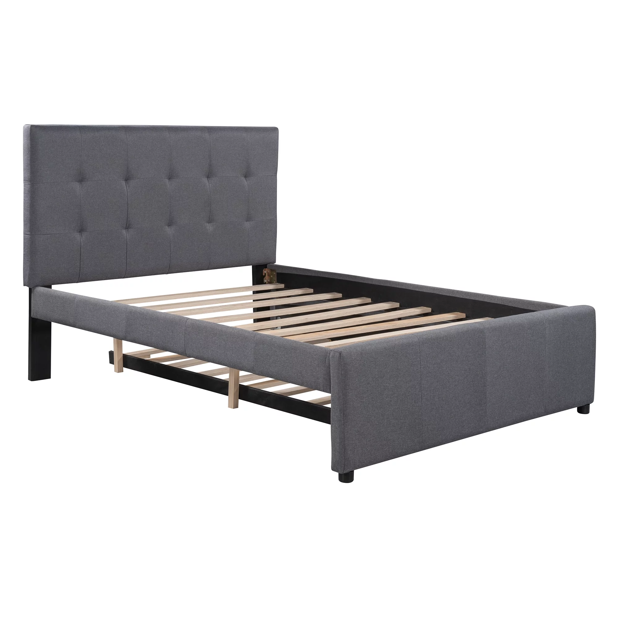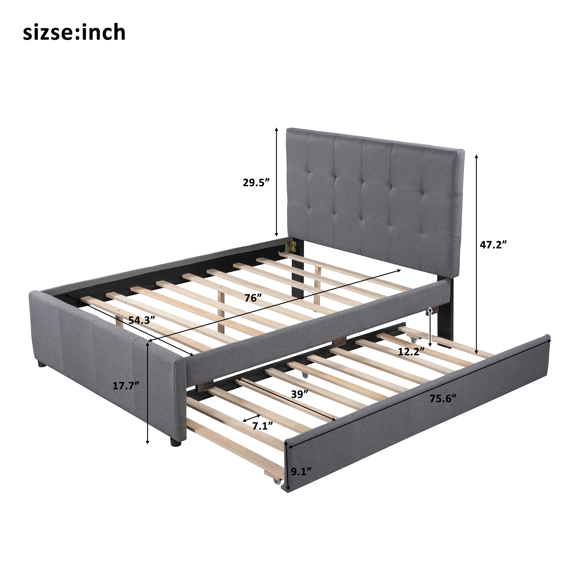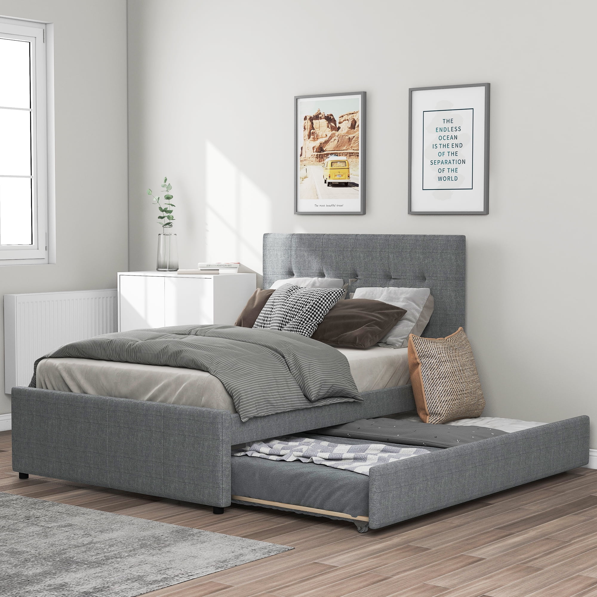 Euroco Line Full Size Upholstered Platform Bed with Trundle for Kids, Gray