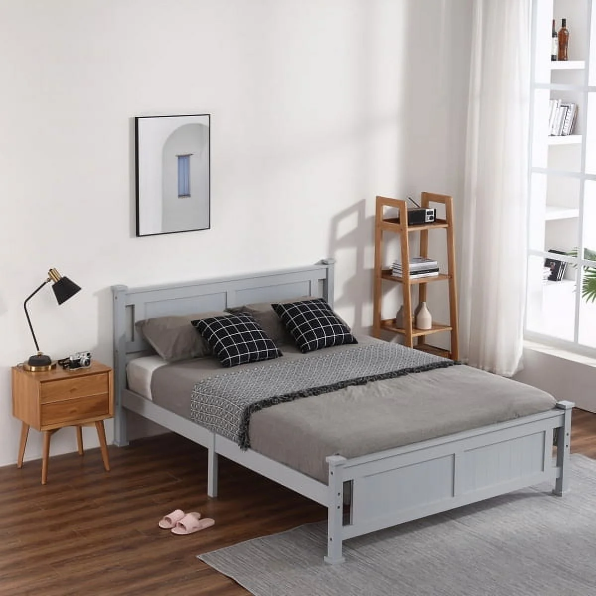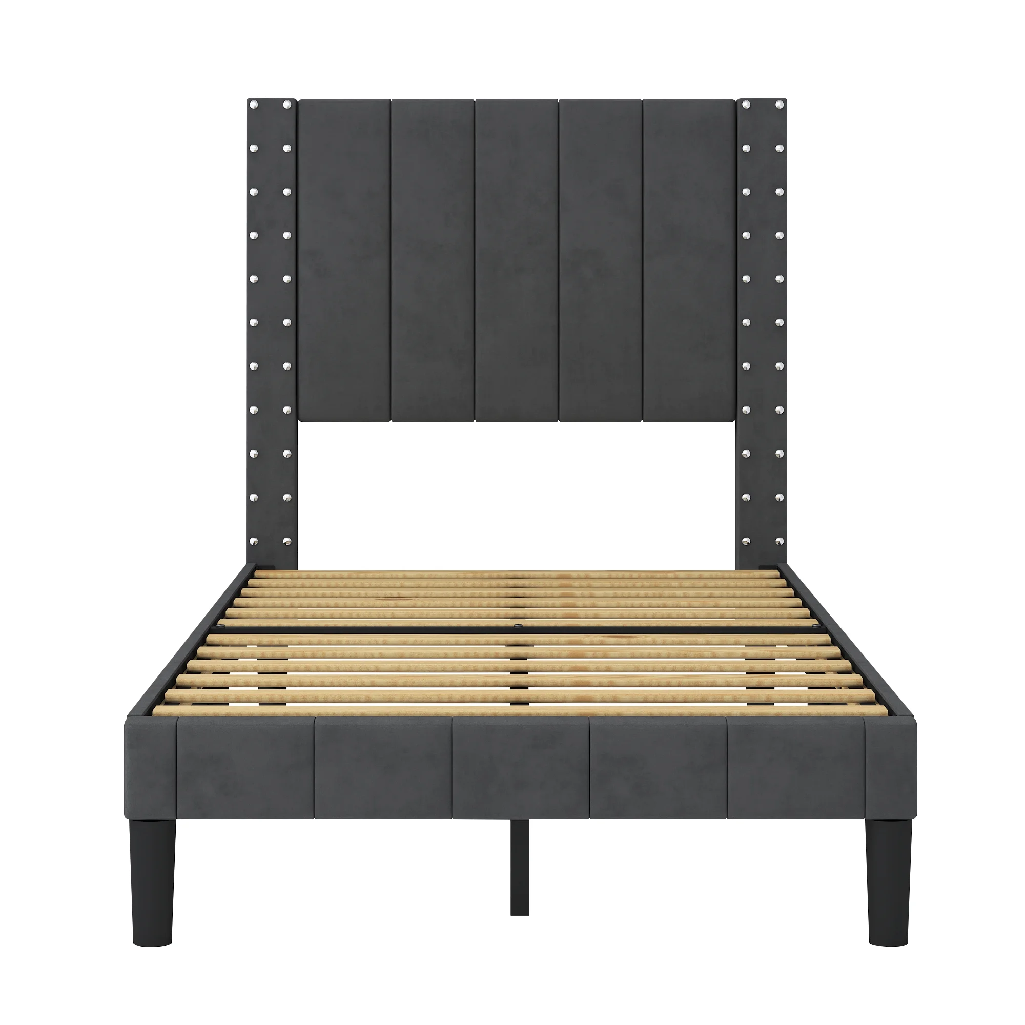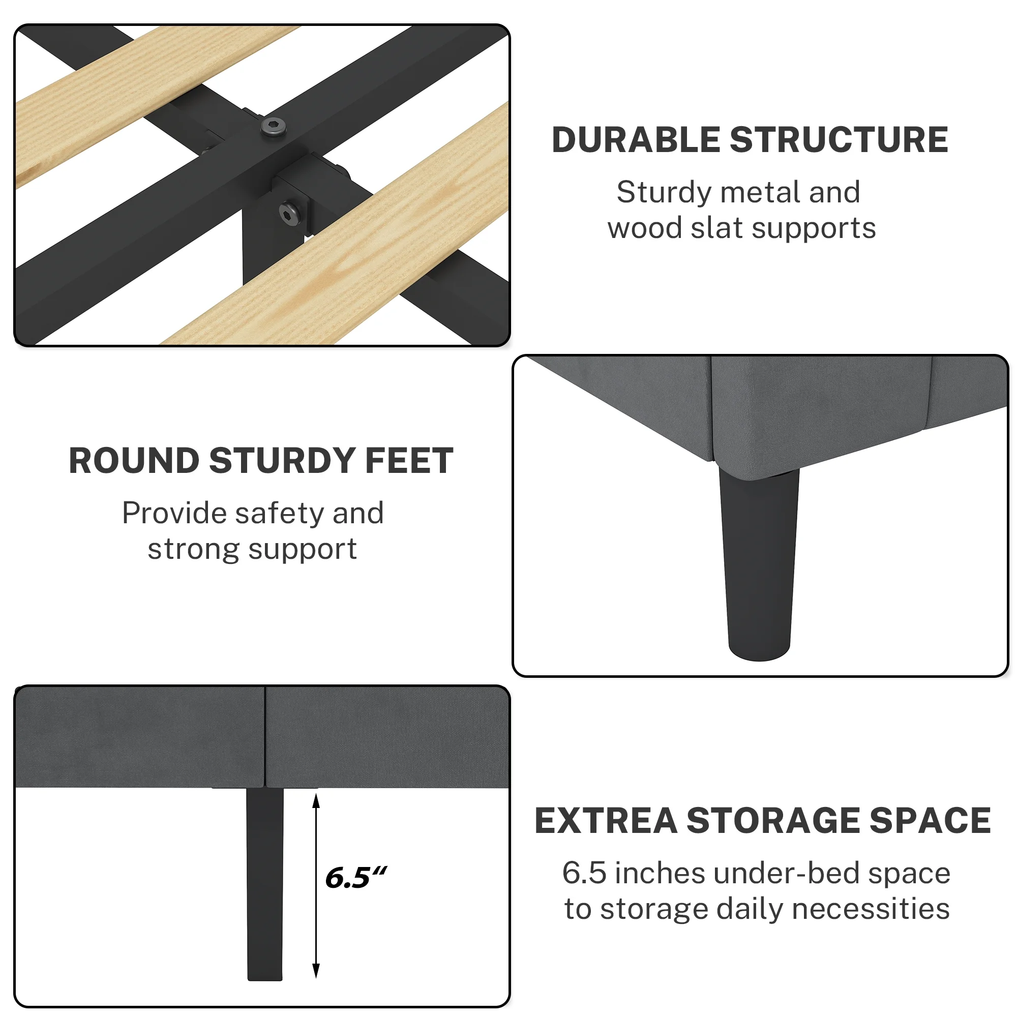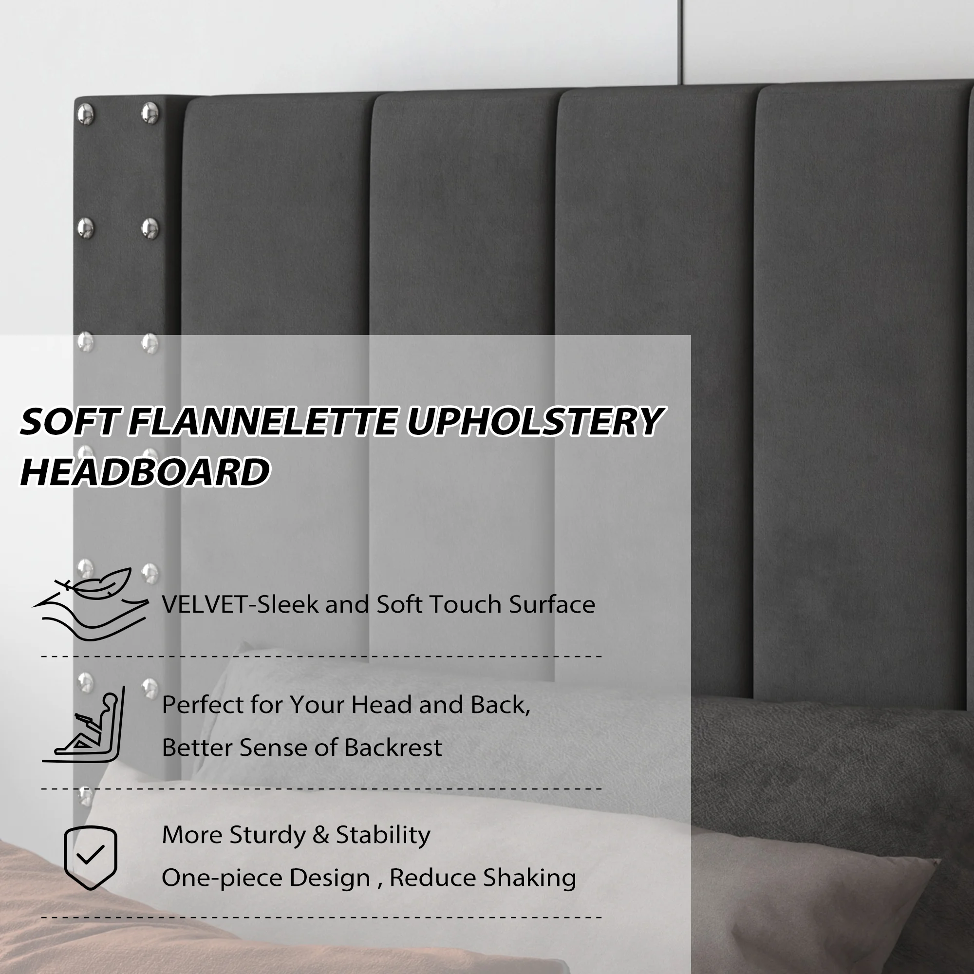 Euroco Line Full Size Upholstered Platform Bed with Trundle for Kids, Gray