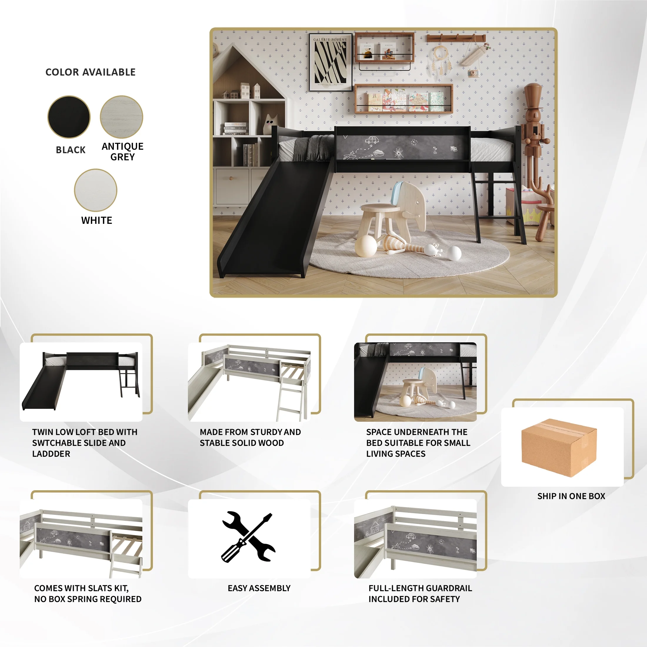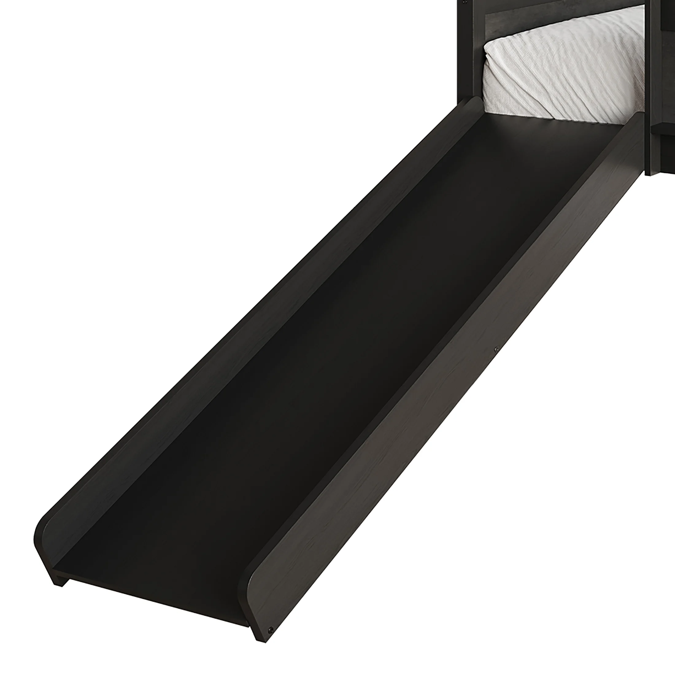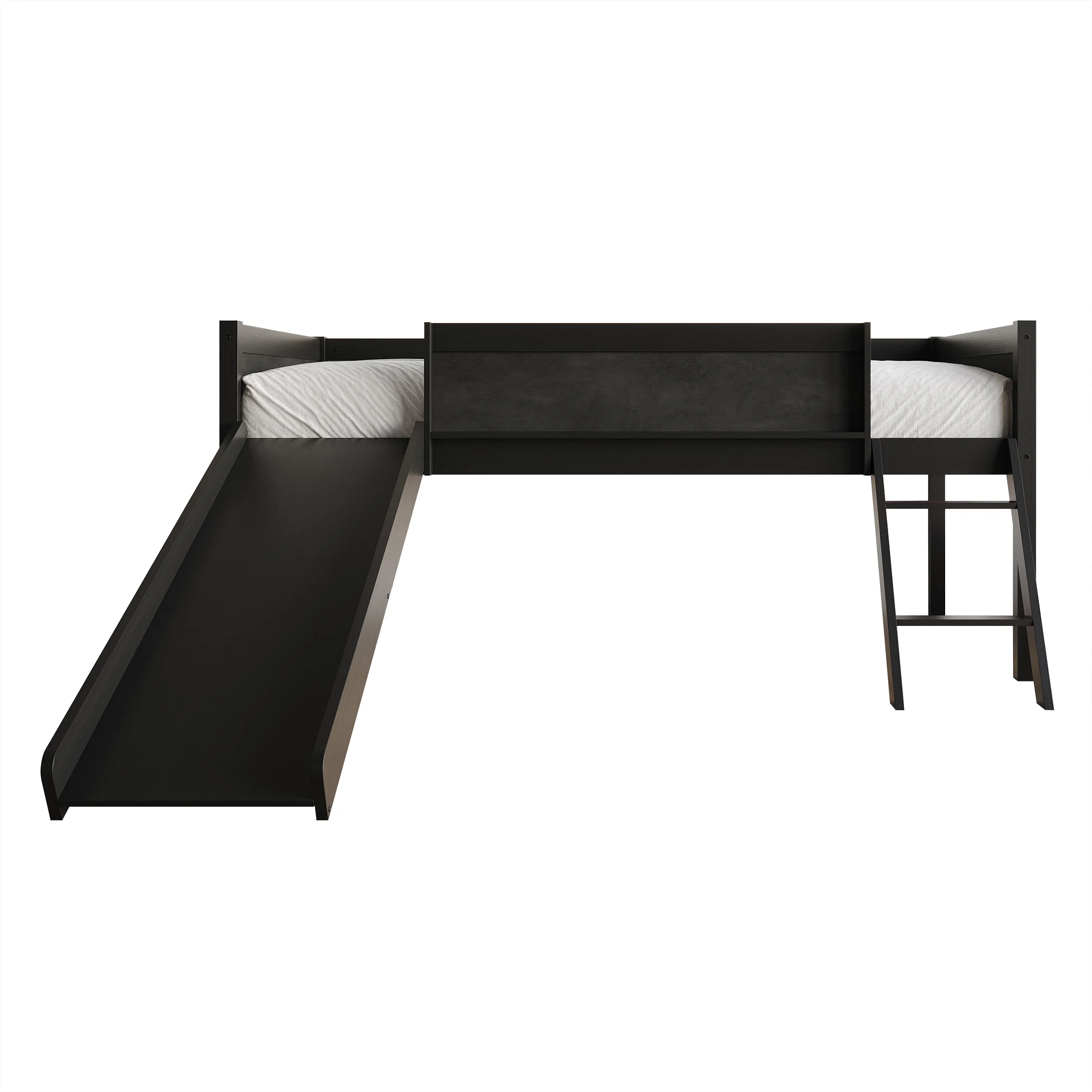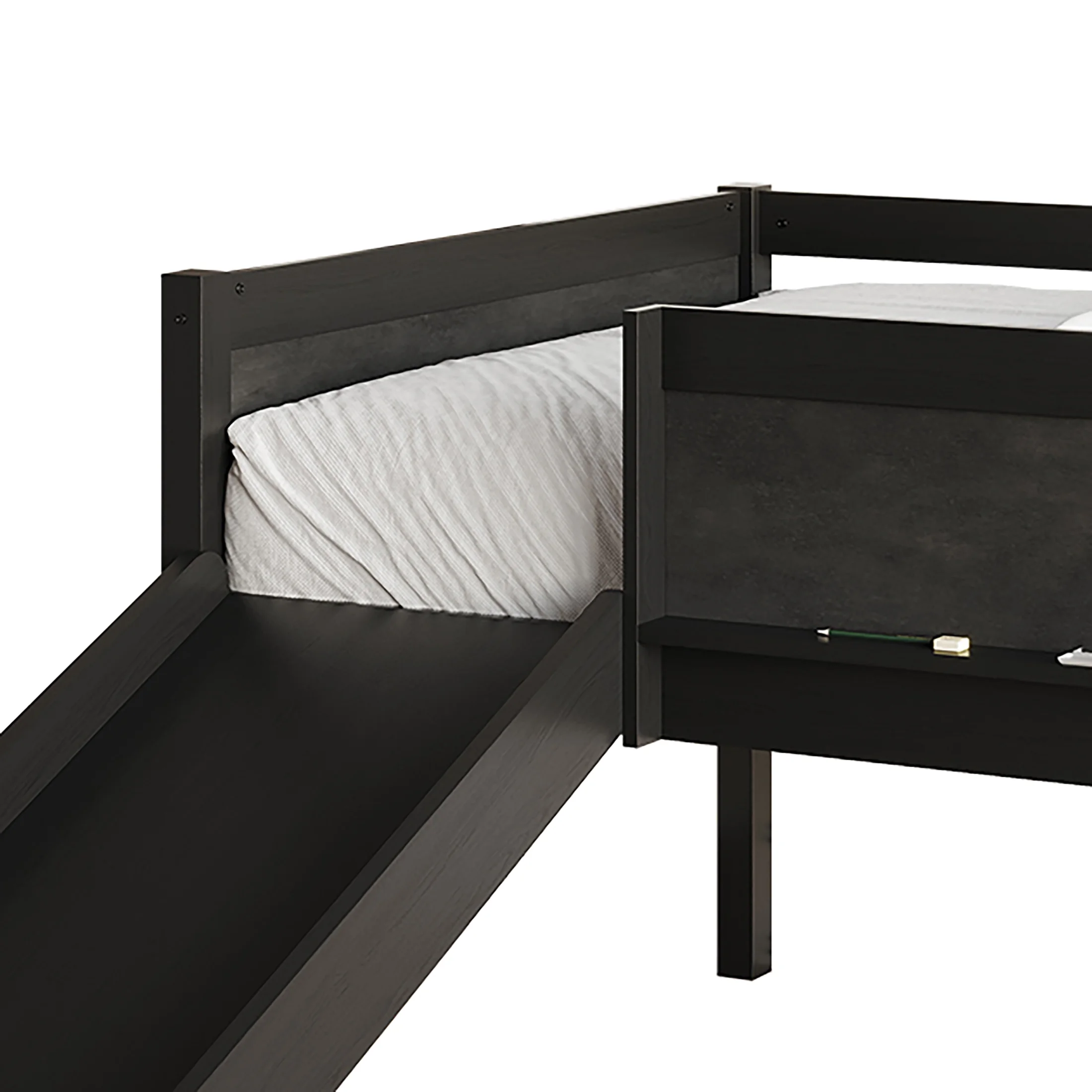 Castle Place Wooden Twin Junior Loft Bed with Chalkboard and Slide, Black