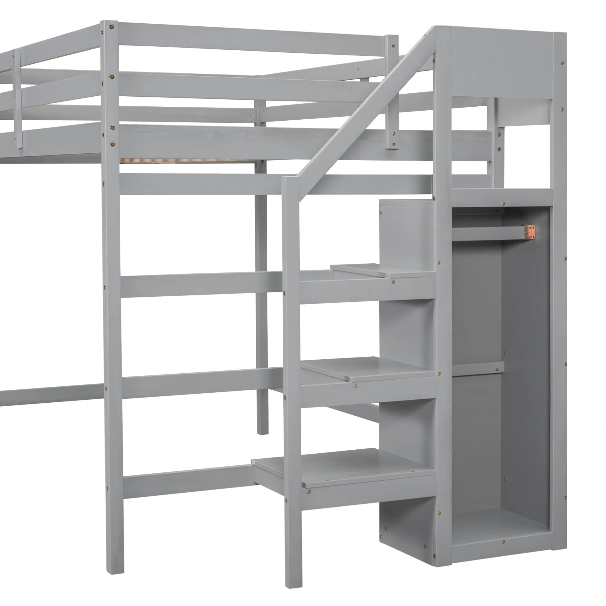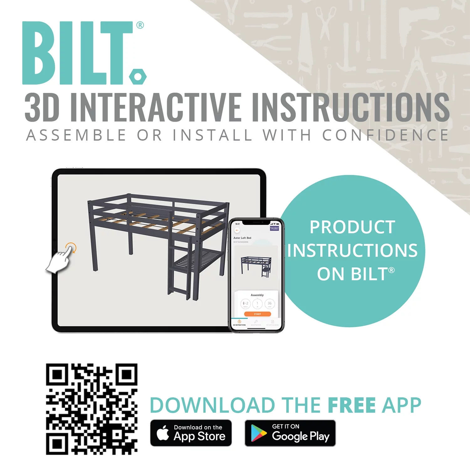 Living Essentials by Hillsdale Alexis Wood Arch Twin Loft Bed with Desk, Gray