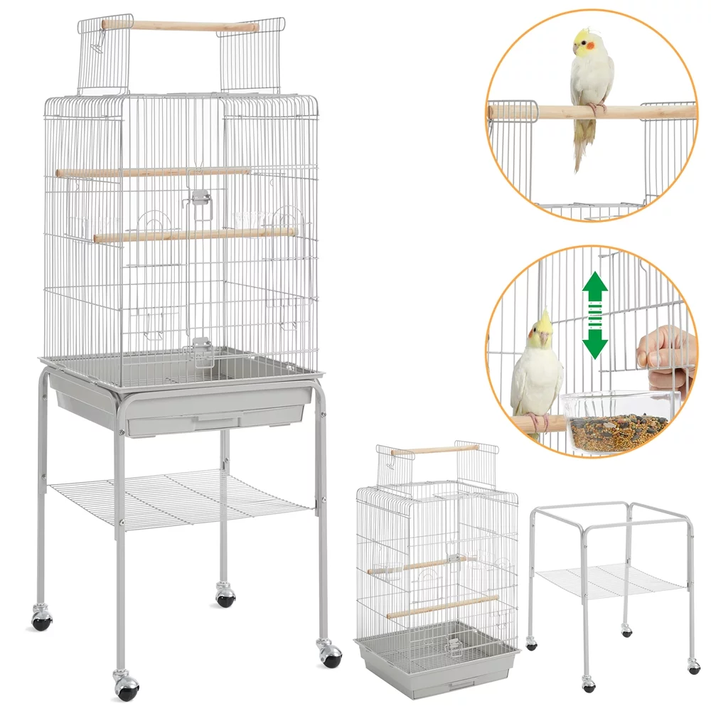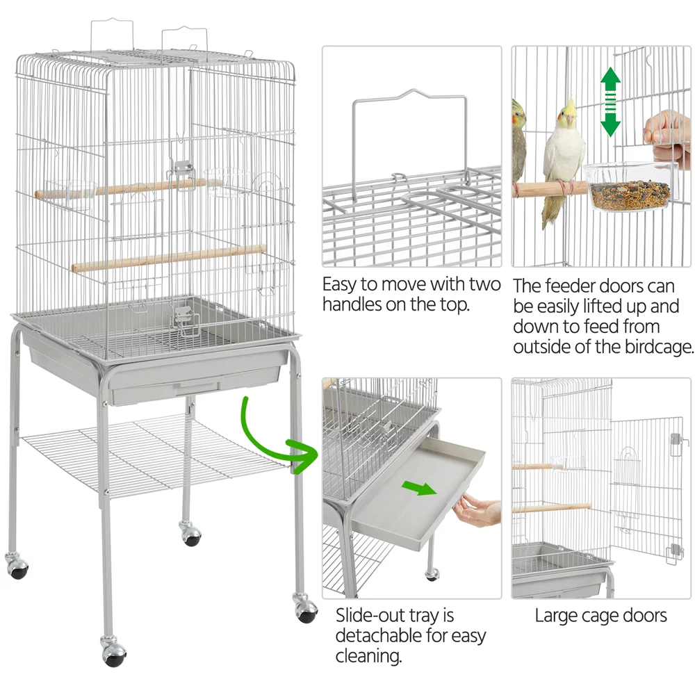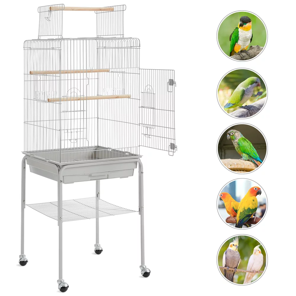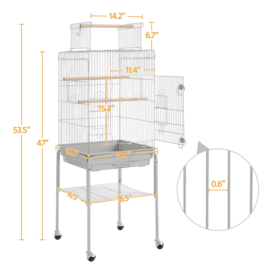 Alden Design 53.5" Metal Rolling Bird Cage with Play Top Stand, Light Gray