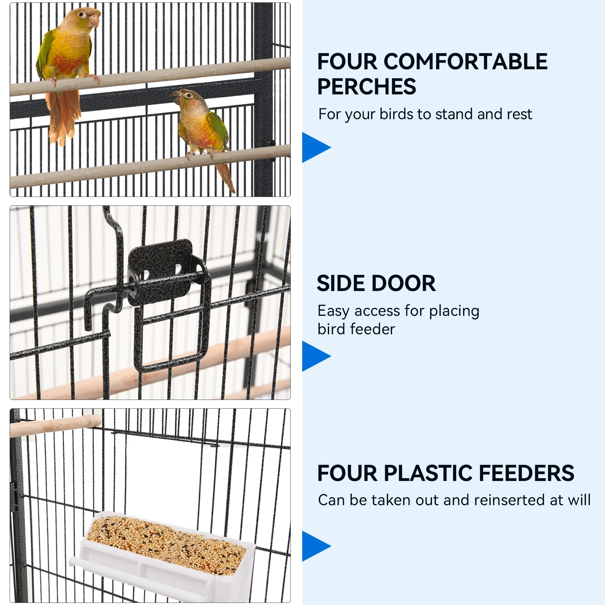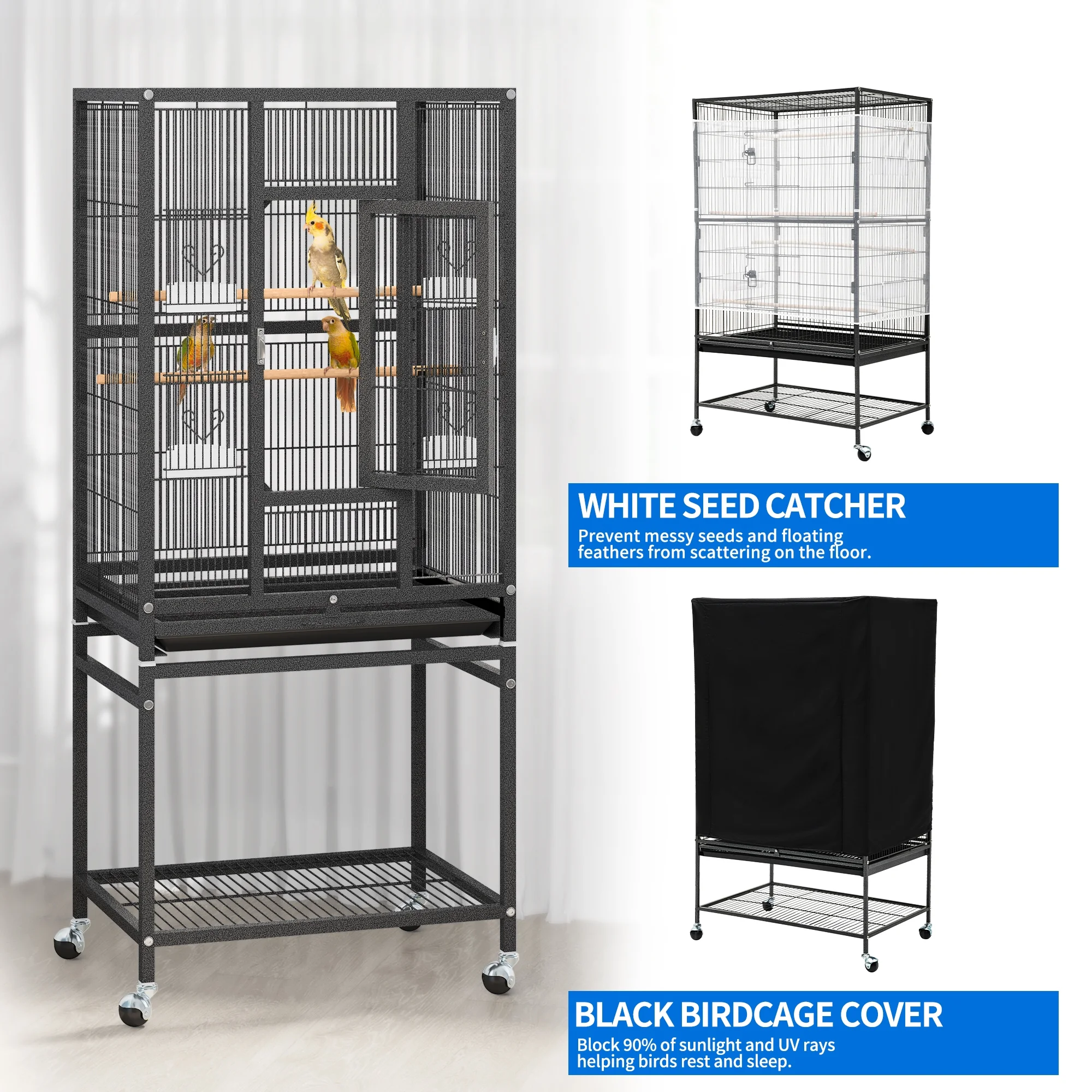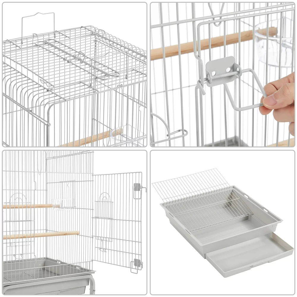 Alden Design 53.5" Metal Rolling Bird Cage with Play Top Stand, Light Gray