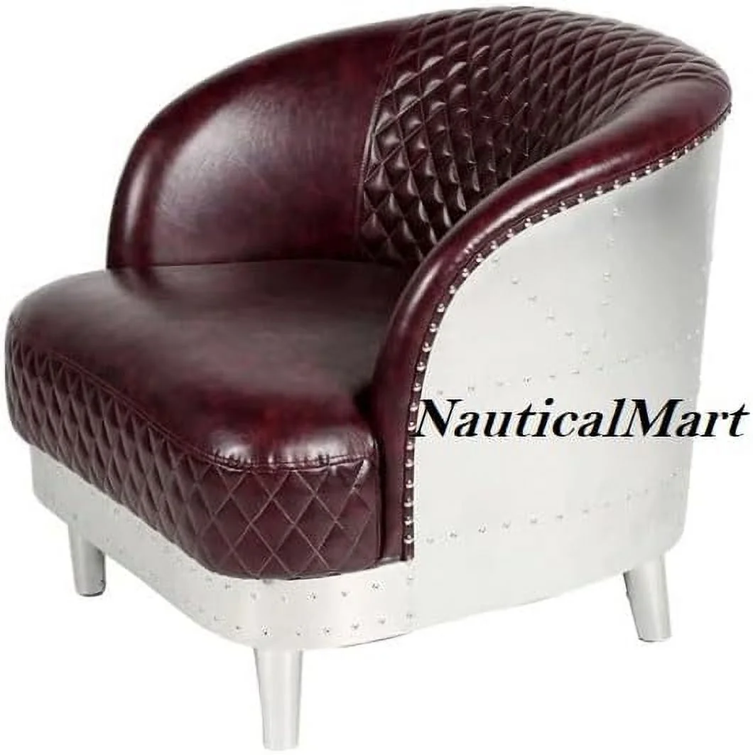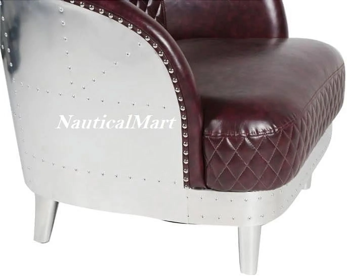 NauticalMart Aluminum Aviator Leather Sofa Chair Vantage Decor Mid Century Aviation Furniture