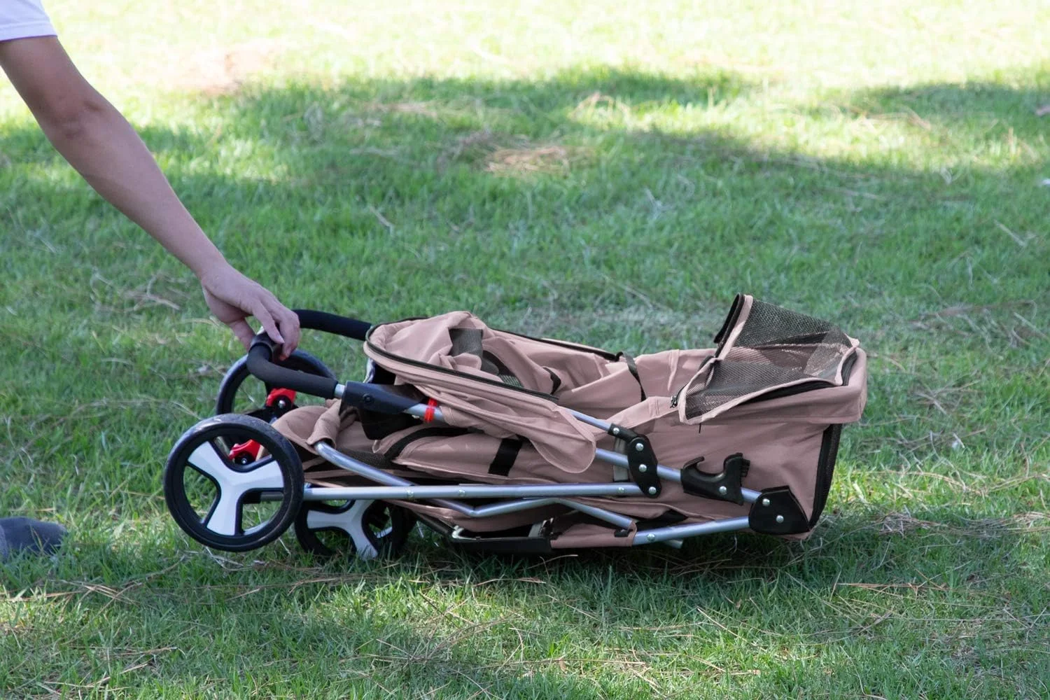 BestPet 3 Wheels Pet Stroller Dog Cat Stroller Folding Carrier Waterproof with Cup Holder (Light Pink)