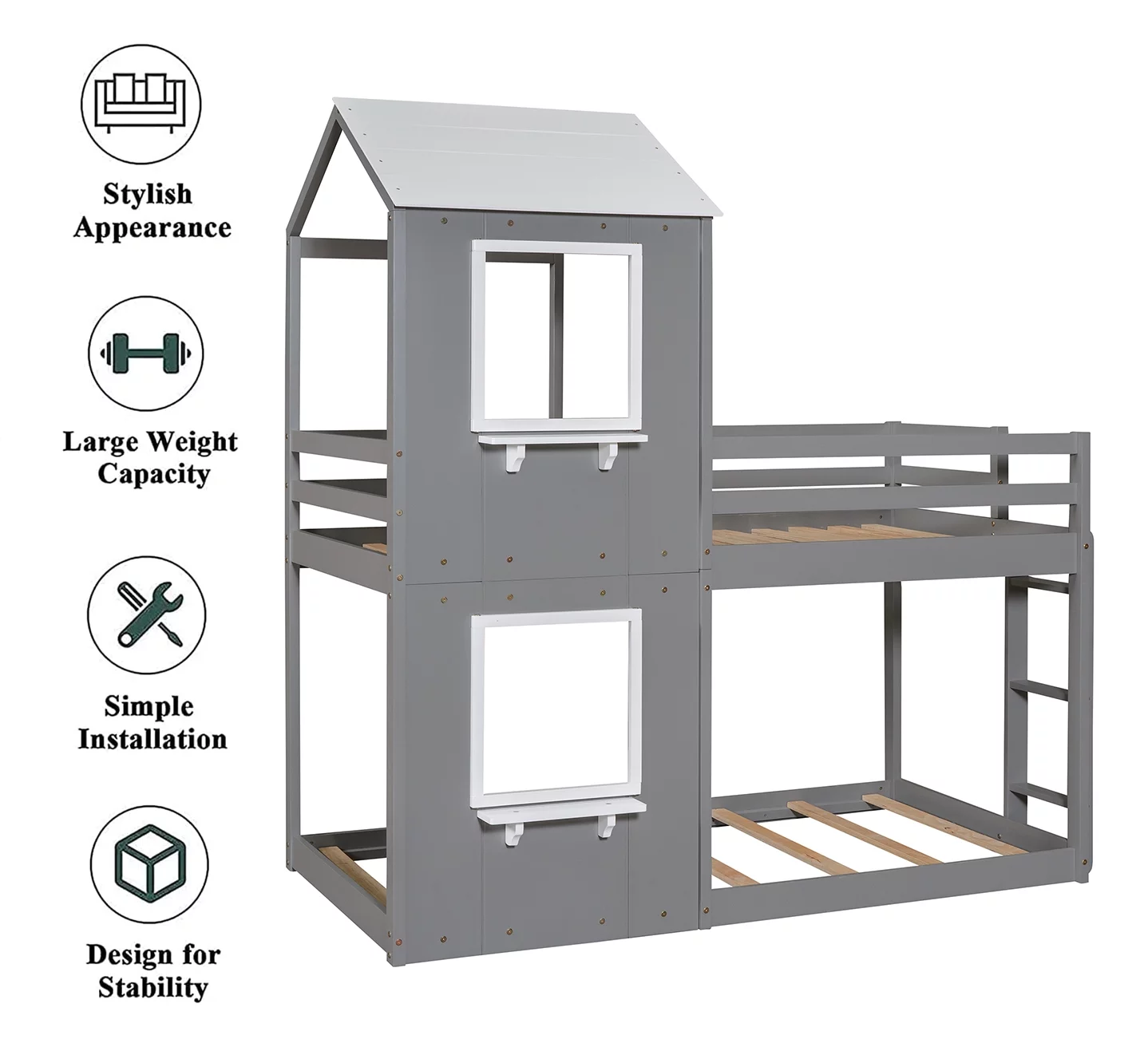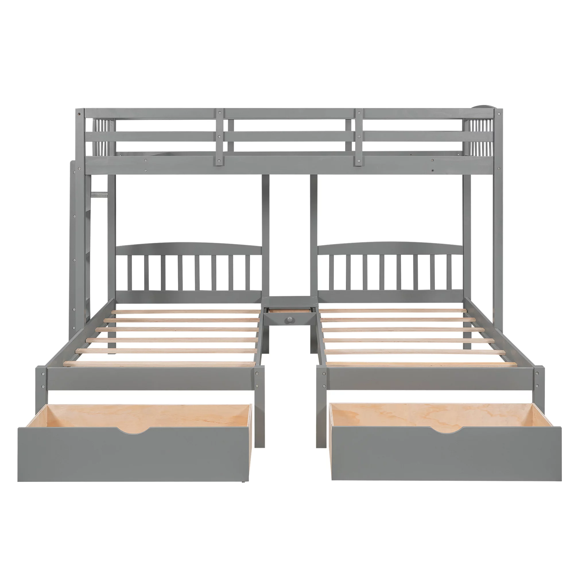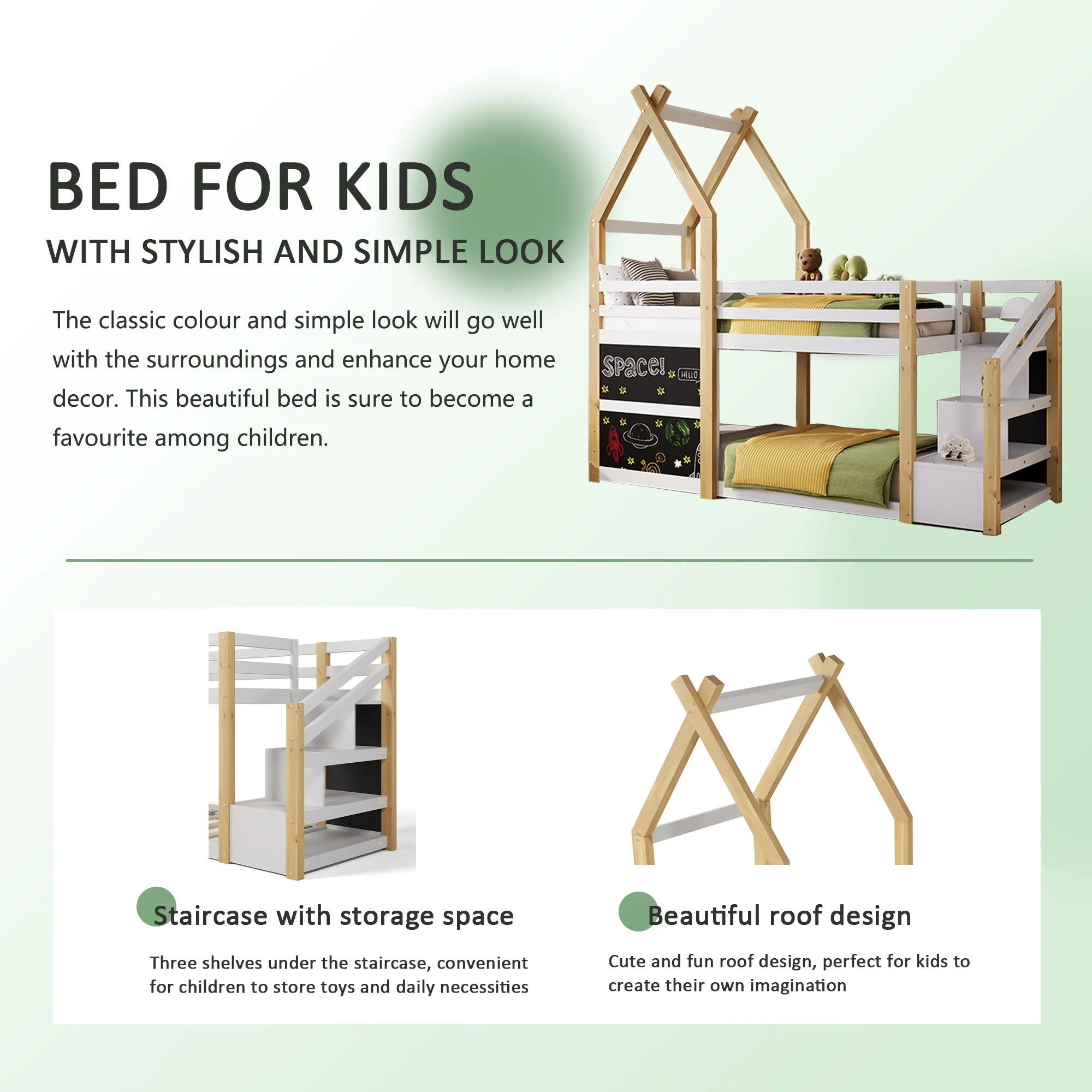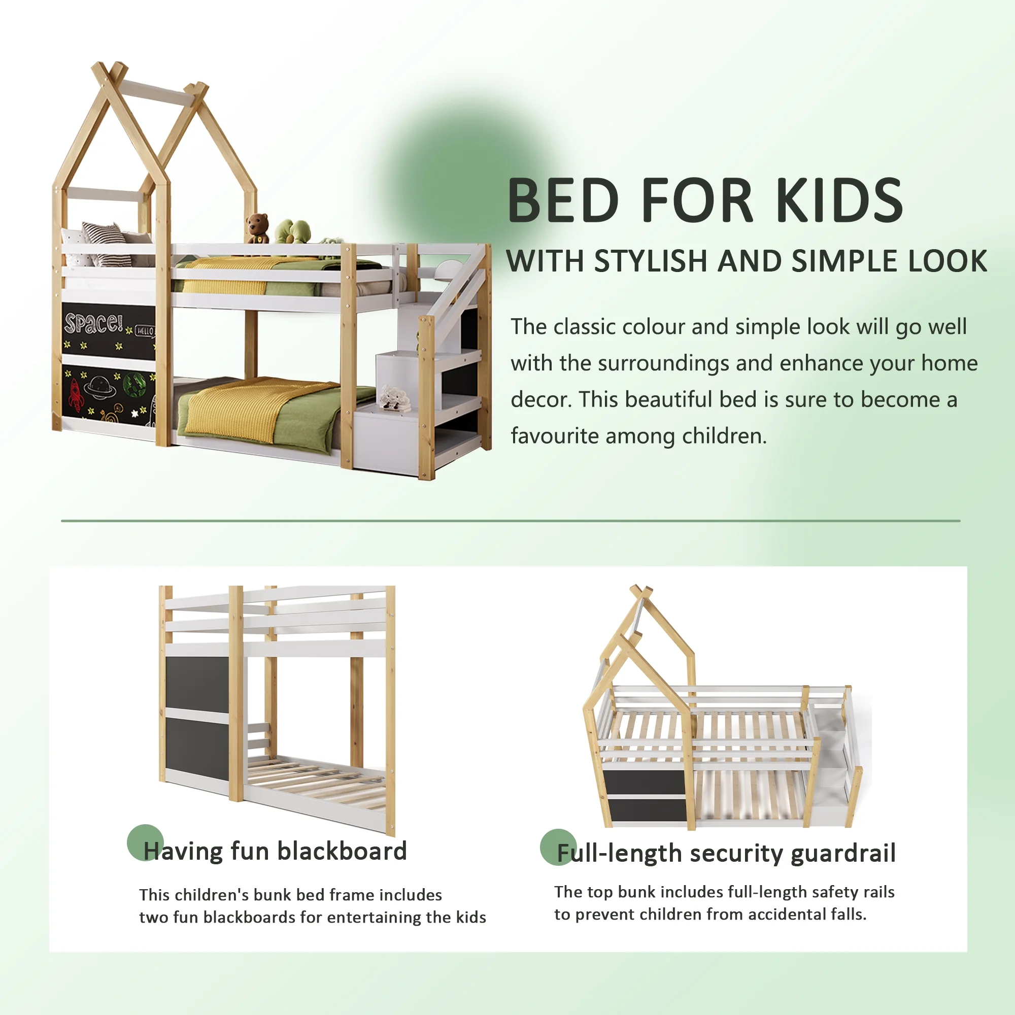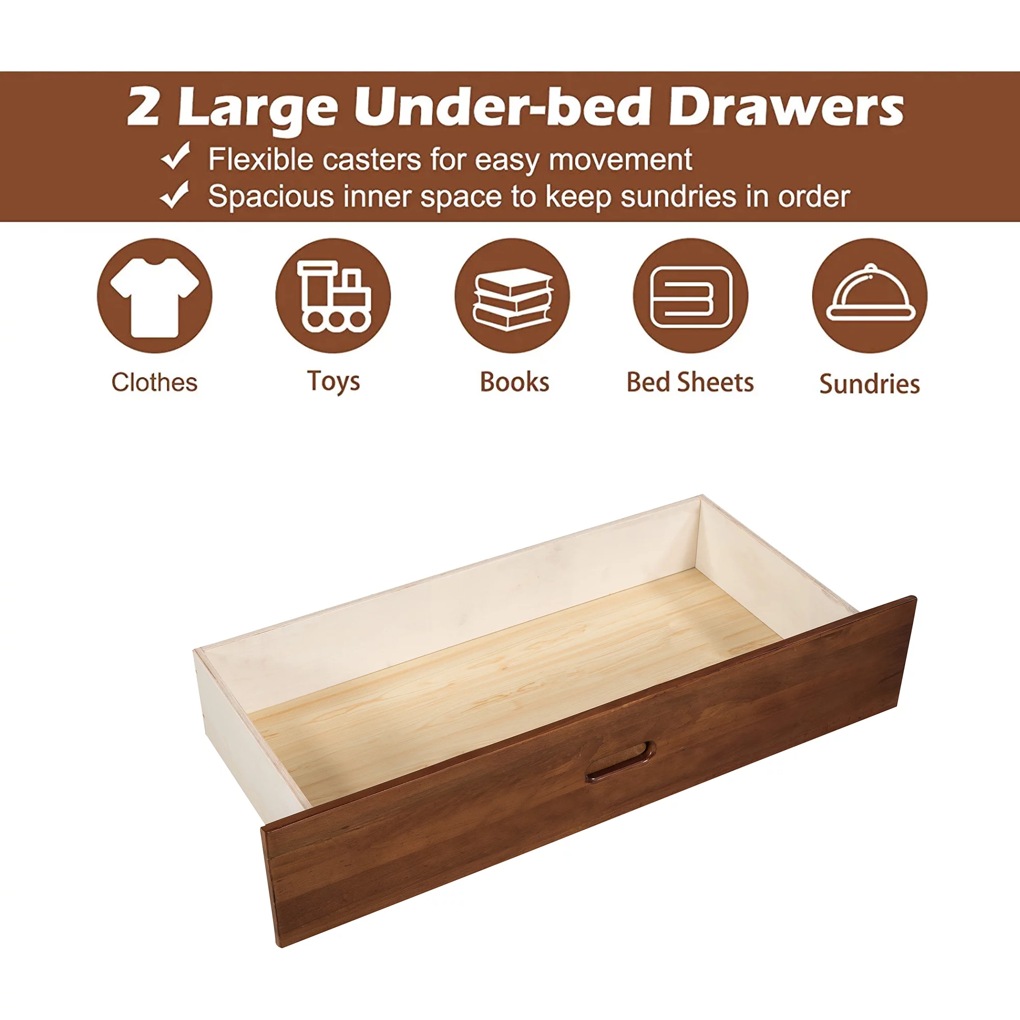 Euroco Twin over Full Bunk Bed with Desk and Drawers for Kids Bedroom, White