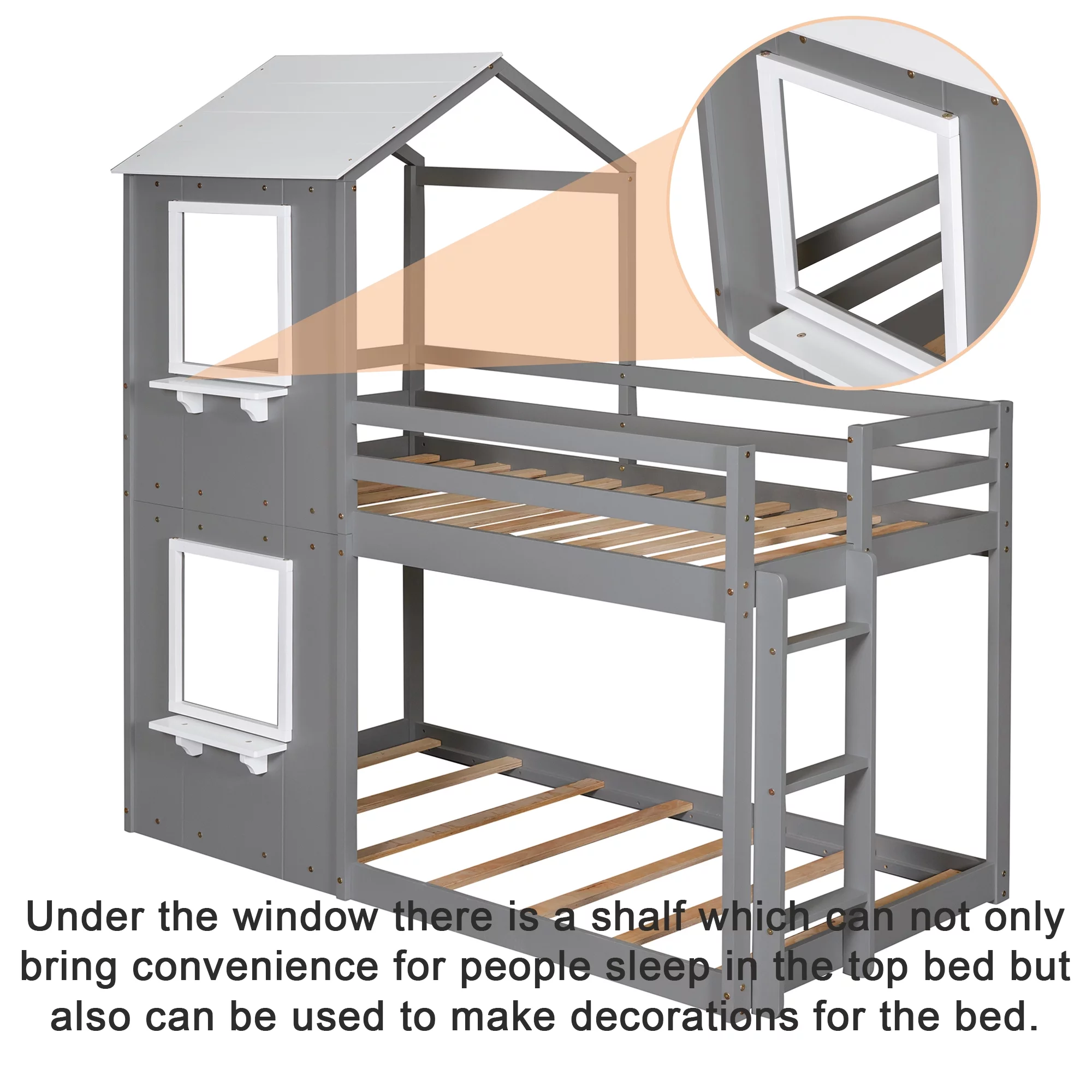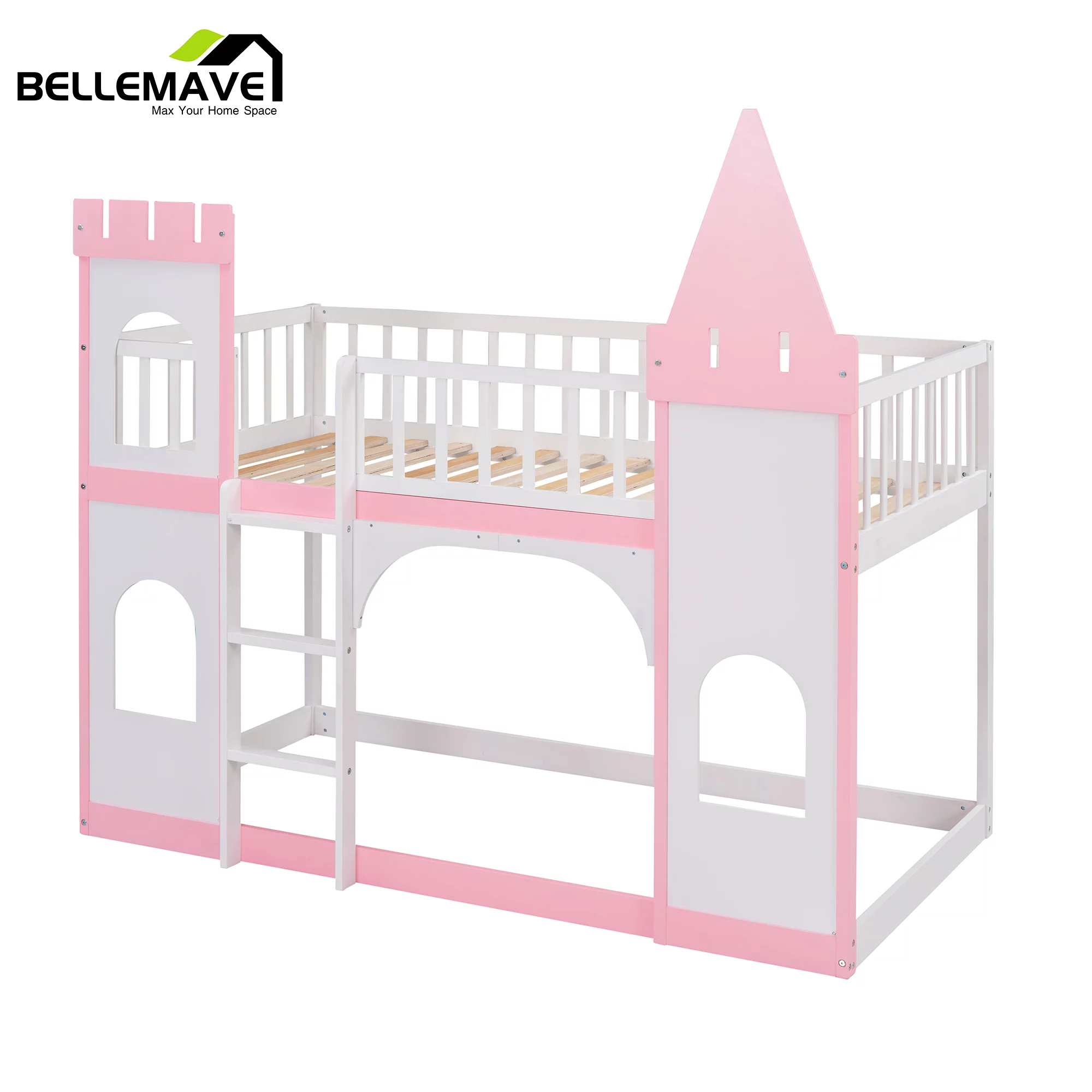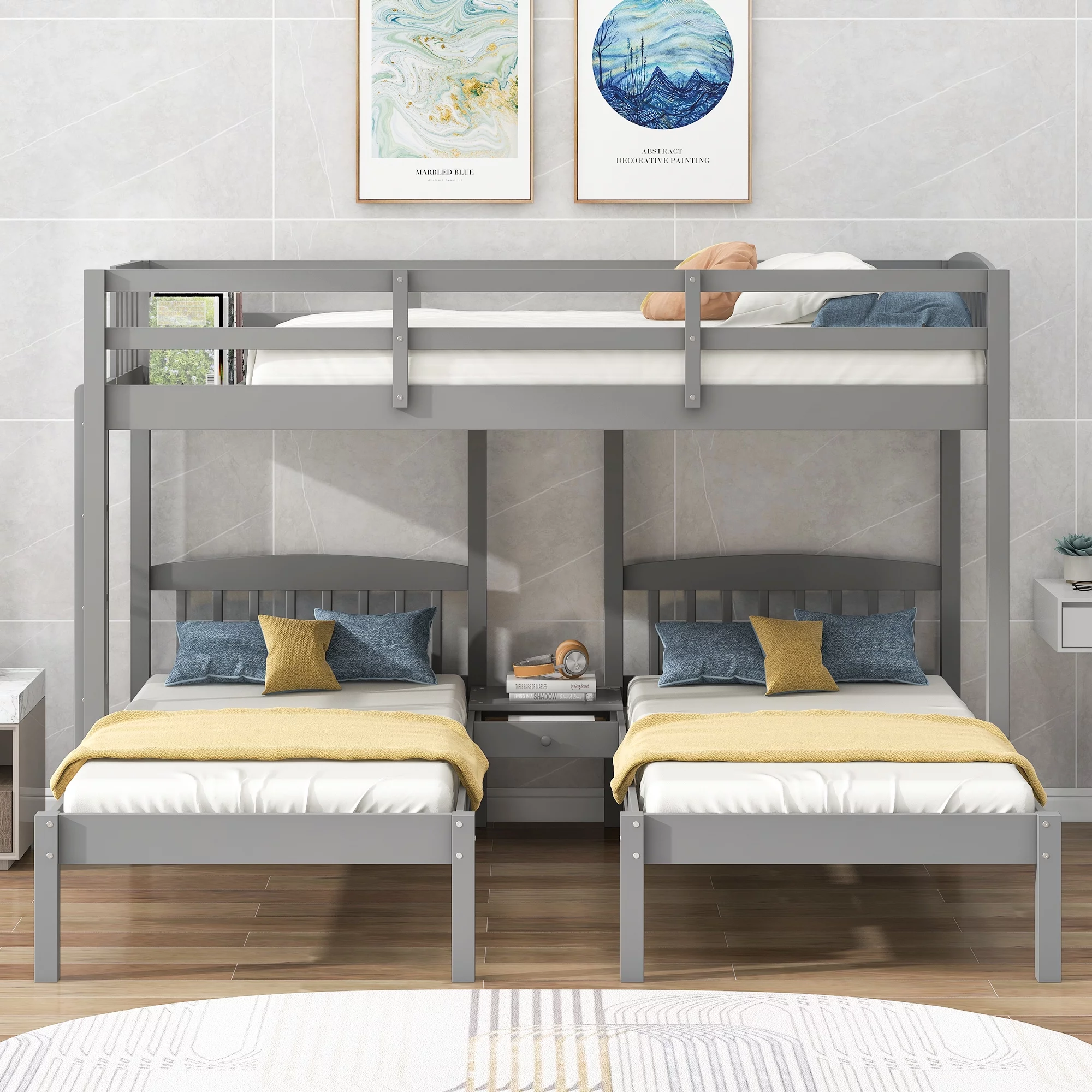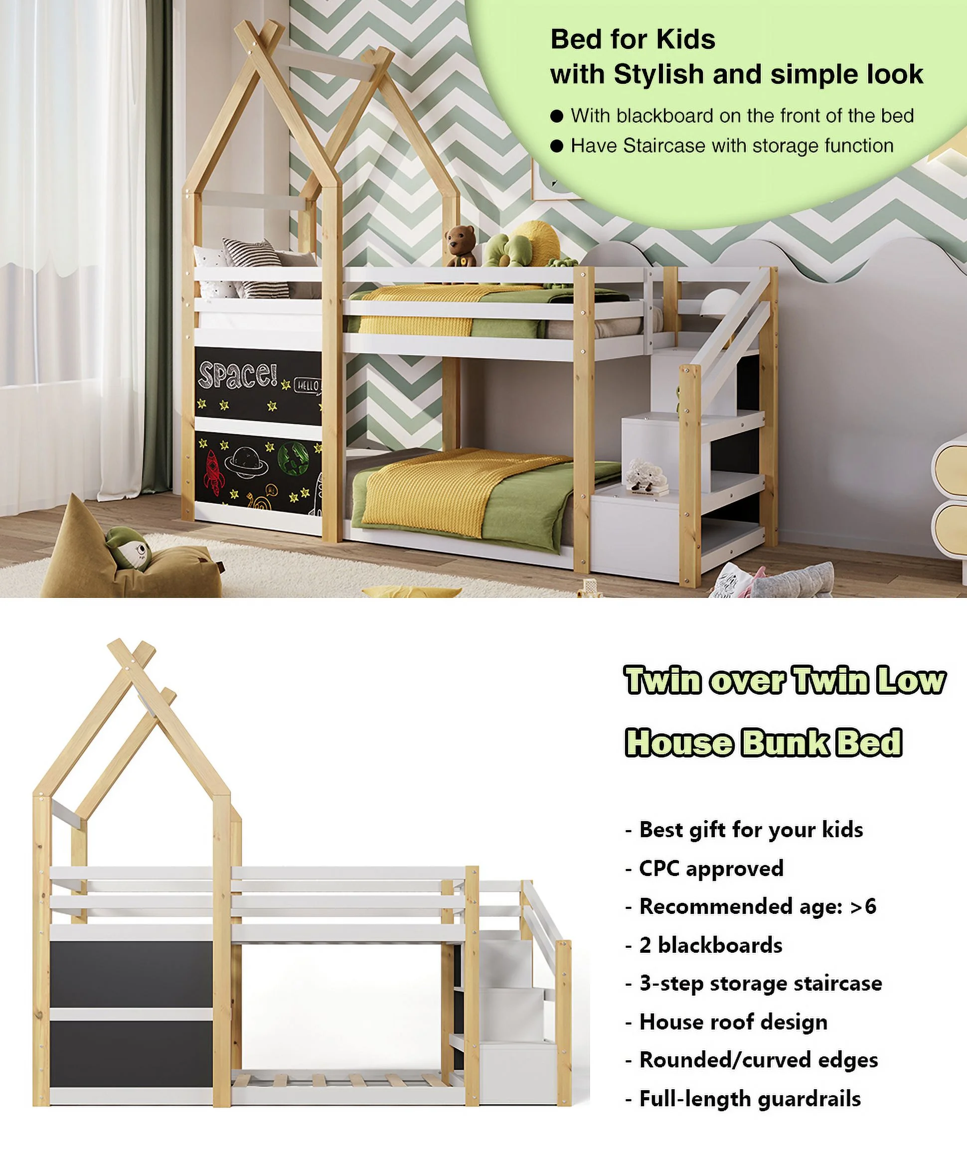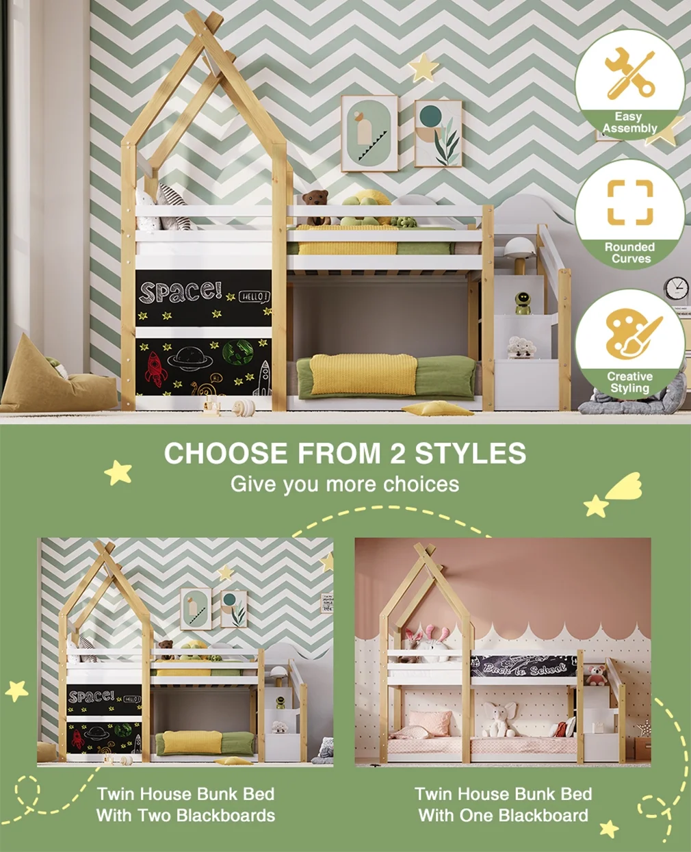 Euroco Twin over Full Bunk Bed with Desk and Drawers for Kids Bedroom, White