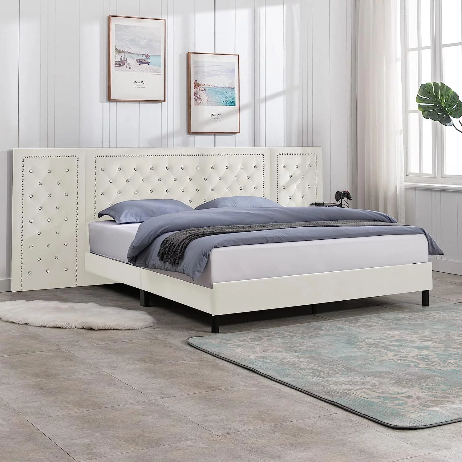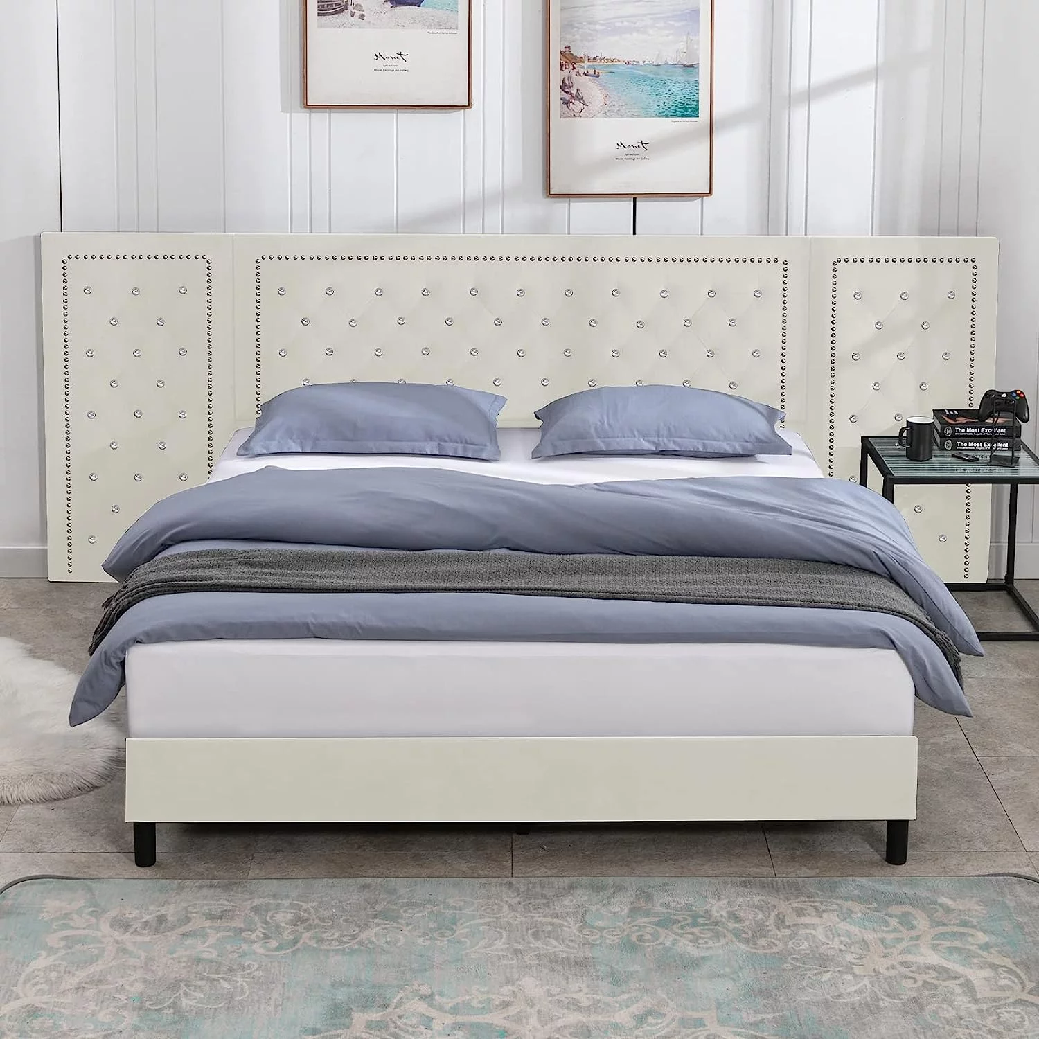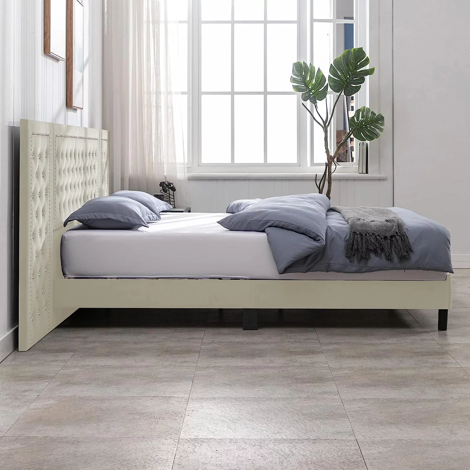 Sandy Beach California King Panel Bed with High Headboard Cream White