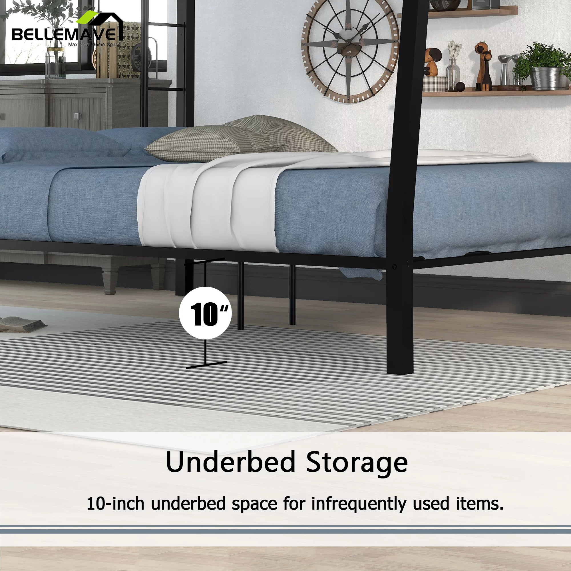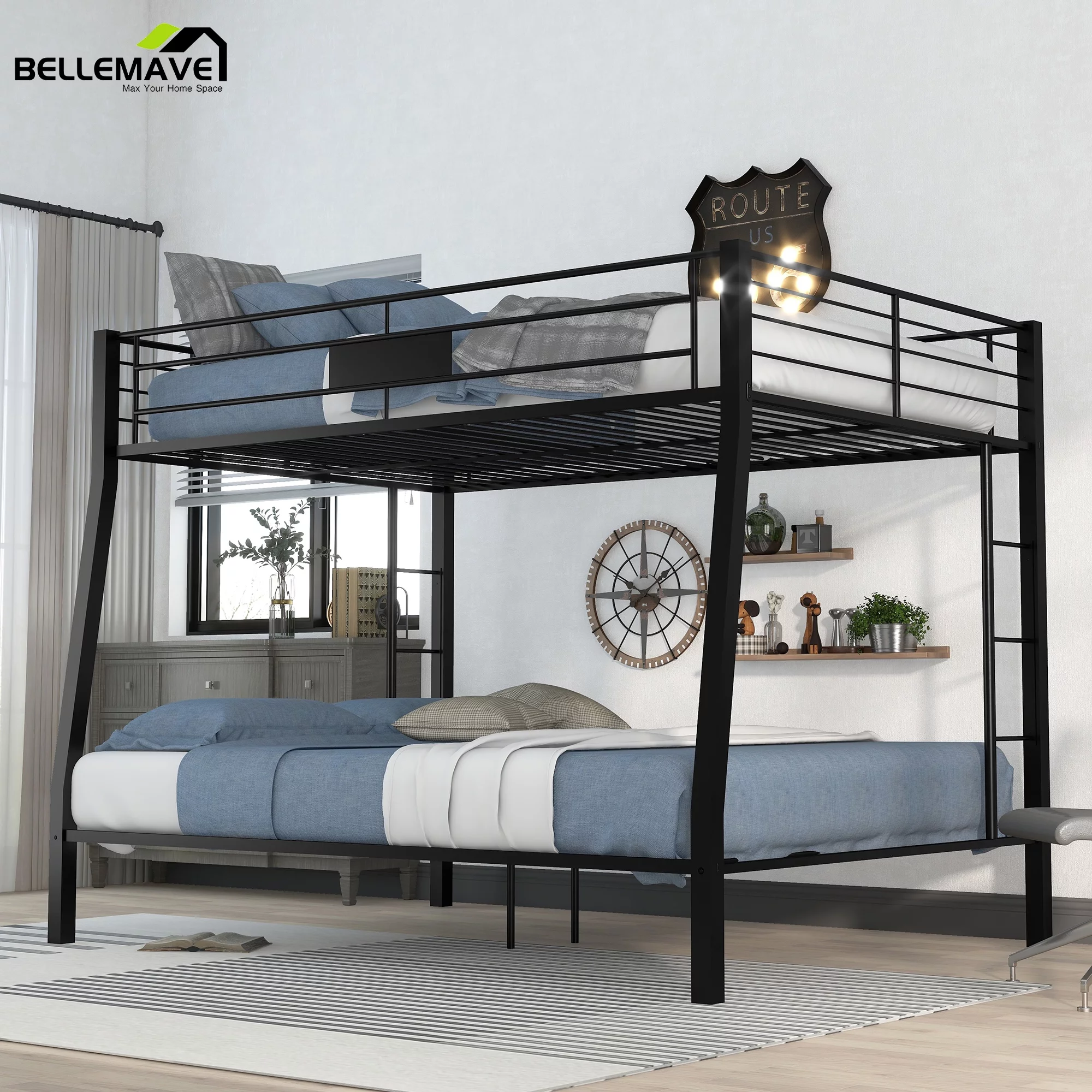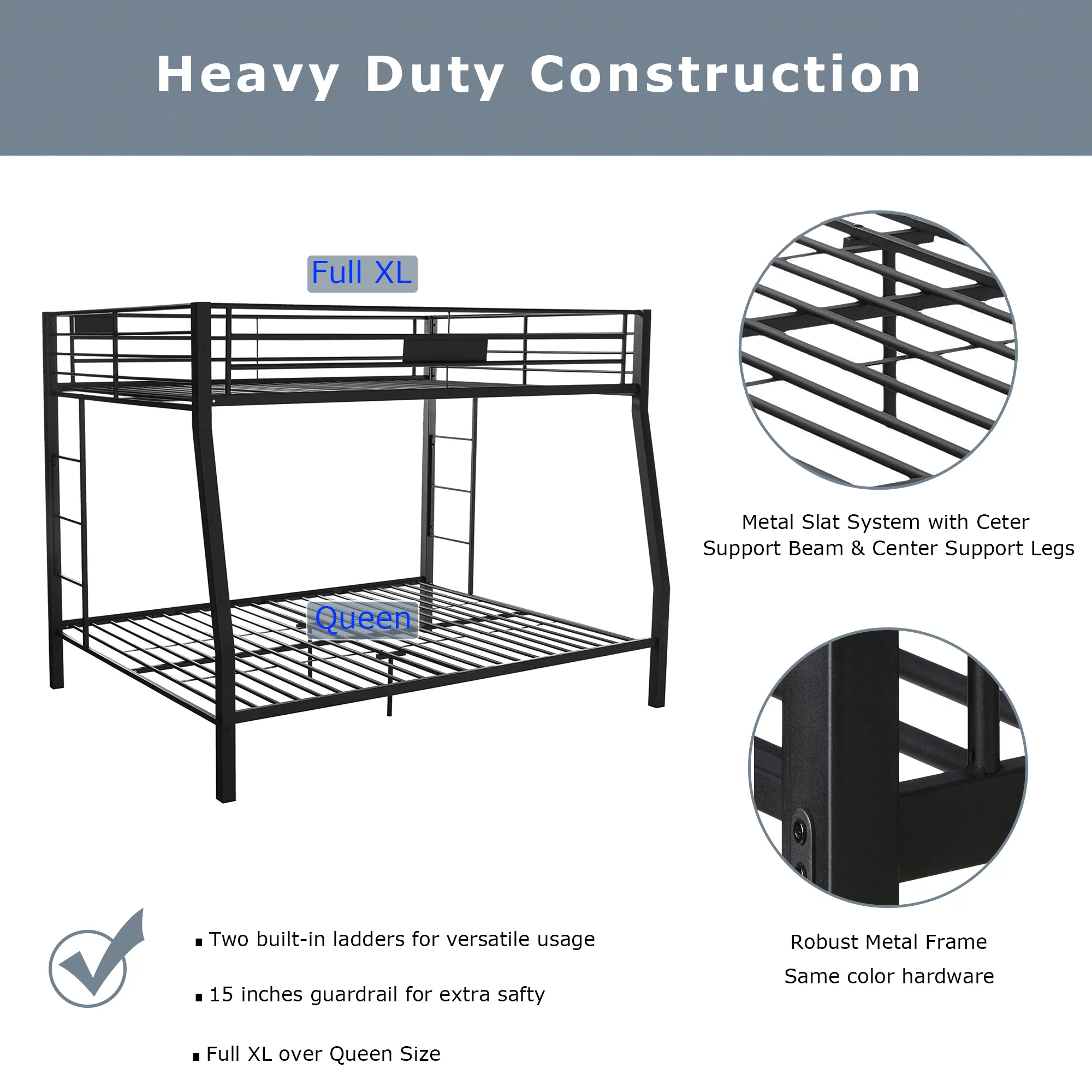 Bellemave Metal Bunk Bed Full XL over Queen, Heavy Duty Bunk Bed Frame with 2 Ladders for Adults, Teens or Kids, Black