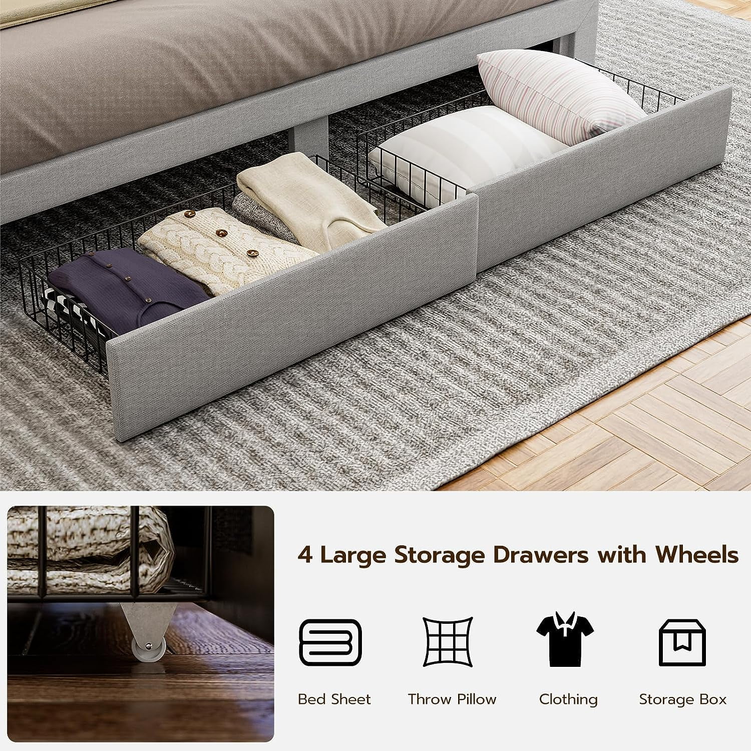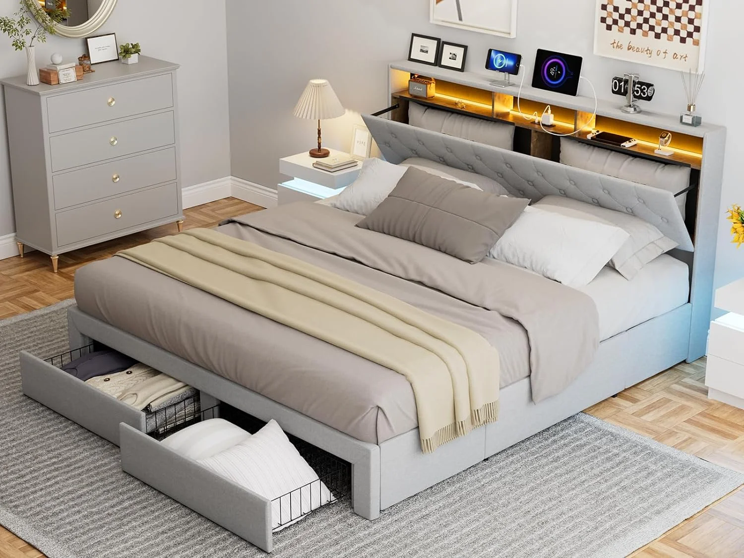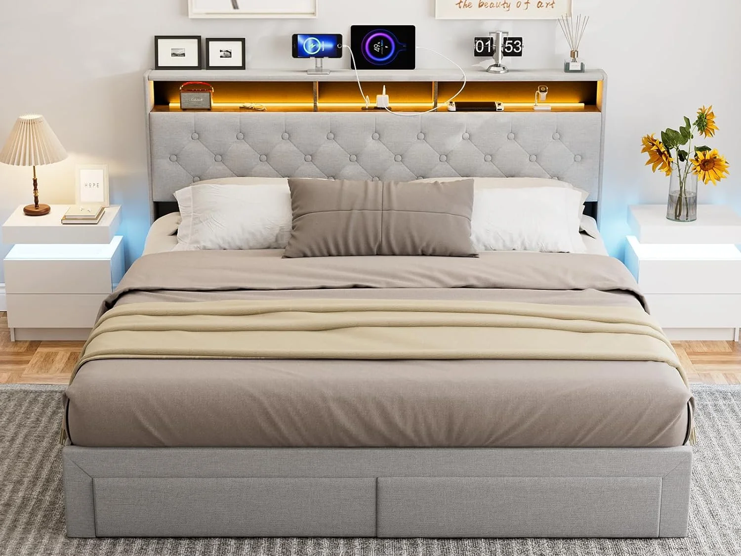 Stonecroft Farnsworth Tufted California King Platform Bed with Storage in Gray