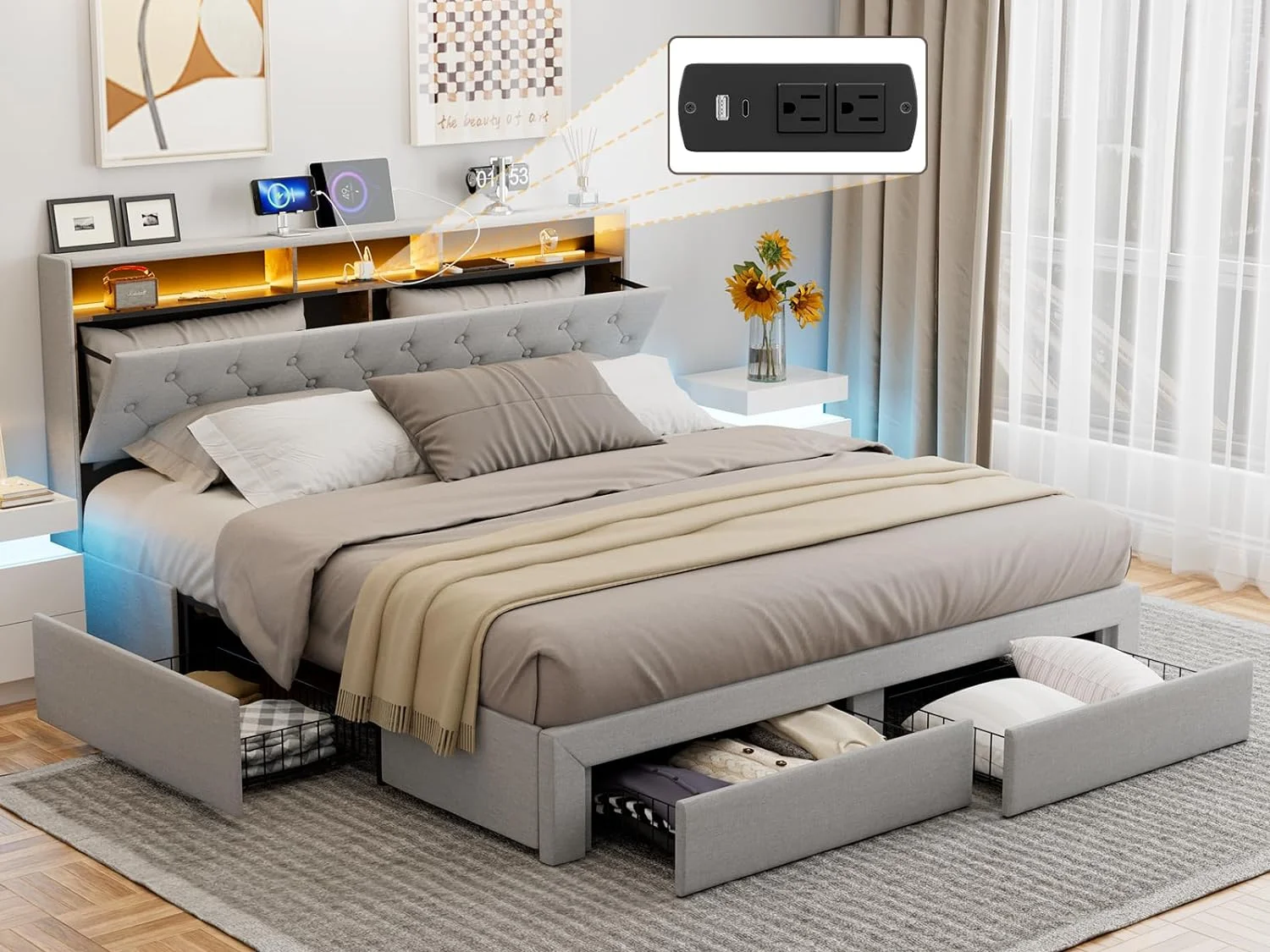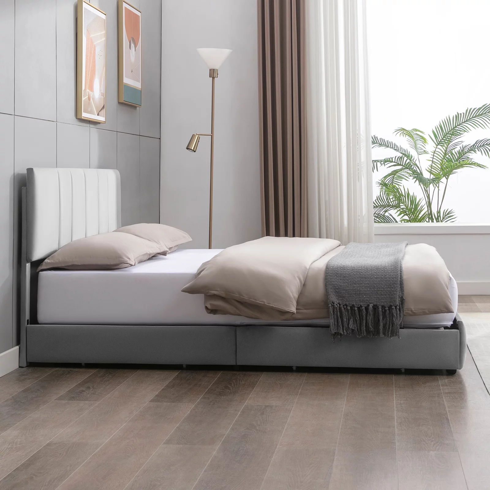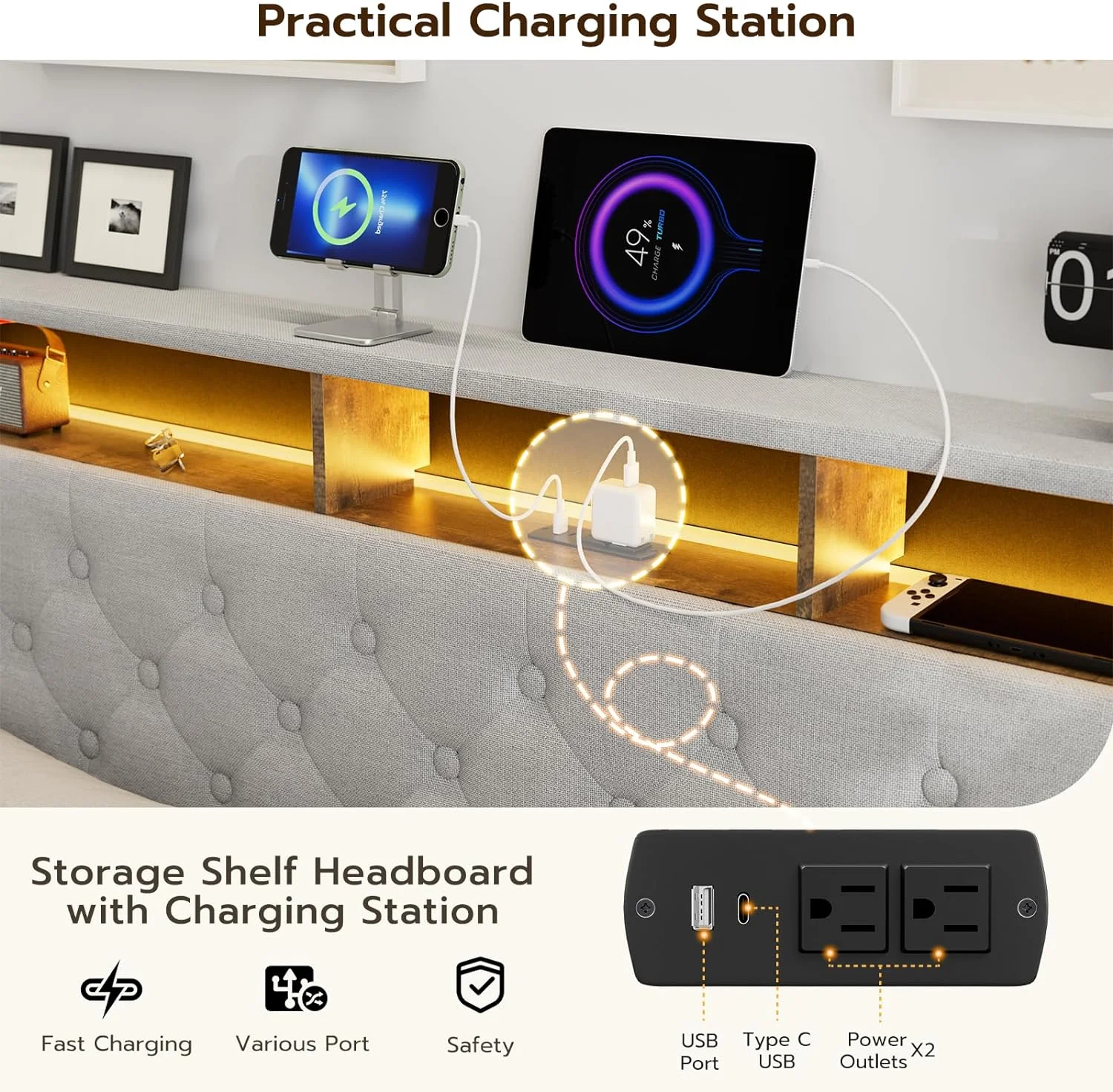 Stonecroft Farnsworth Tufted California King Platform Bed with Storage in Gray