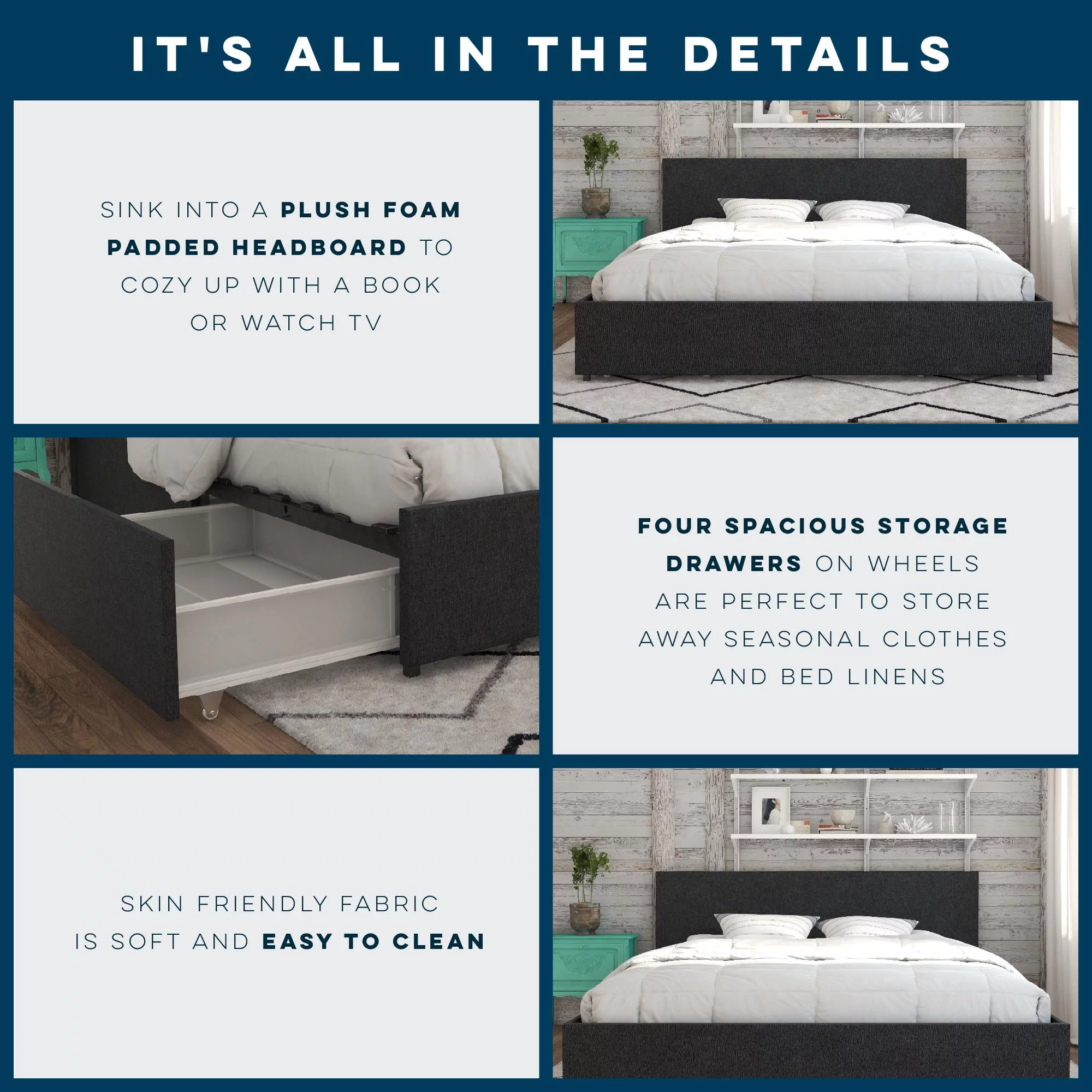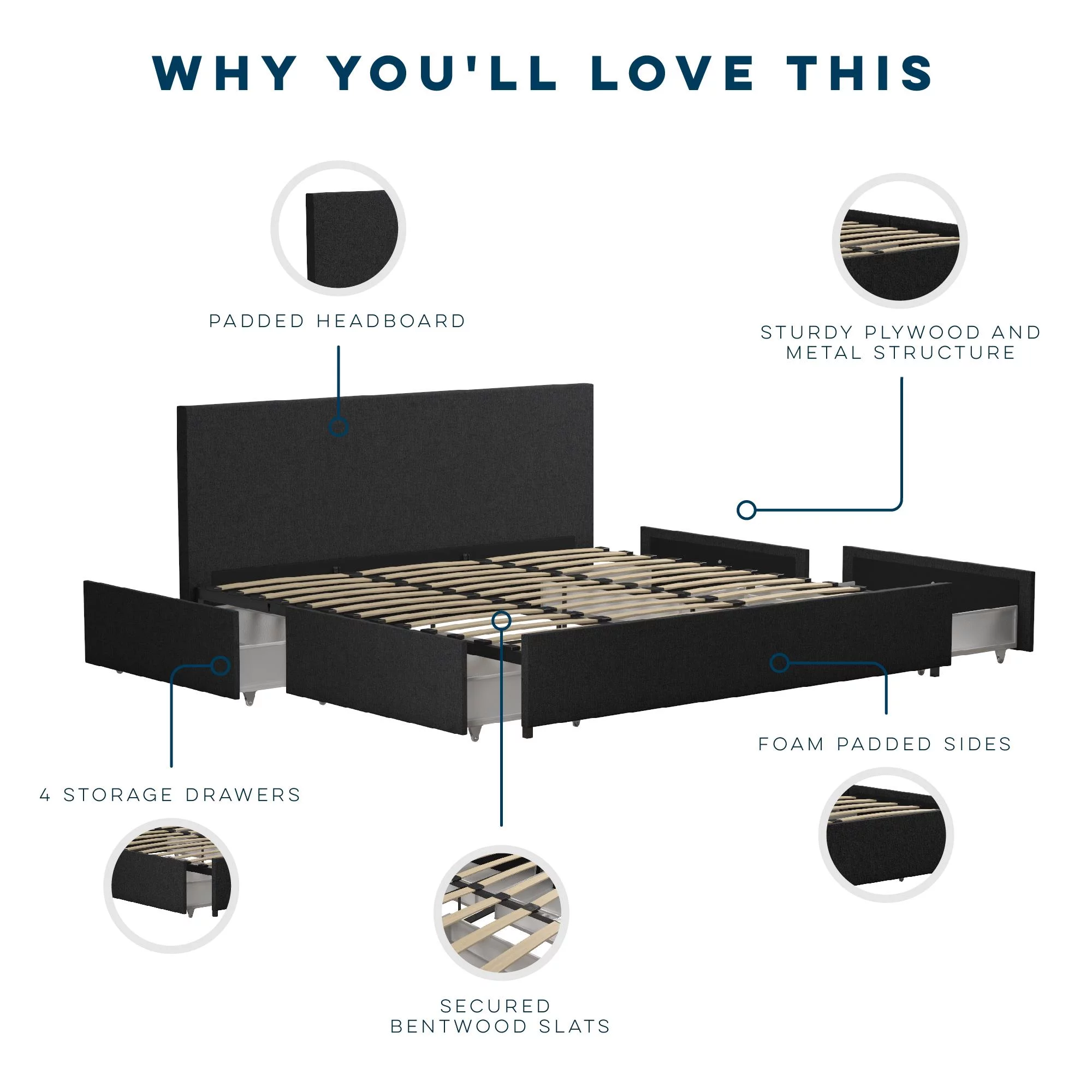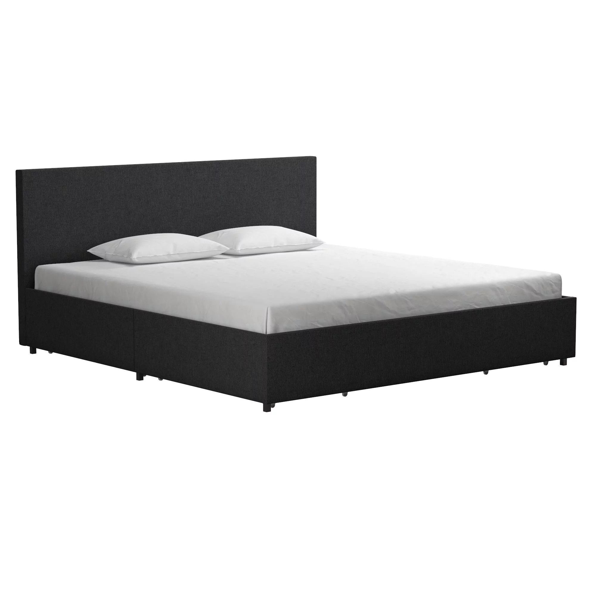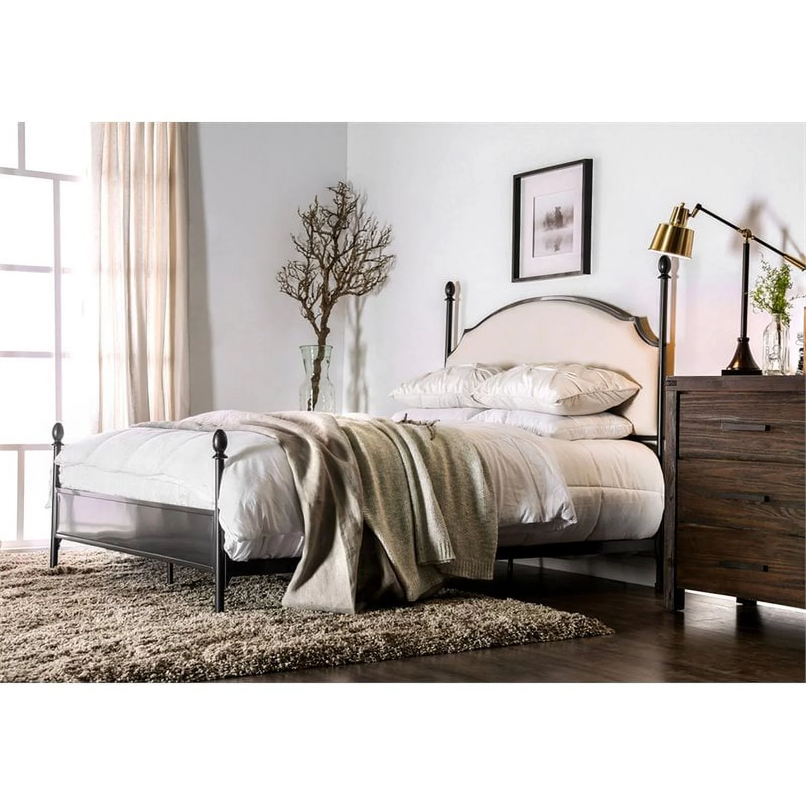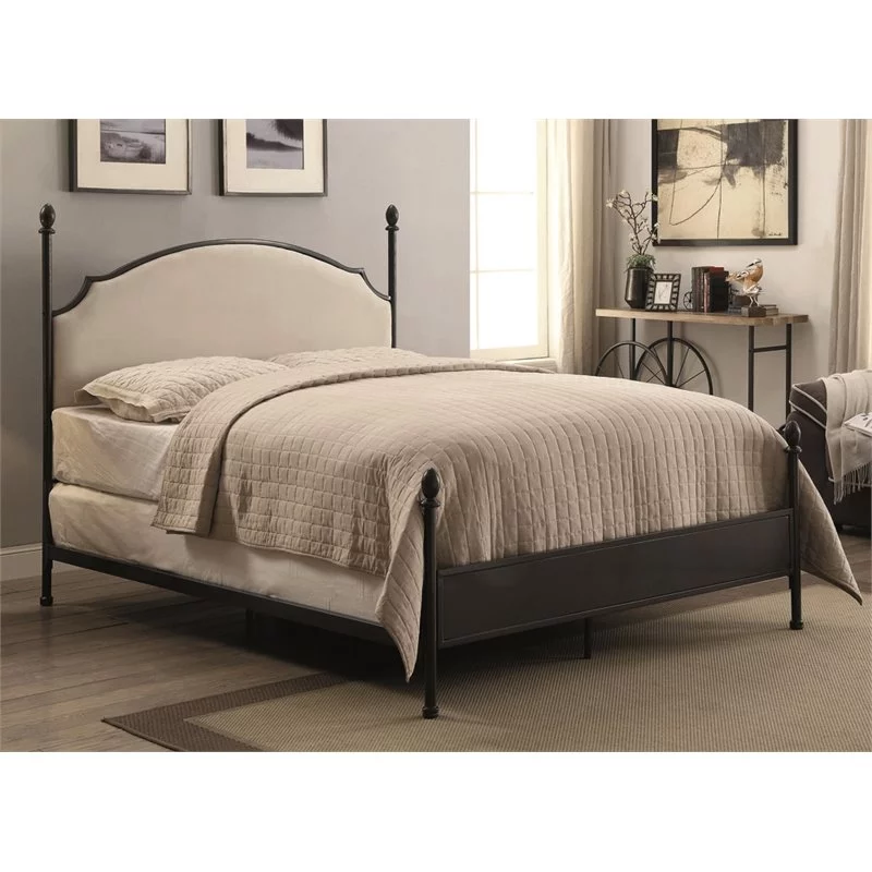 Furniture of America Freila Transitional Metal Cushioned Poster Bed, King, Gray