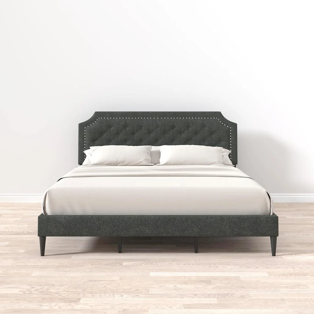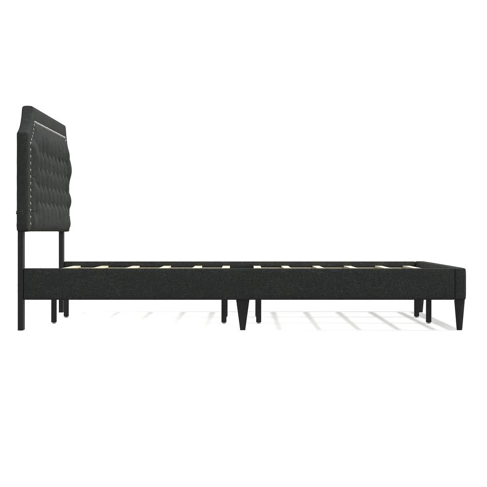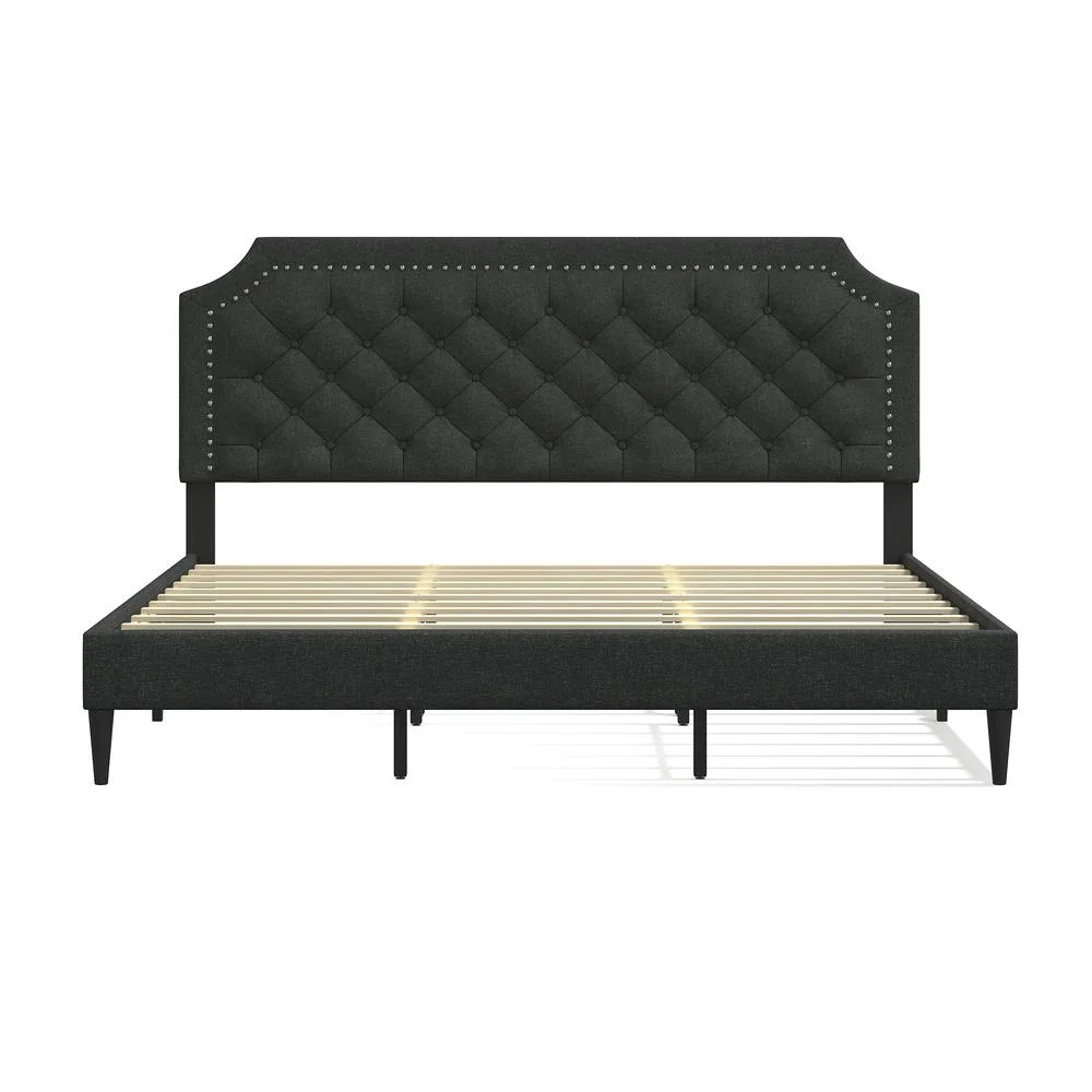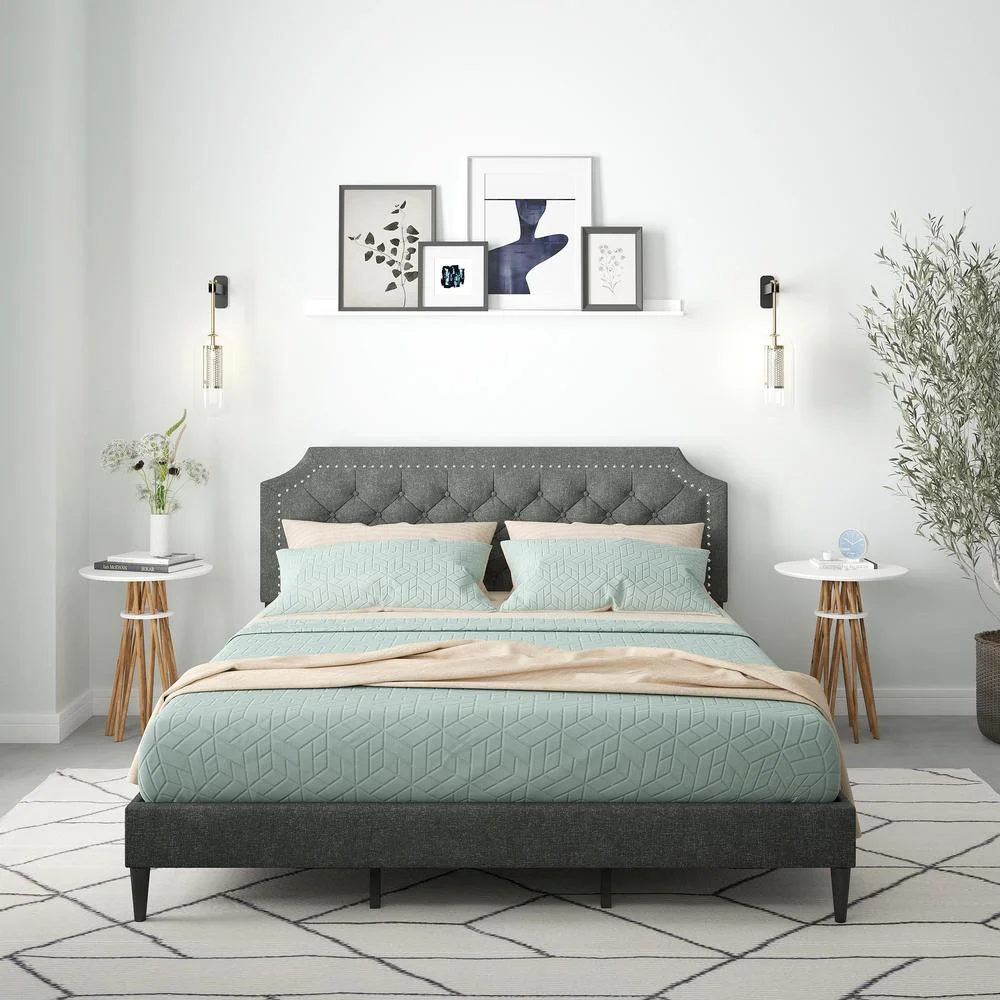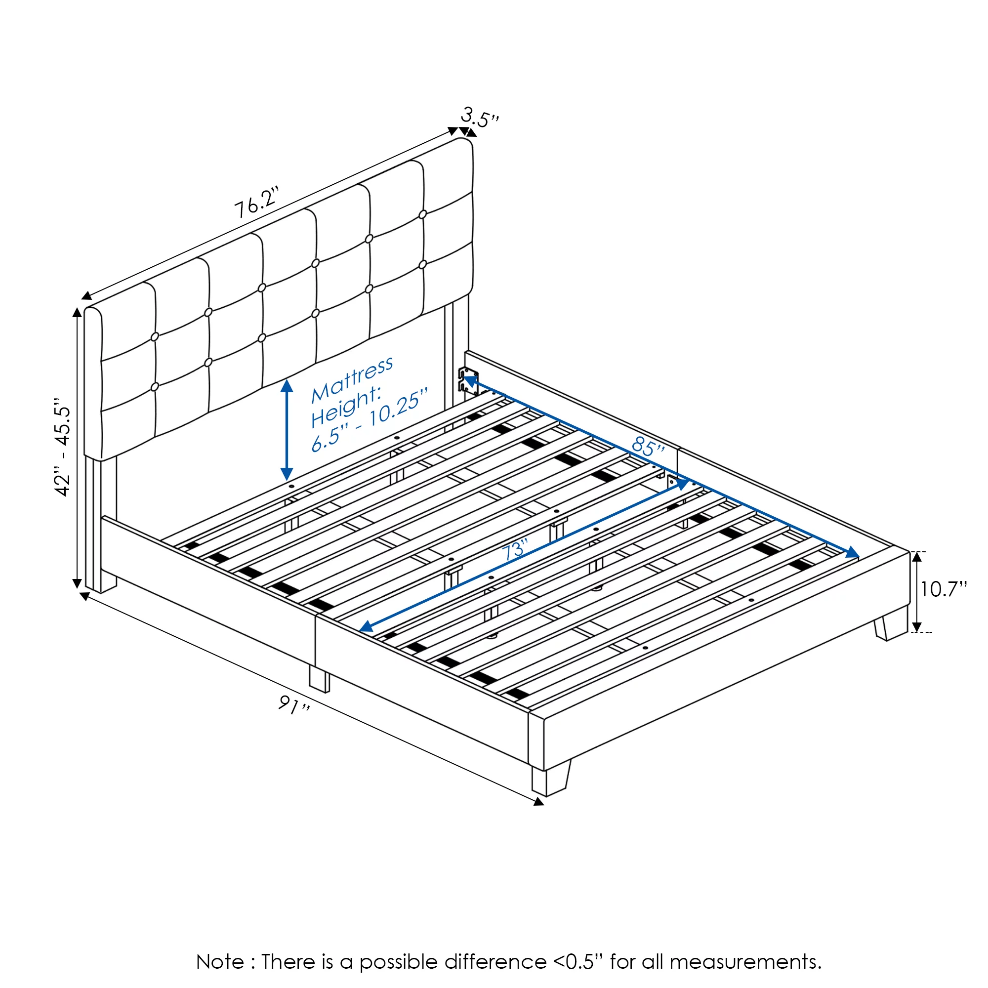 Furinno Laval Button Tufted Bed, 12 Pieces Slat Style, Glacier, California King