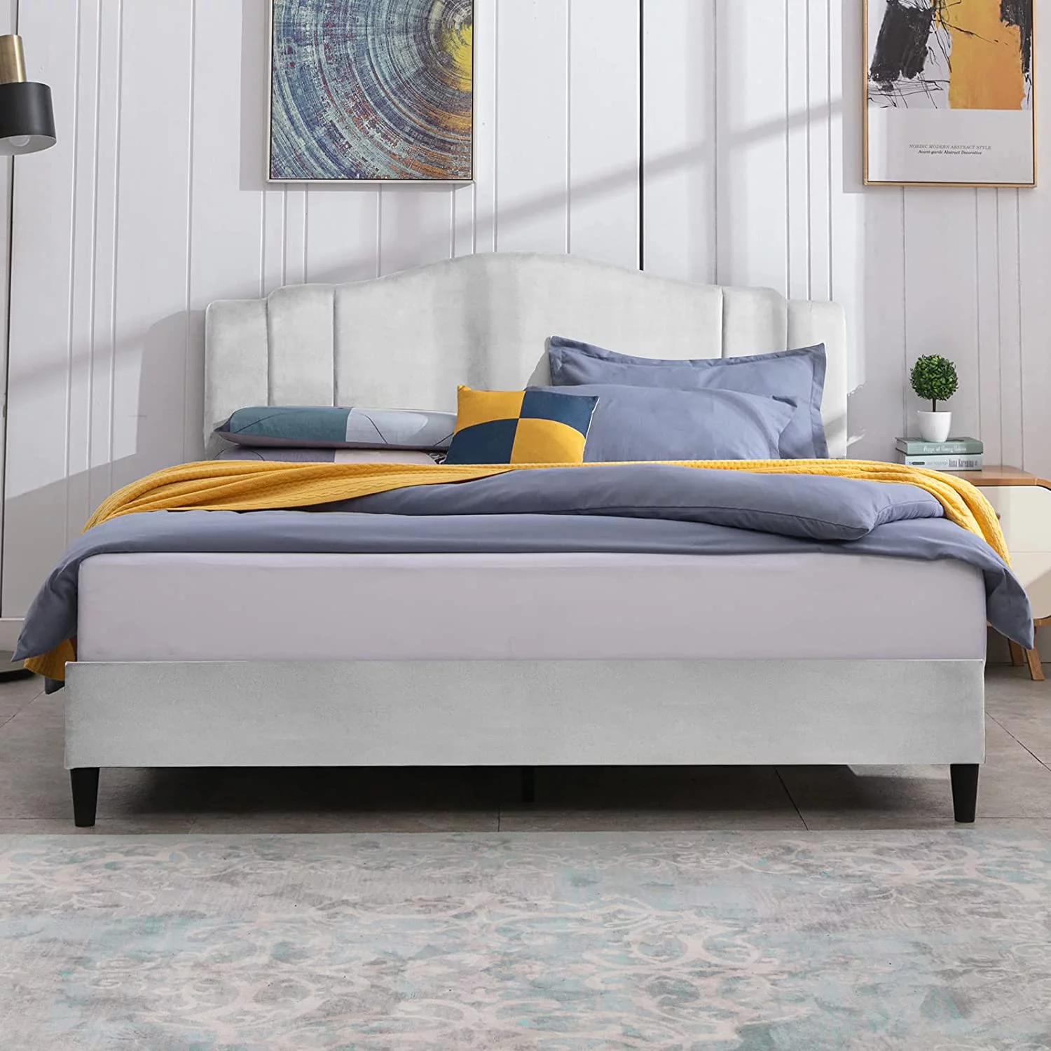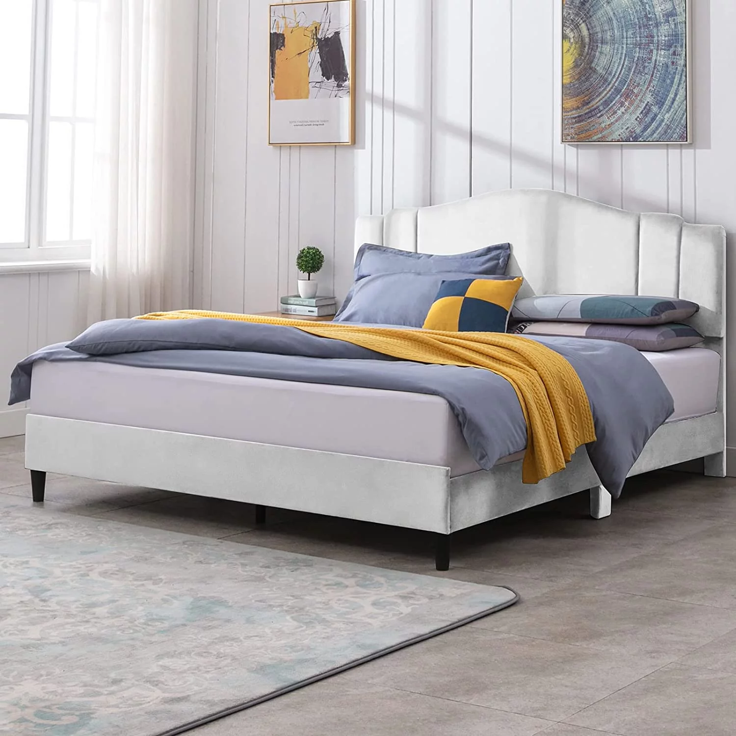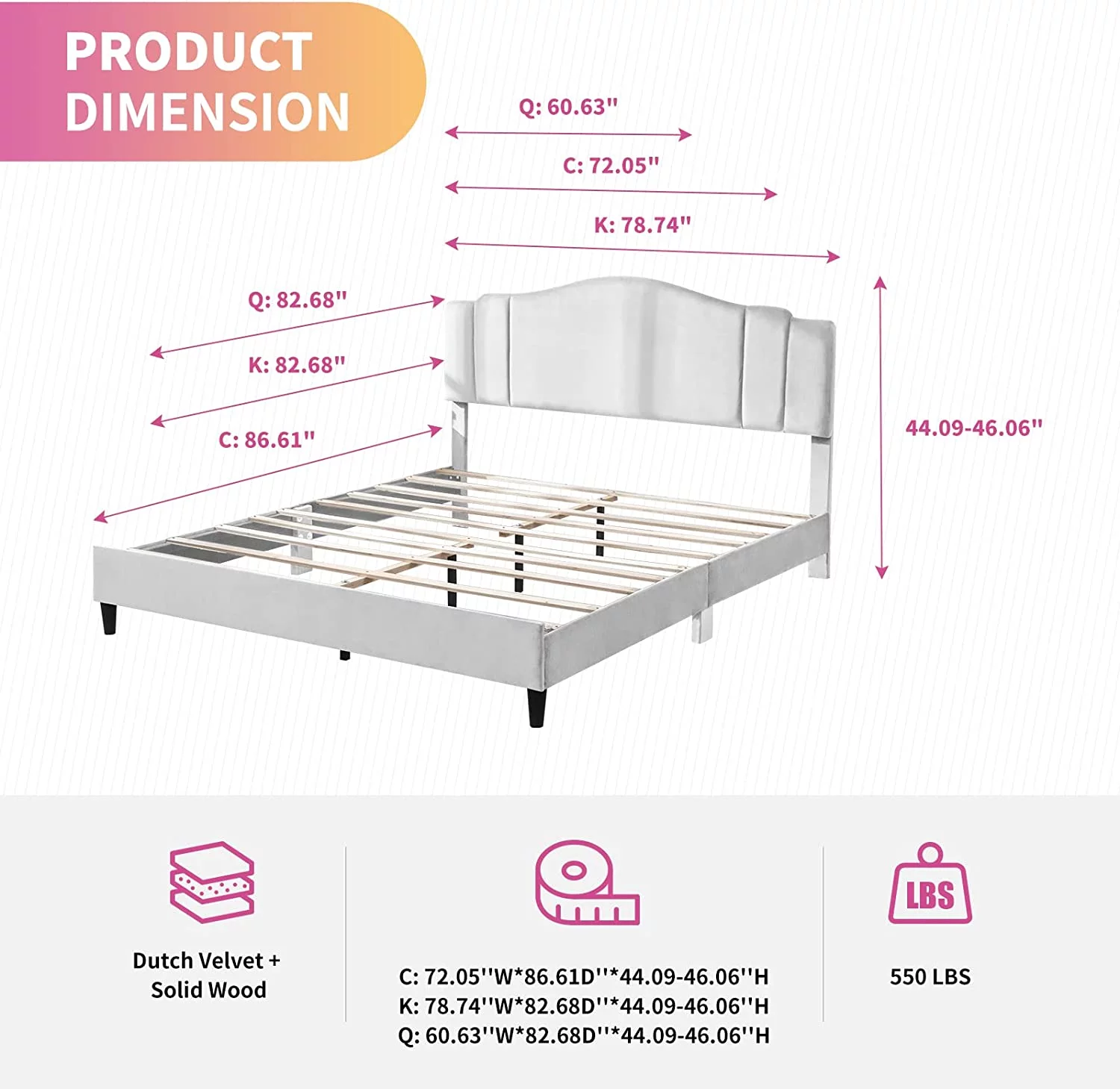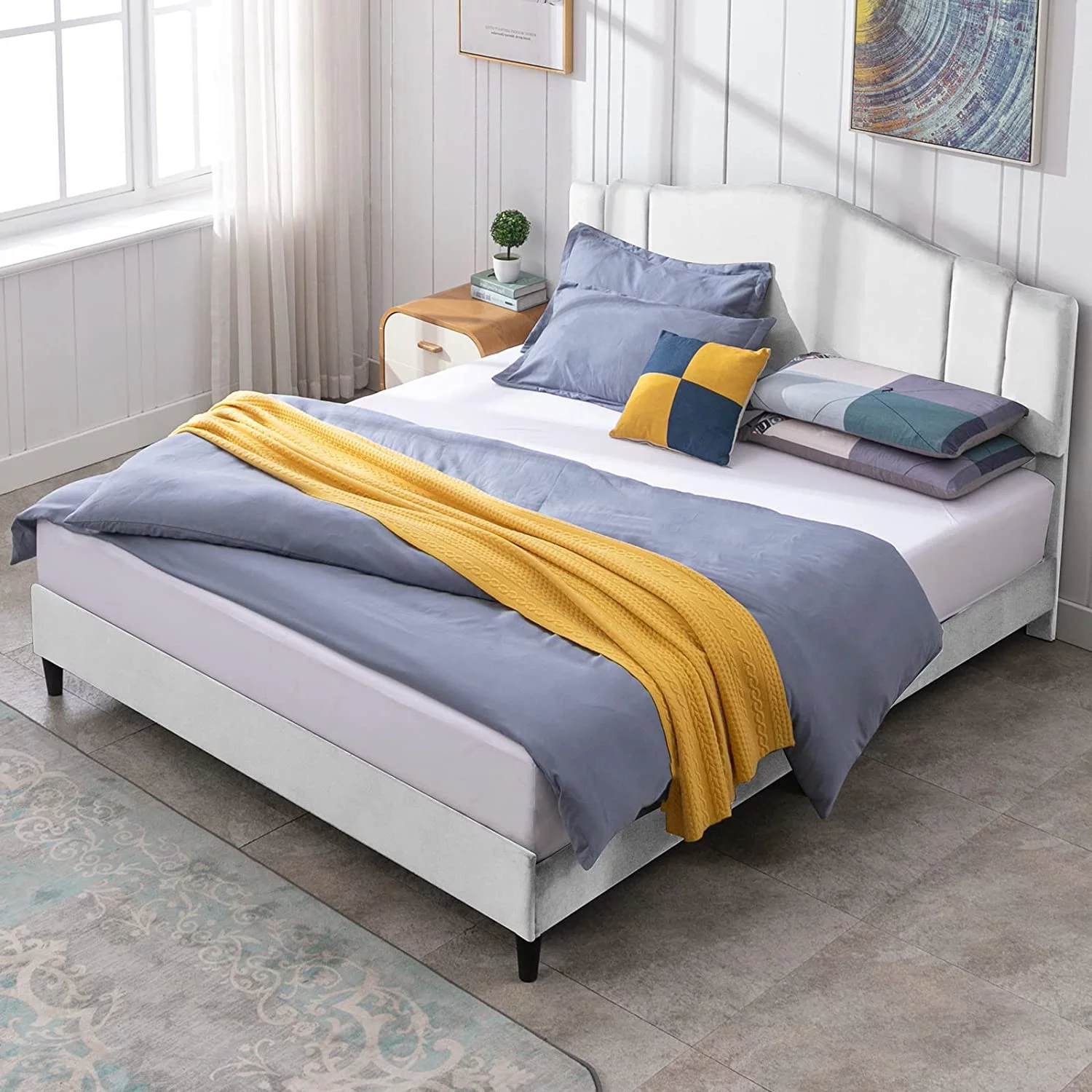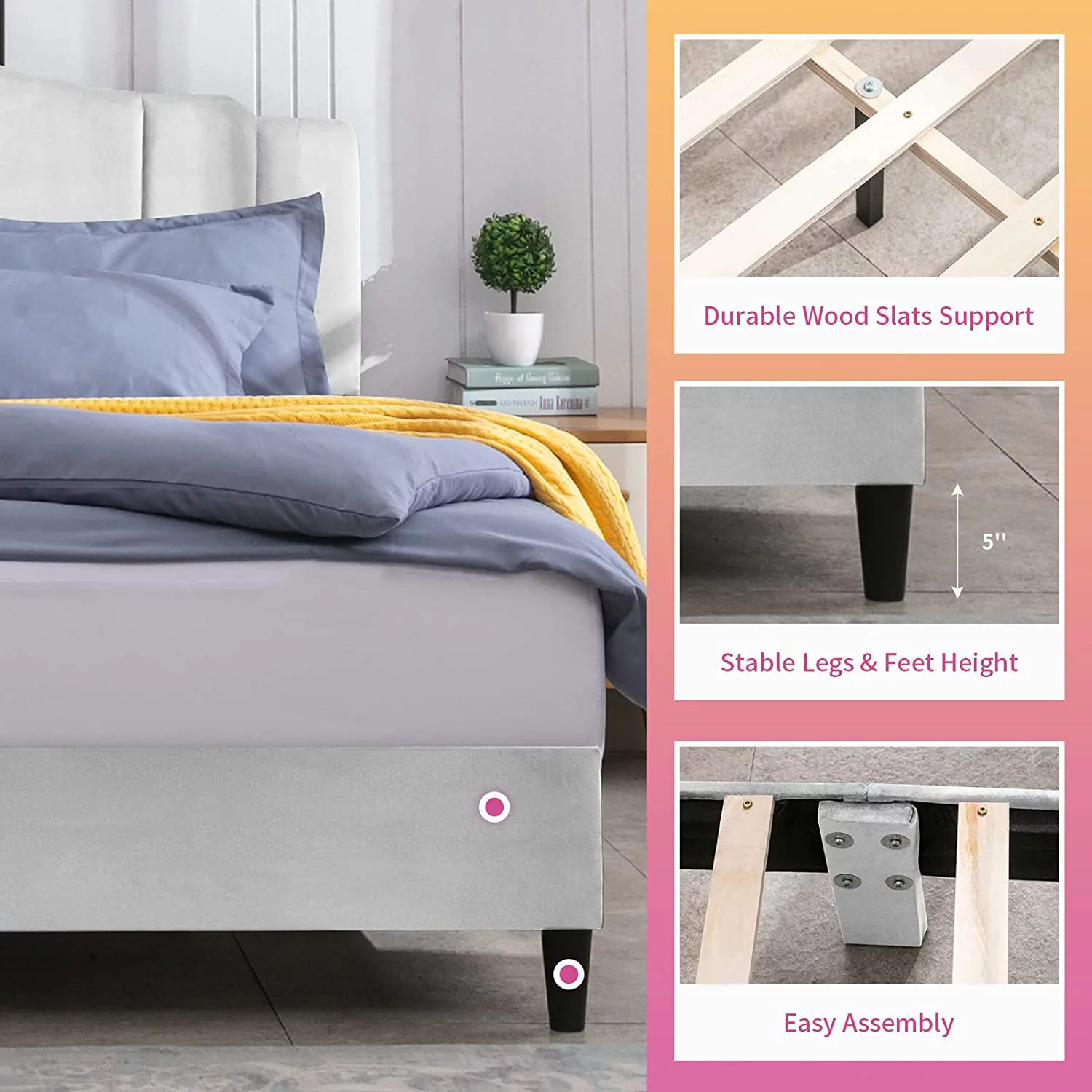 Furinno Laval Button Tufted Bed, 12 Pieces Slat Style, Glacier, California King