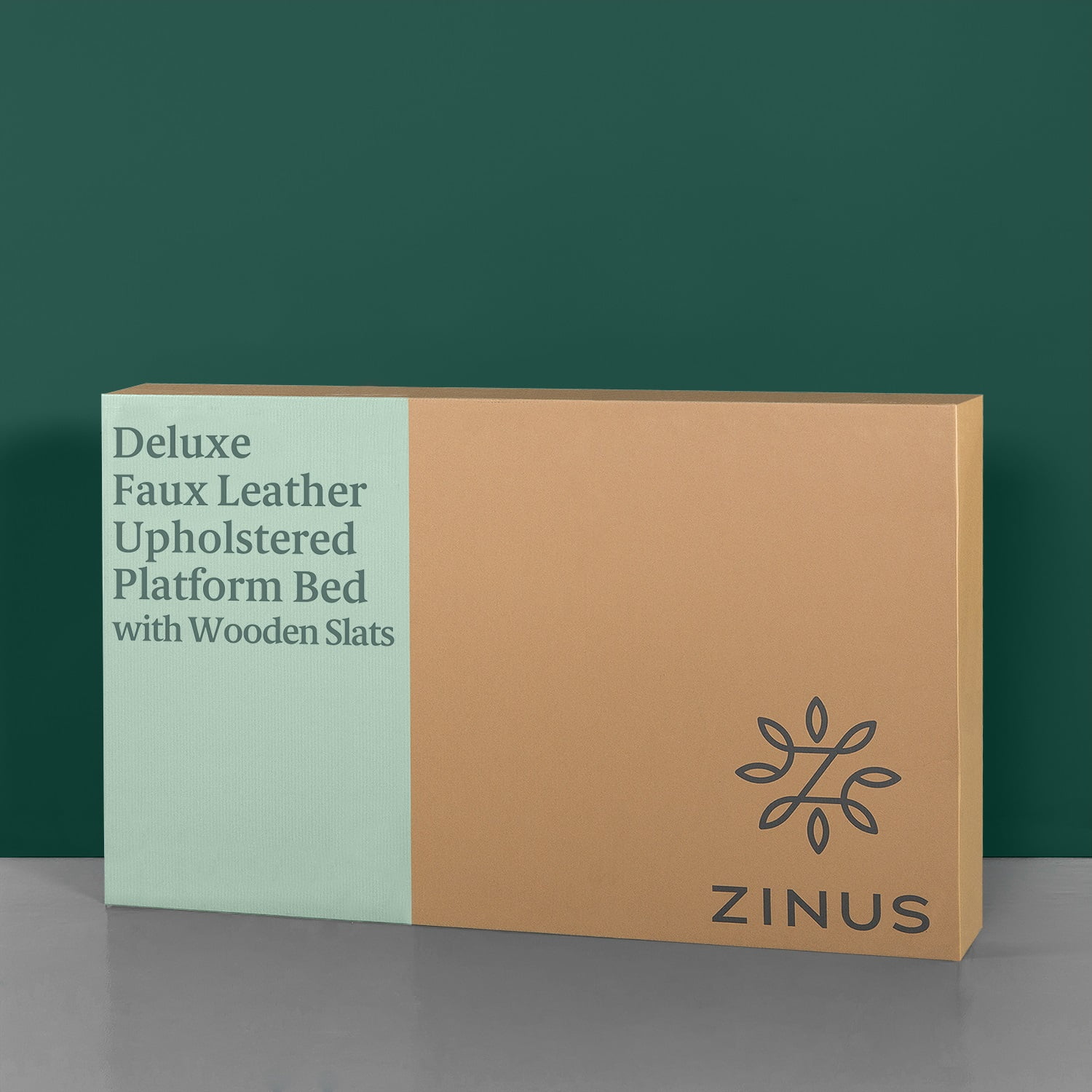 Zinus Gerard 46" Faux Leather Platform Bed with Wooden Slats, California King