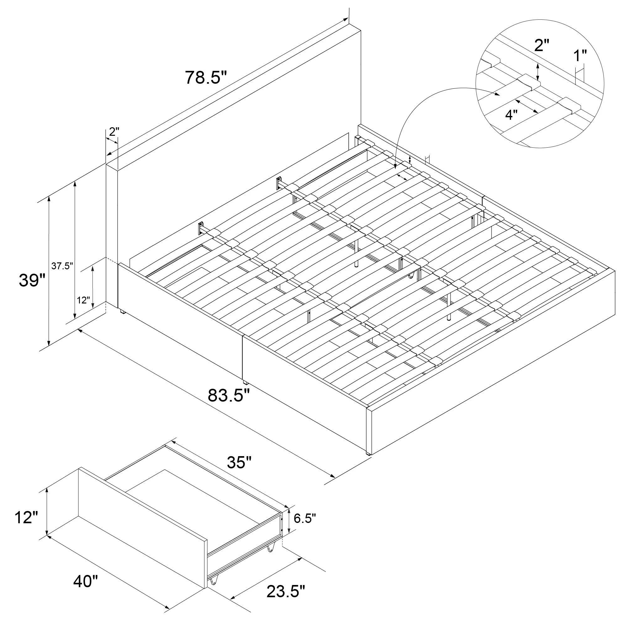 Brown Cherry Storage California king Size Bed Bedroom Furniture Solid wood Rail Drawers Wood inlay Nickel Pulls Storage Drawers bed