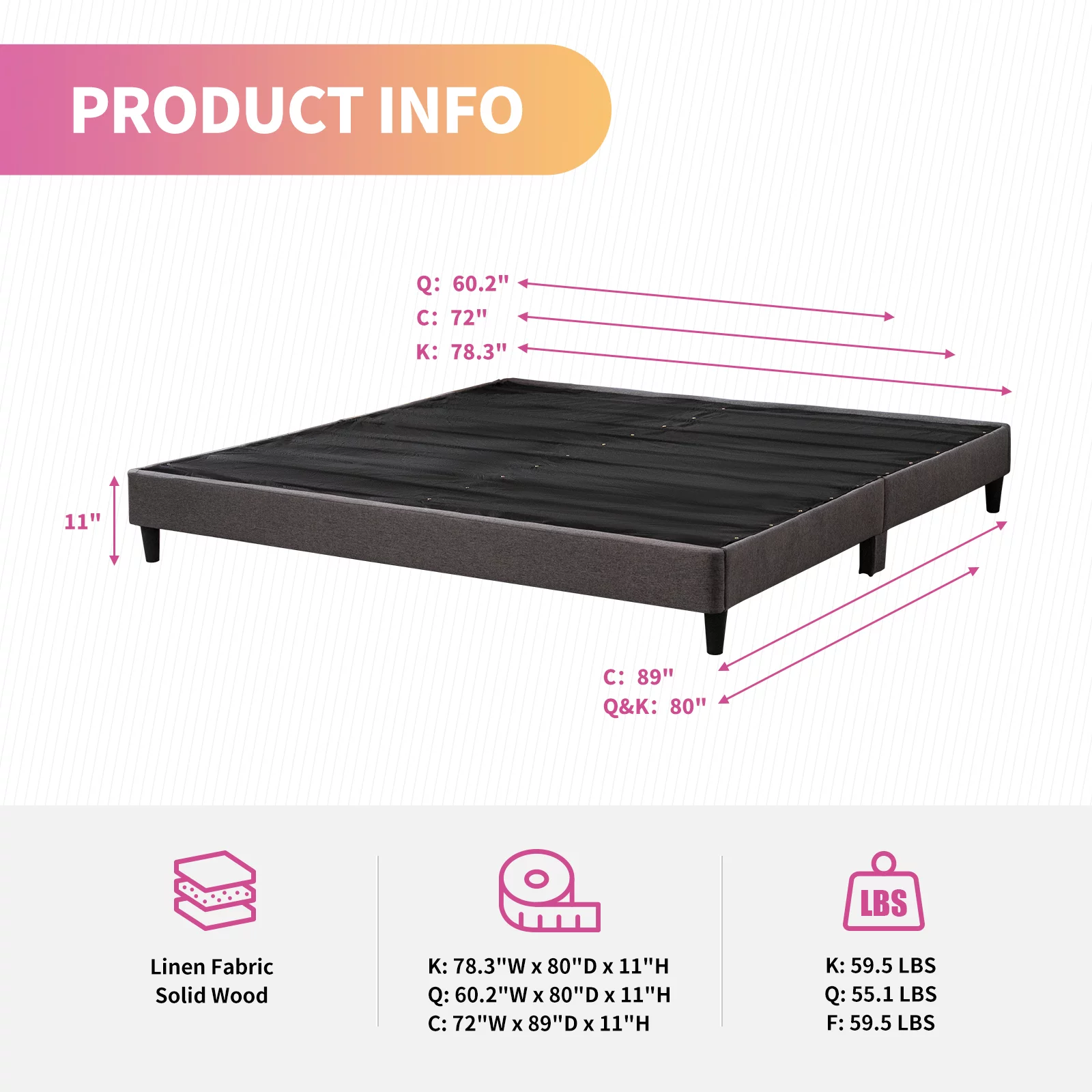 Rooflare 14'' Heavy Duty California King Metal Platform Bed Frame for Adult,Black