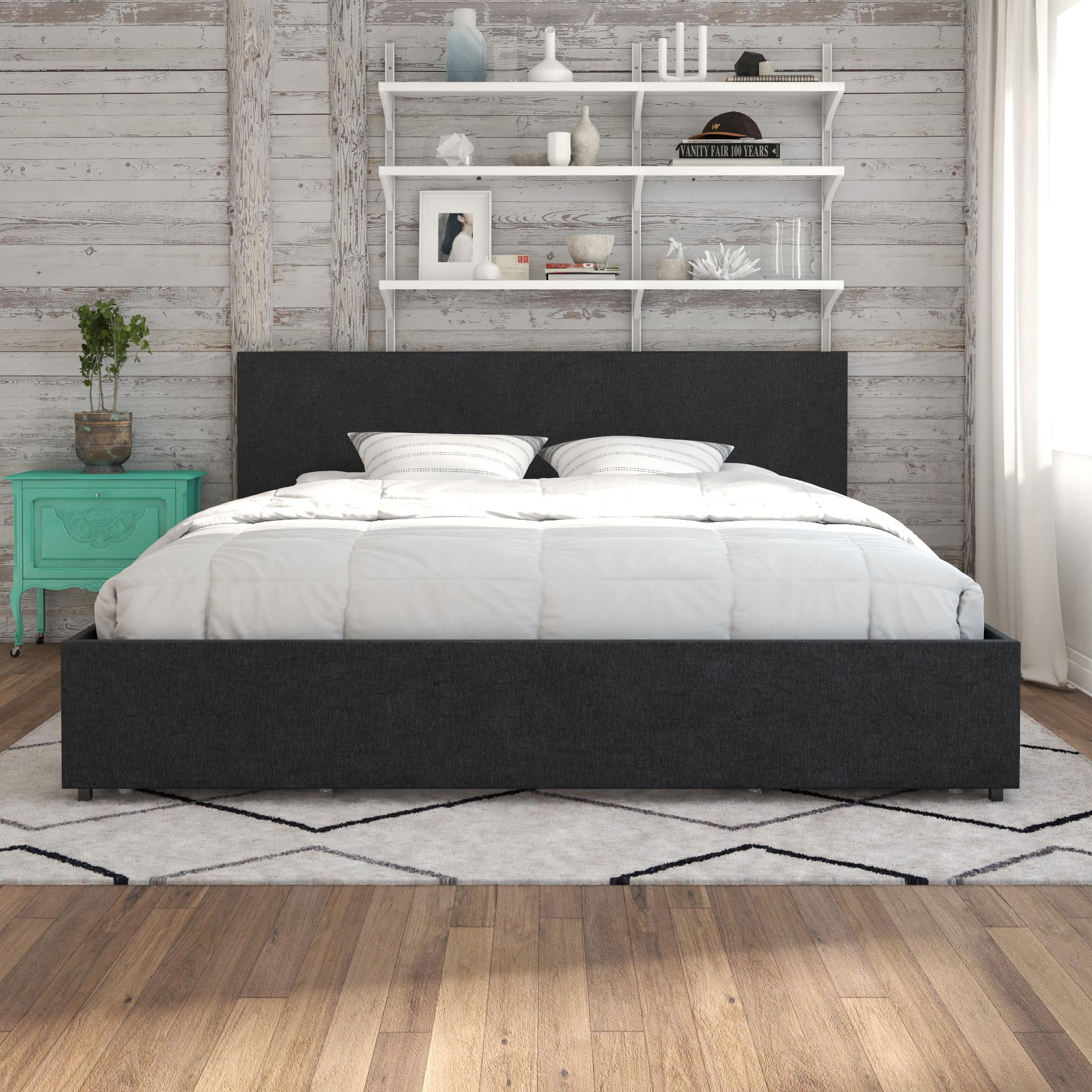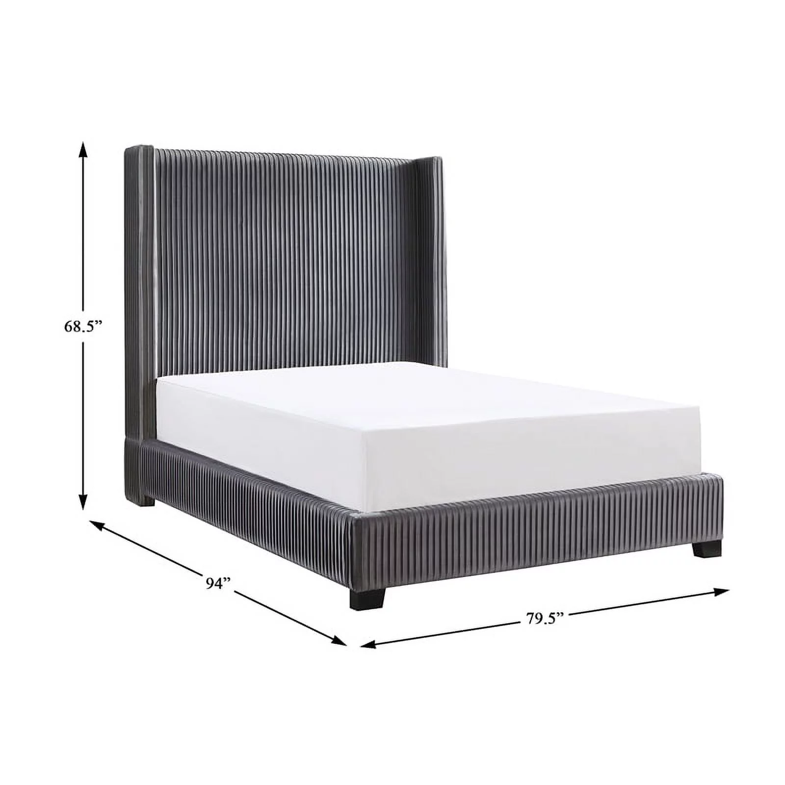 Lexicon Glenbury Velvet California King Upholstered Bed in Pleated Dark Gray